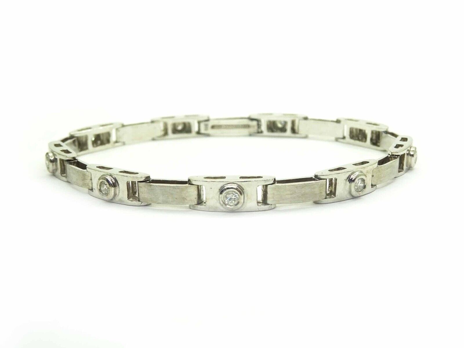 Snazzy and snappy diamond tennis bracelet in 14k white gold.