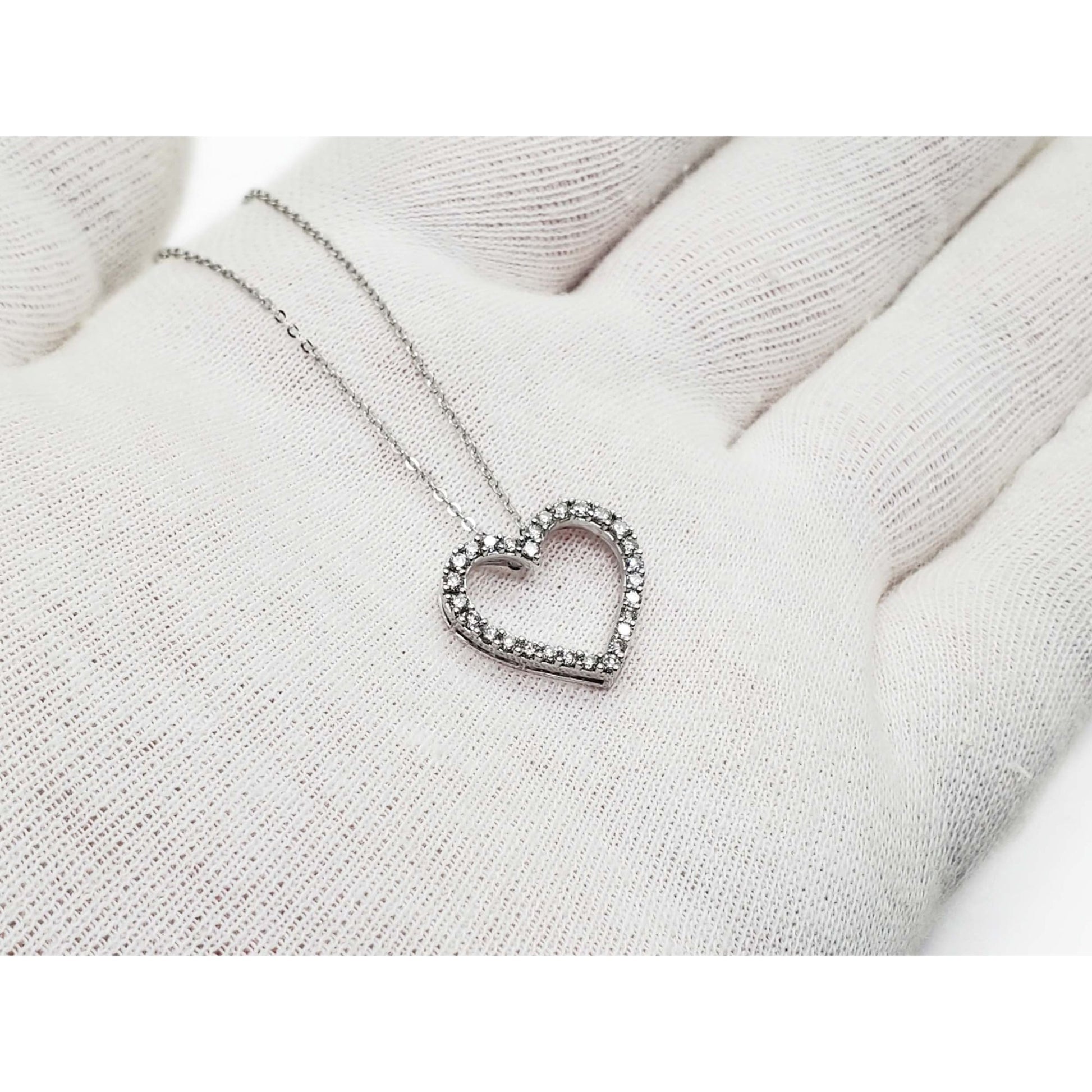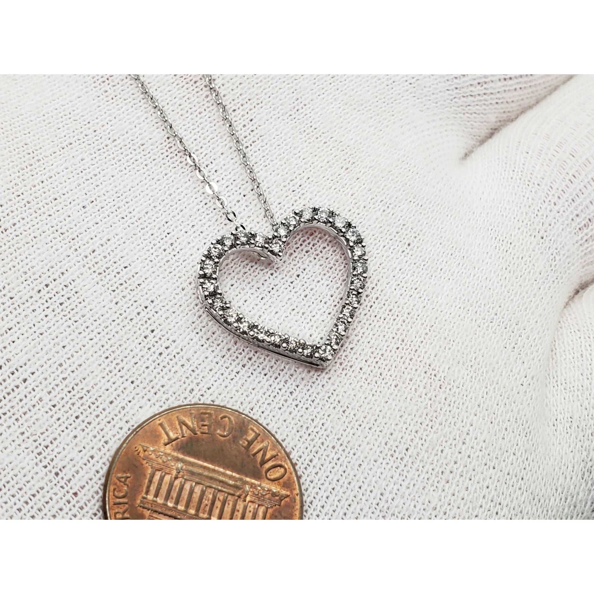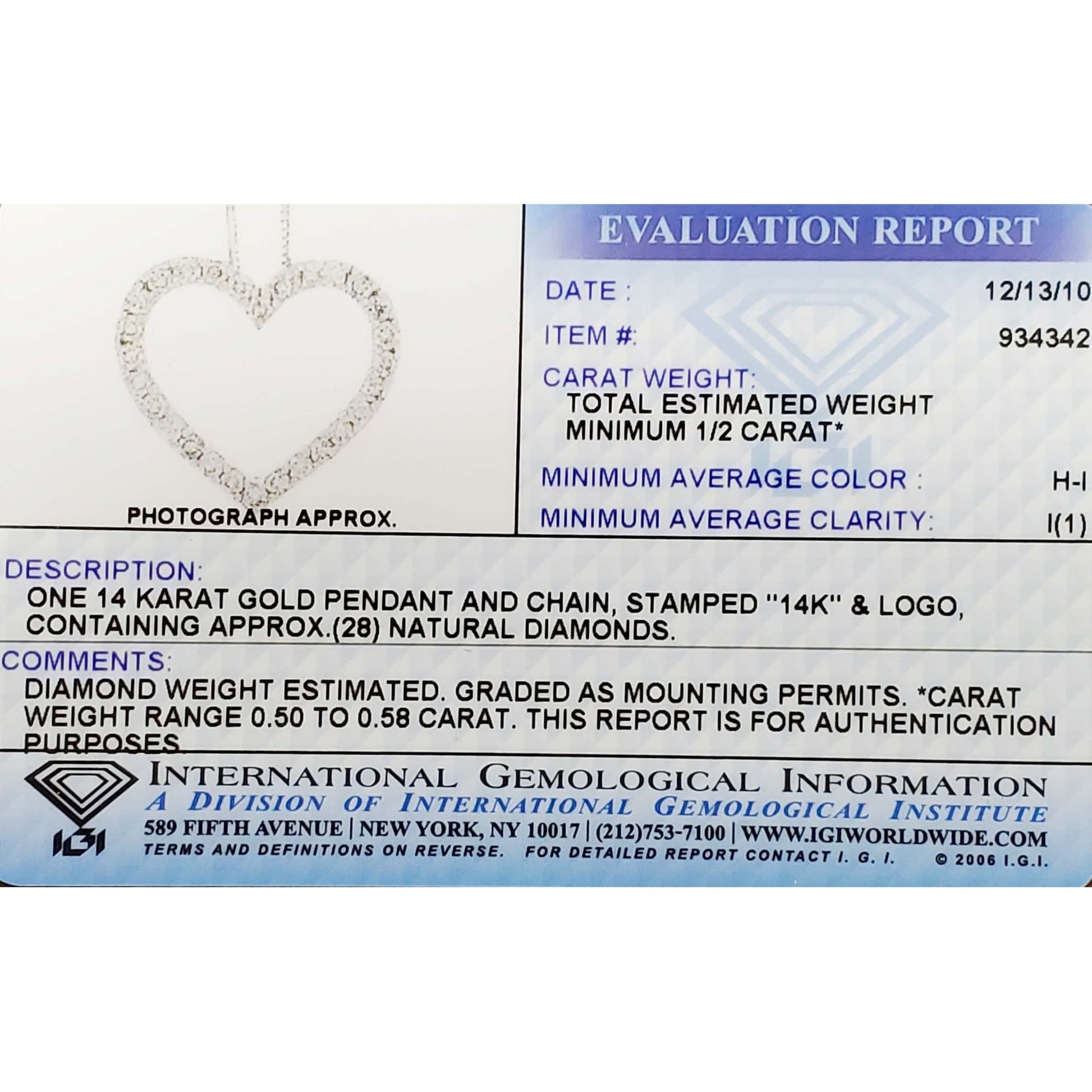 0.50 ctw Natural Diamond Open Heart Pendant Necklace 14k White Gold w/IGI Report