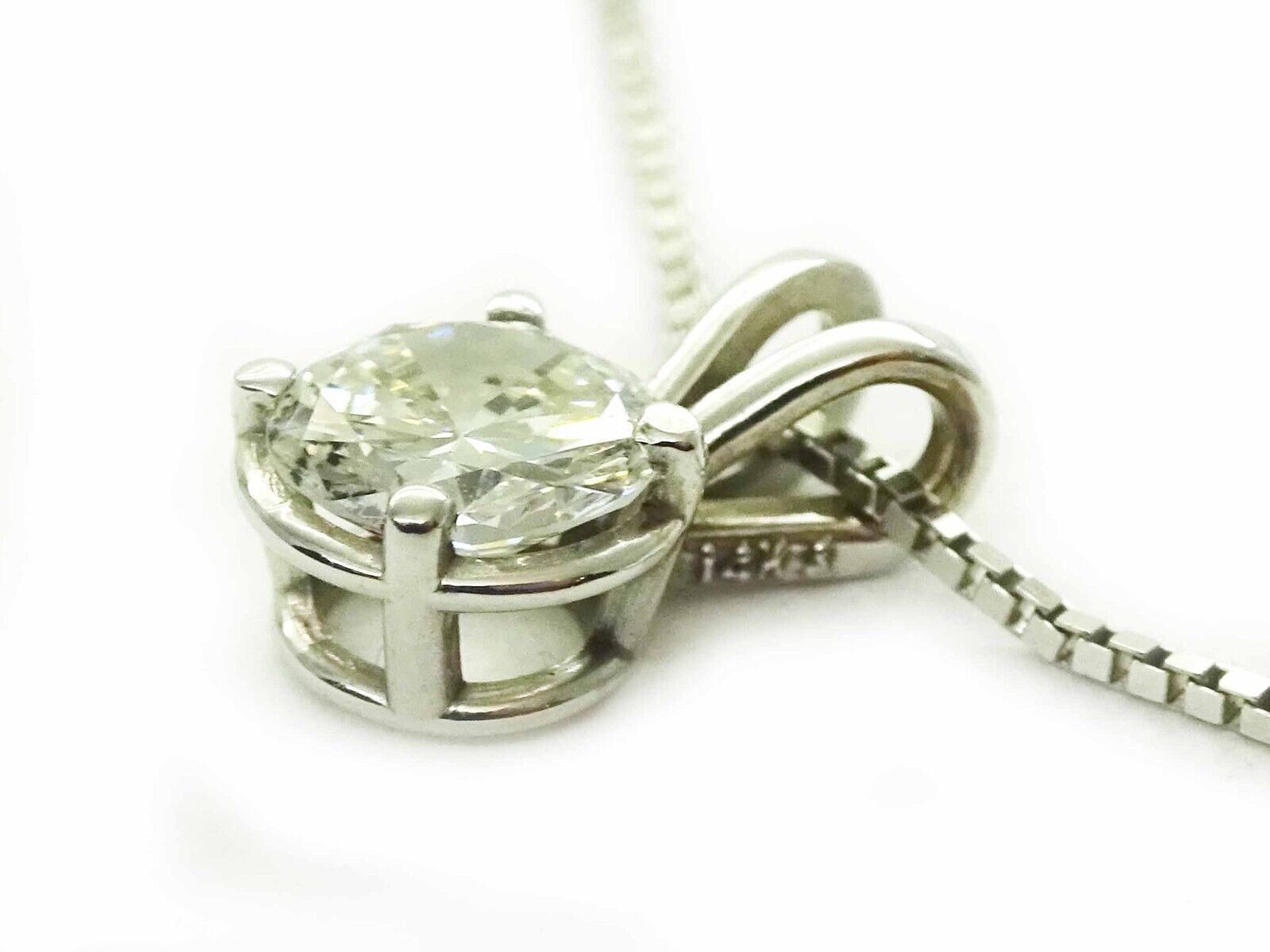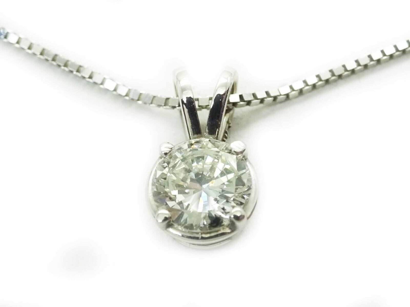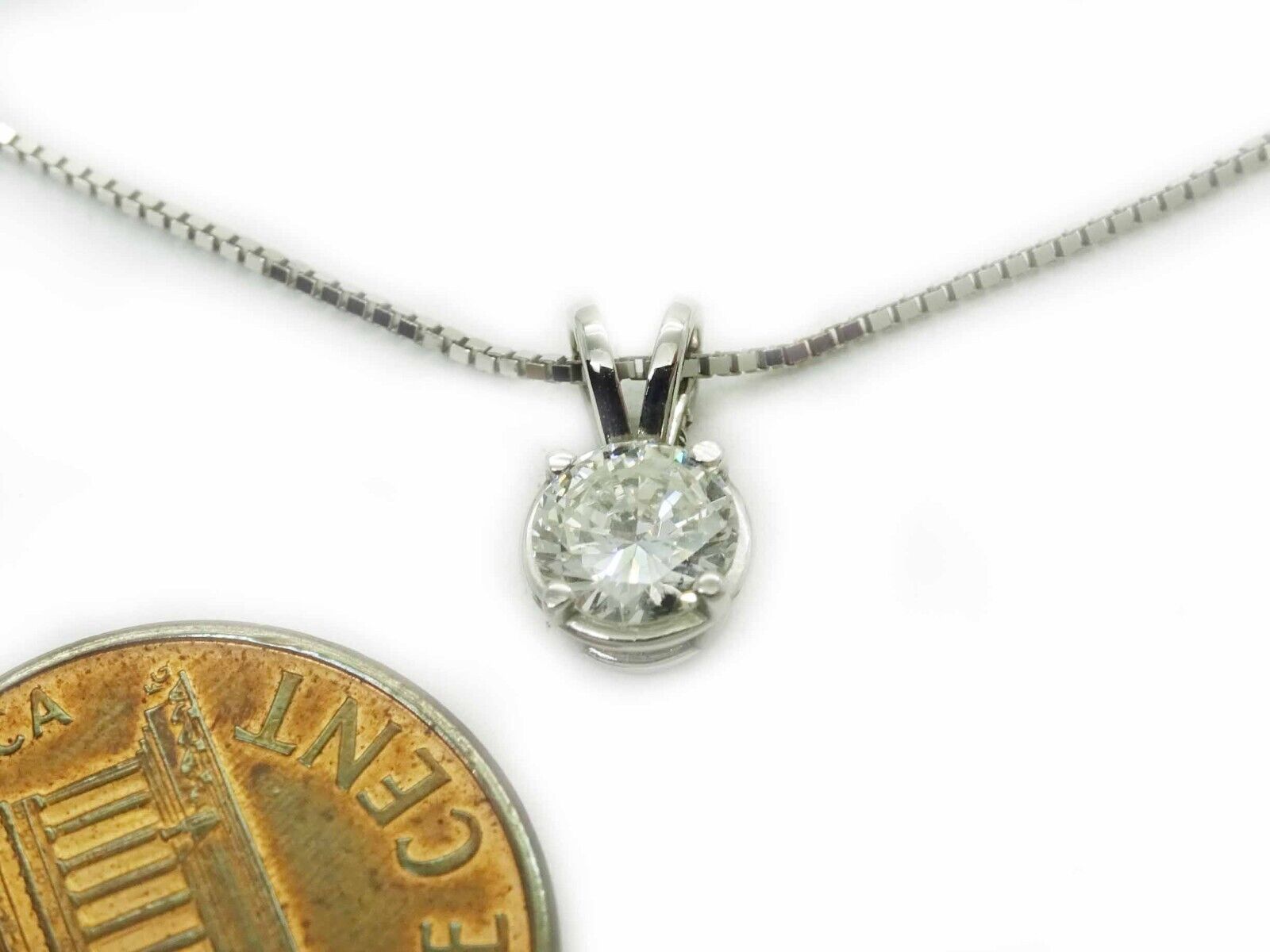 0.50ct Solitaire Round Natural Diamond 14k WG Charm Pendant on 10k WG Box Chain