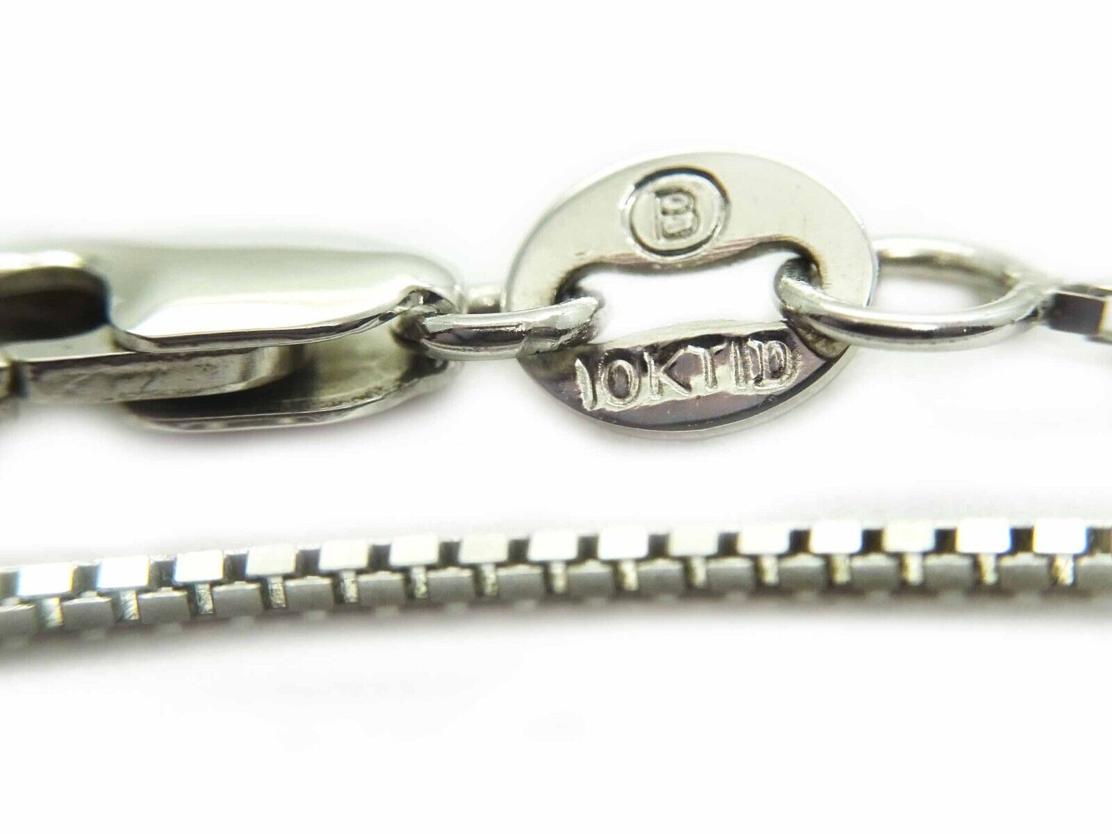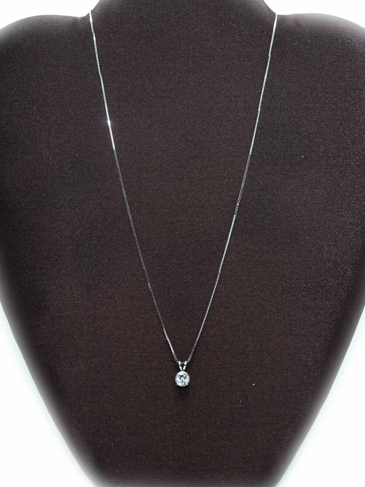 Lovely charm pendant in 14k white gold, set with a solitaire round diamond, and strung on a fine 10k white gold box chain.