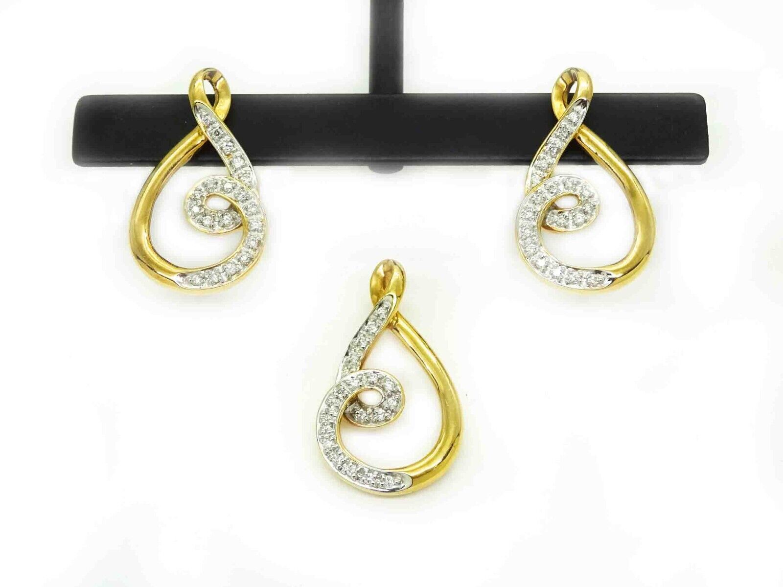 0.50ct tw Natural Diamond Swirling Ribbon Design Pendant & Earrings Set 18k Gold