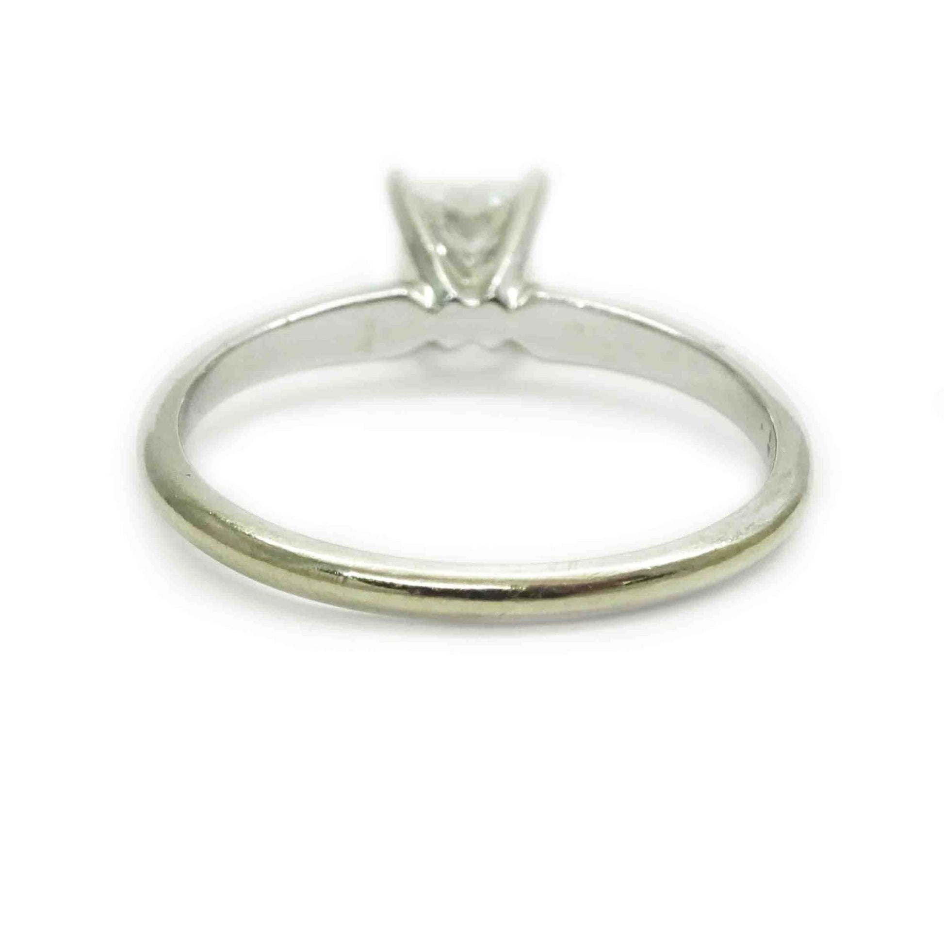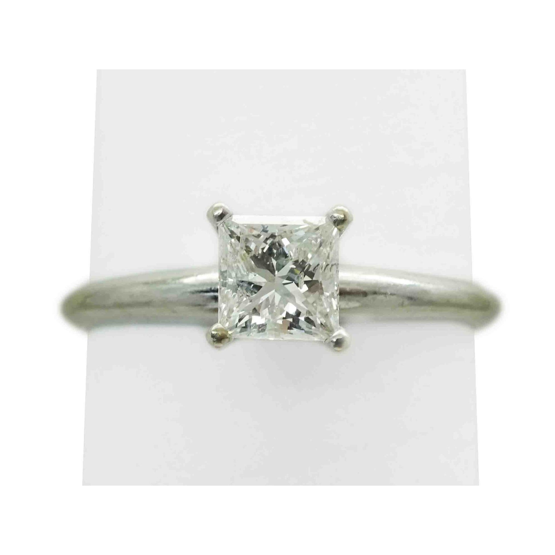 Brilliant princess cut diamond solitaire band ring in 14k white gold.