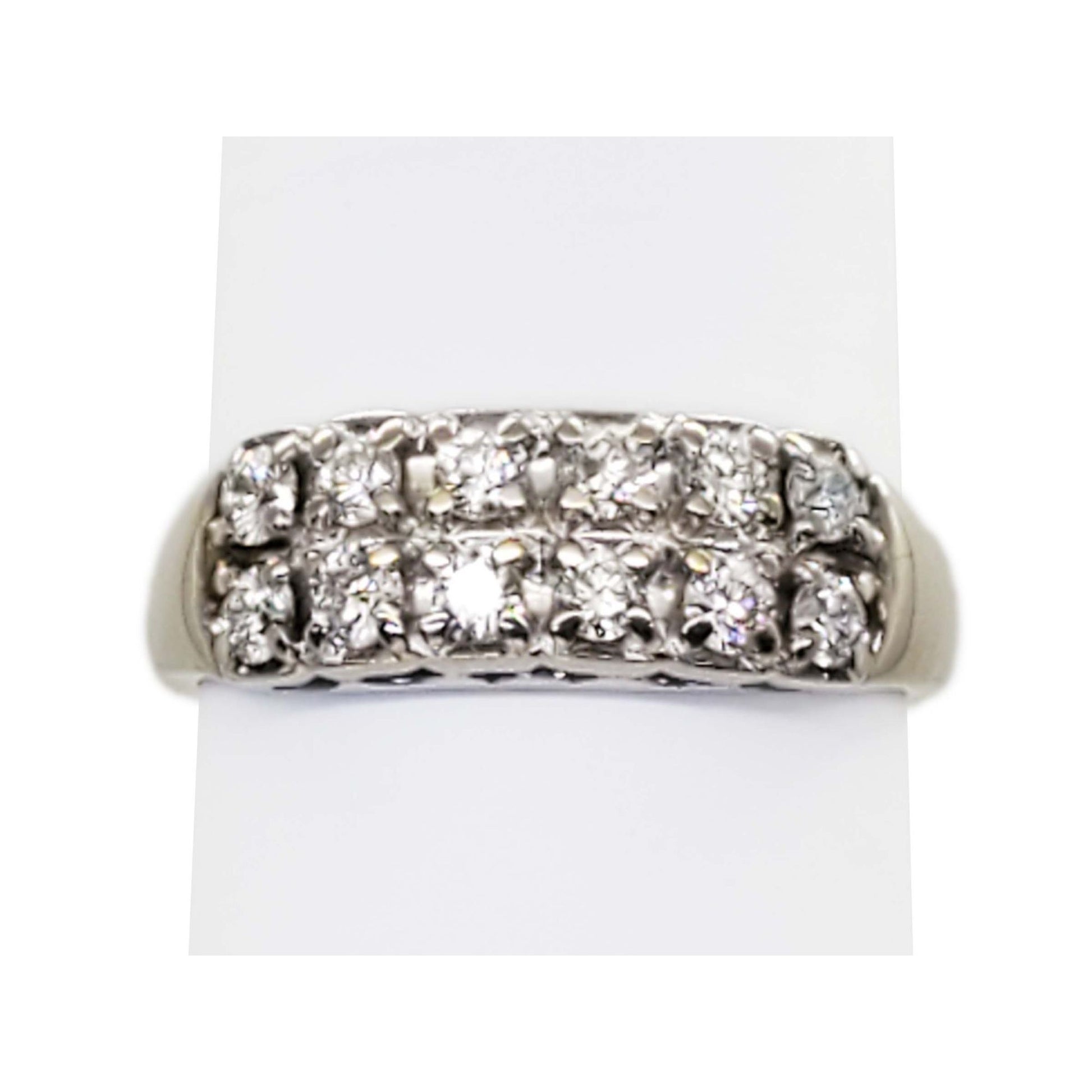 0.6 ctw Natural Diamond 2-Row Filigree Band Ring 14k White Gold Size 11