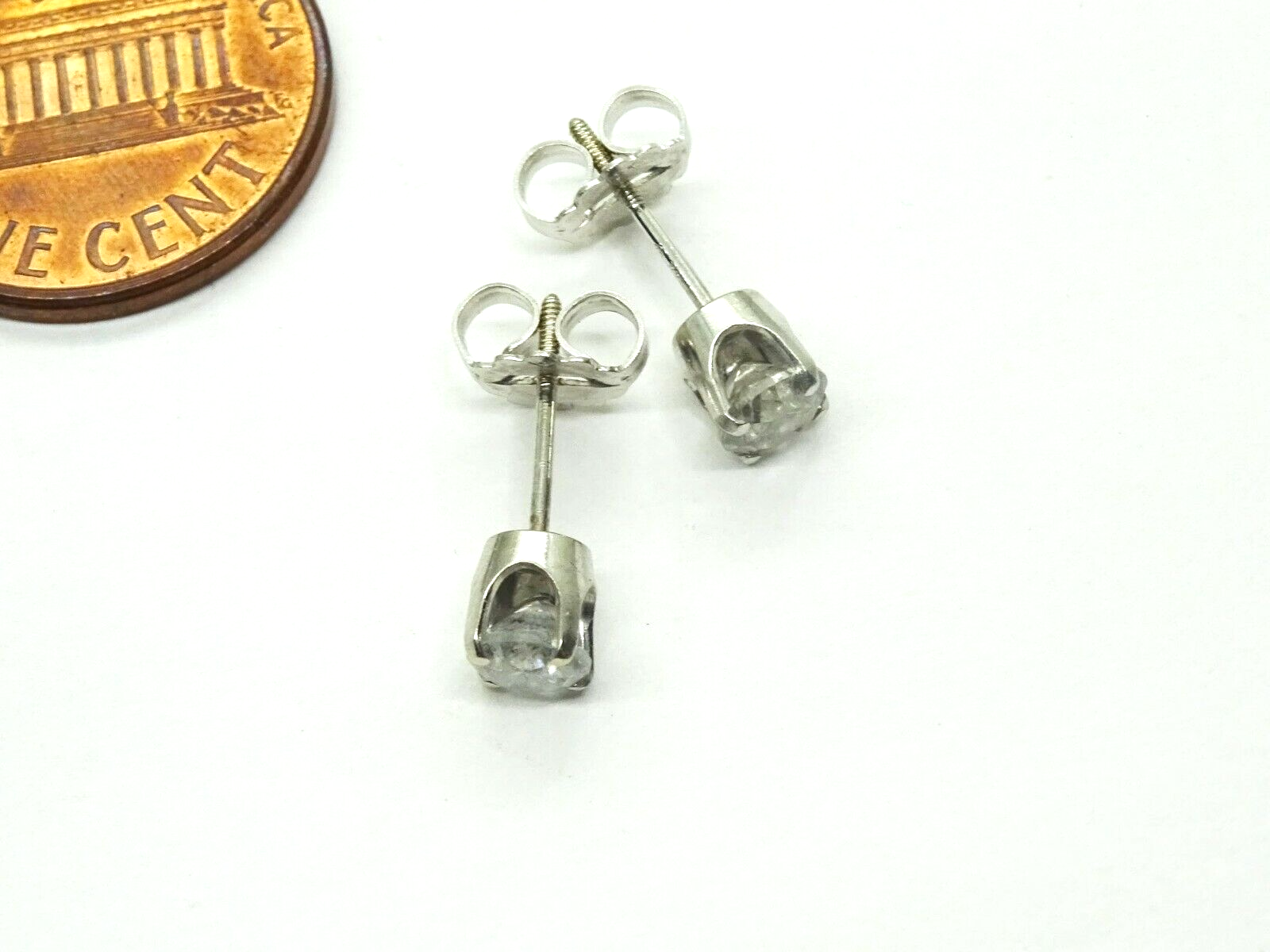 Sparkling pair of diamond stud earrings in 14k white gold.