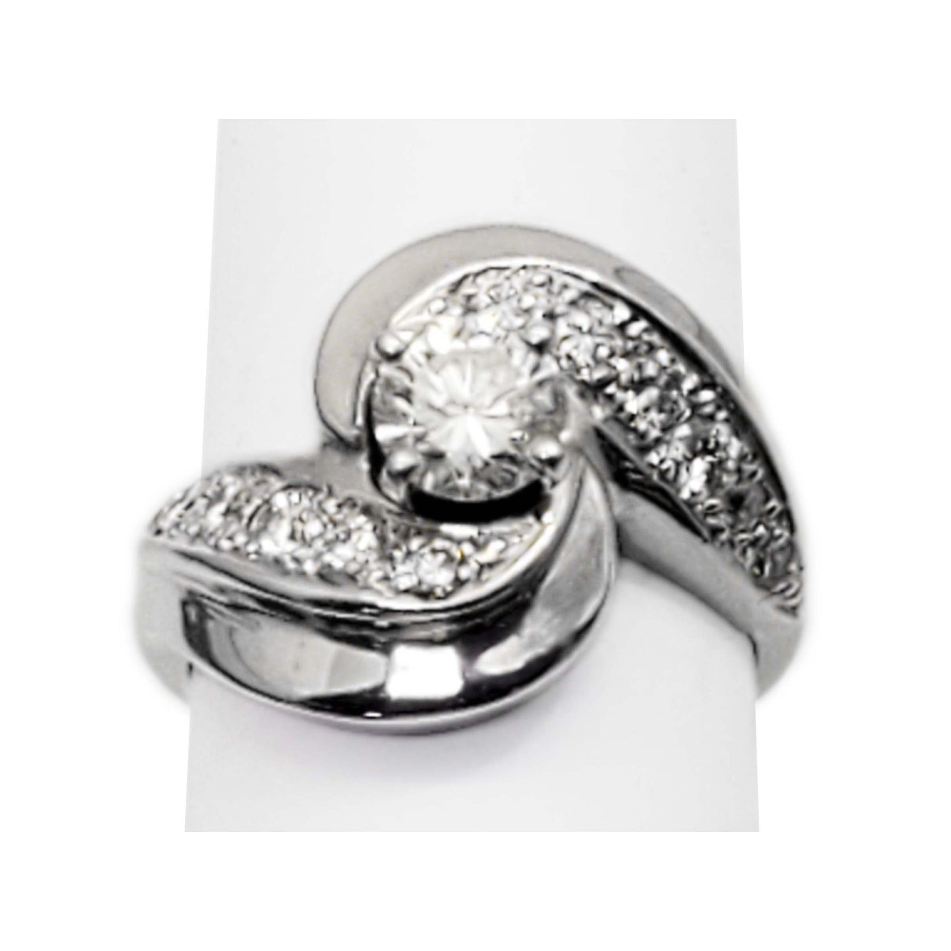 0.72 ctw Natural Diamond Swirl Bypass Style Ring 14k White Gold Size 5