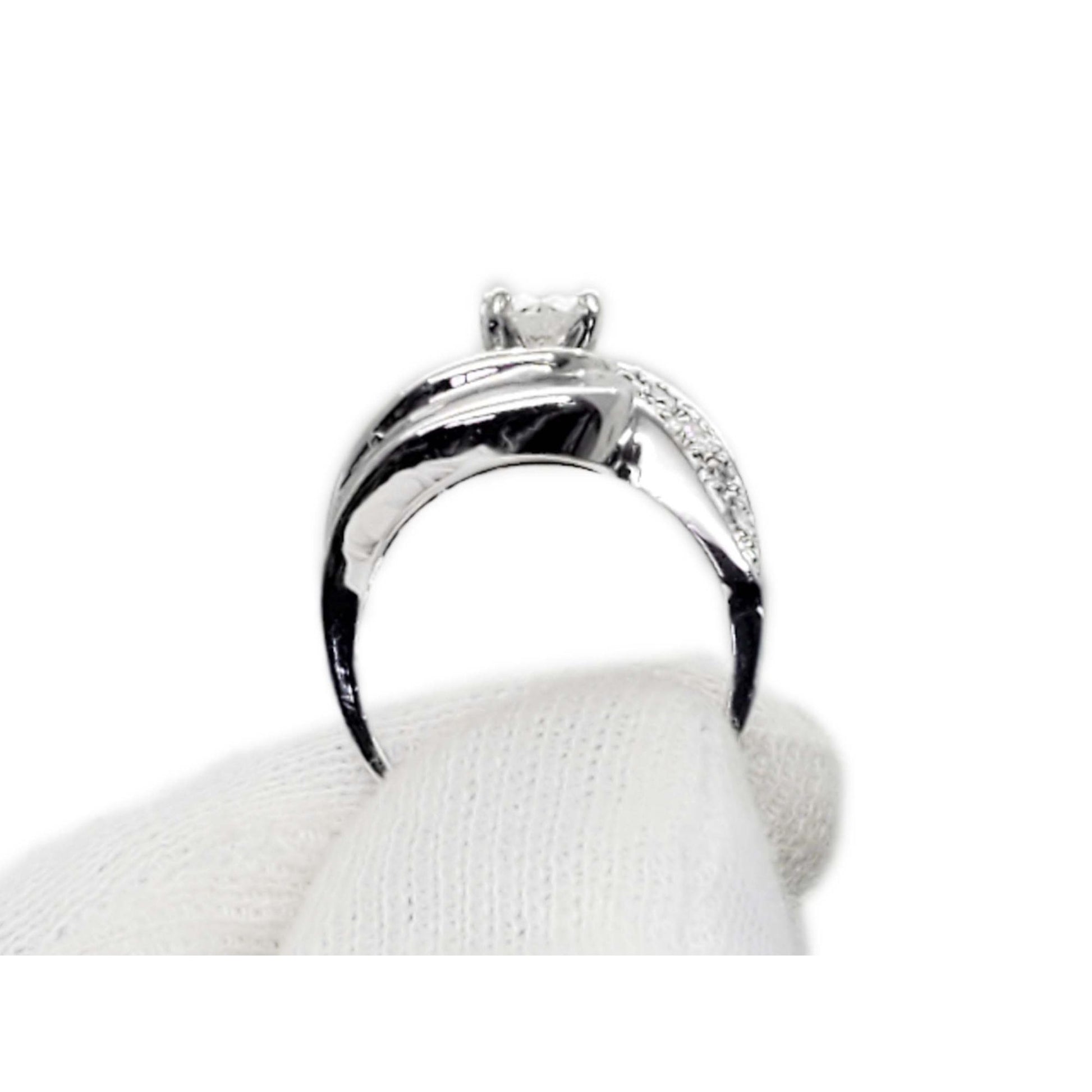 Ladies diamond swirl bypass style ring in 14k white gold.