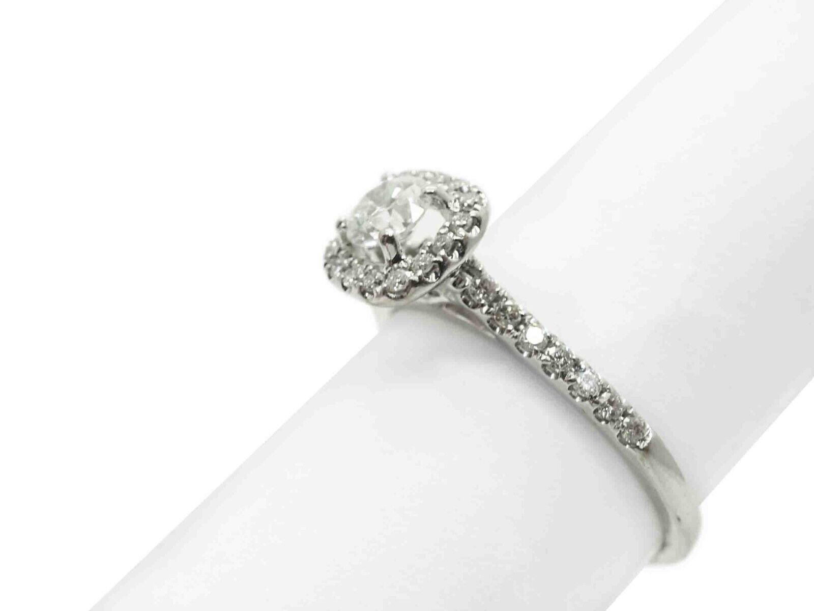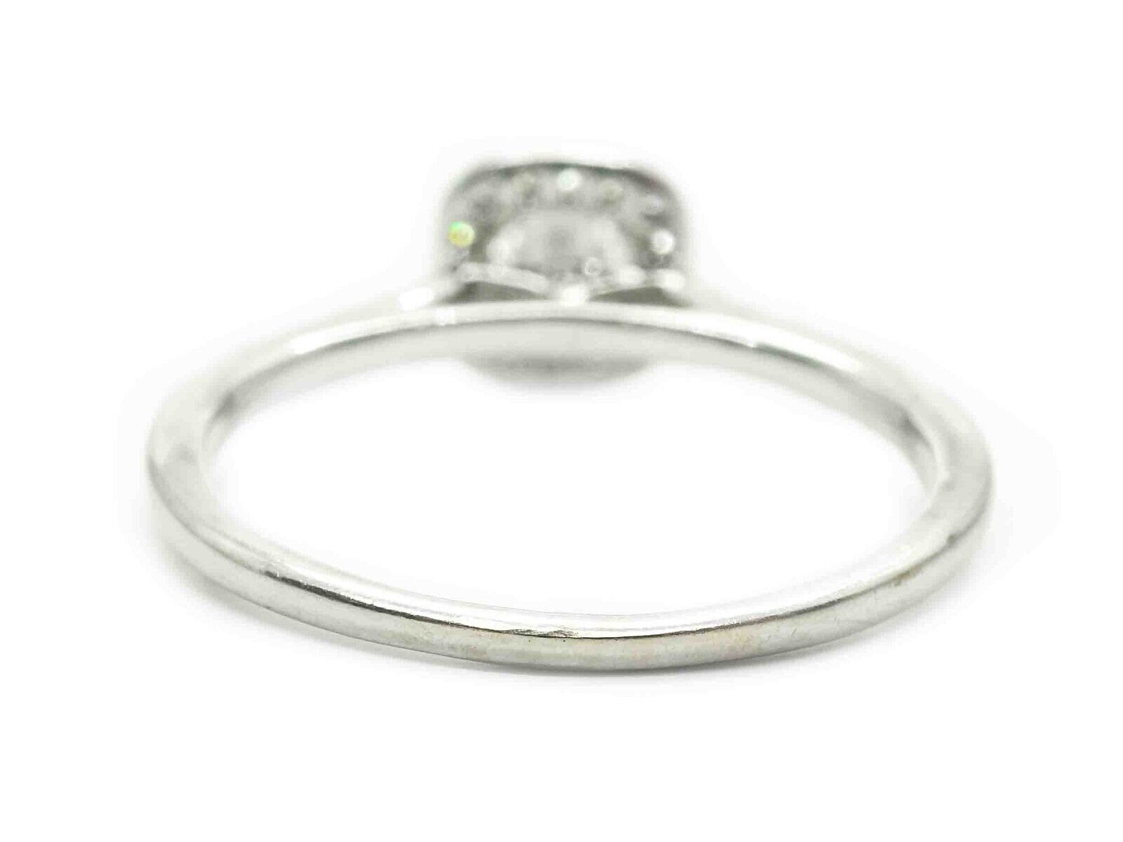 The center is surrounded by 18 round brilliant diamonds in a halo, about 0.01ct each, estimated at about 0.18ct tw gem weight.