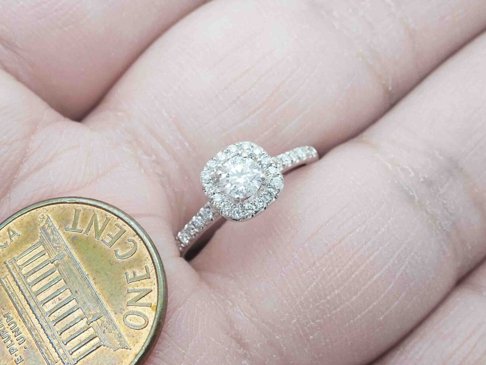 0.73ct tw Natural Diamond Halo Engagement Band Ring 10k White Gold Size 5.5