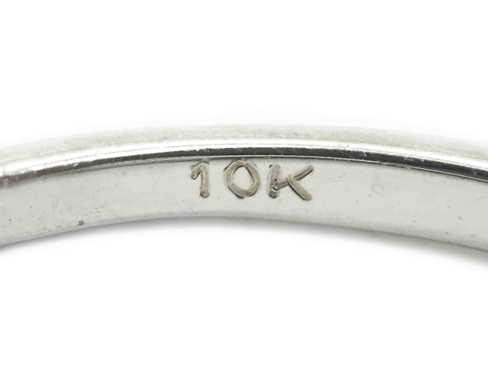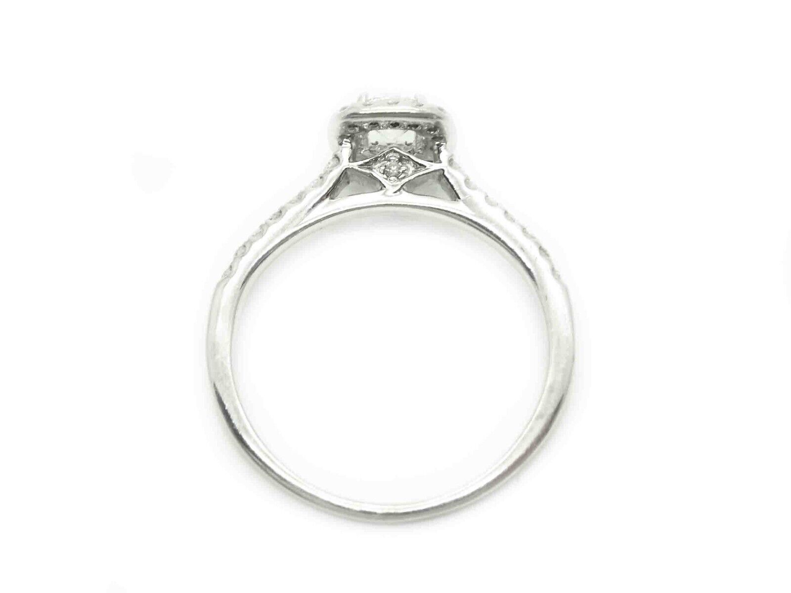 Simple sparkling diamond halo engagement band ring, in 10k white gold.