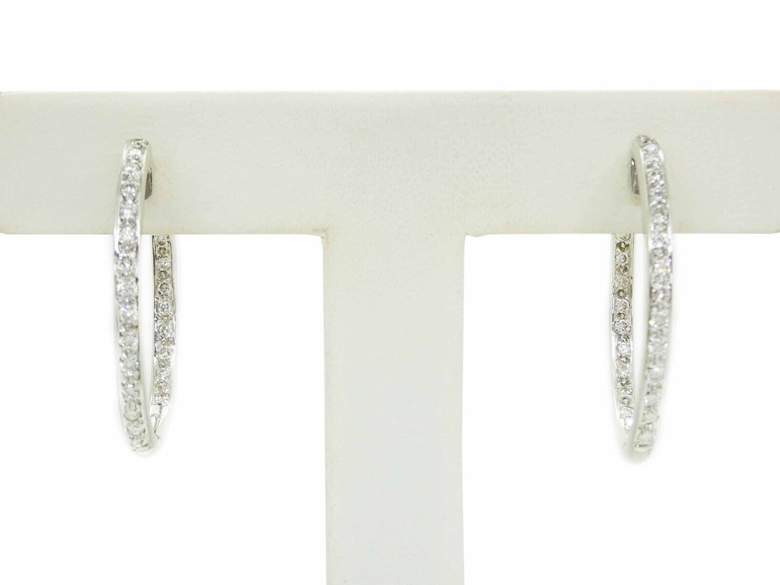 0.75ct tw Natural Diamond Oval Hoop Dangle Earrings 14k White Gold