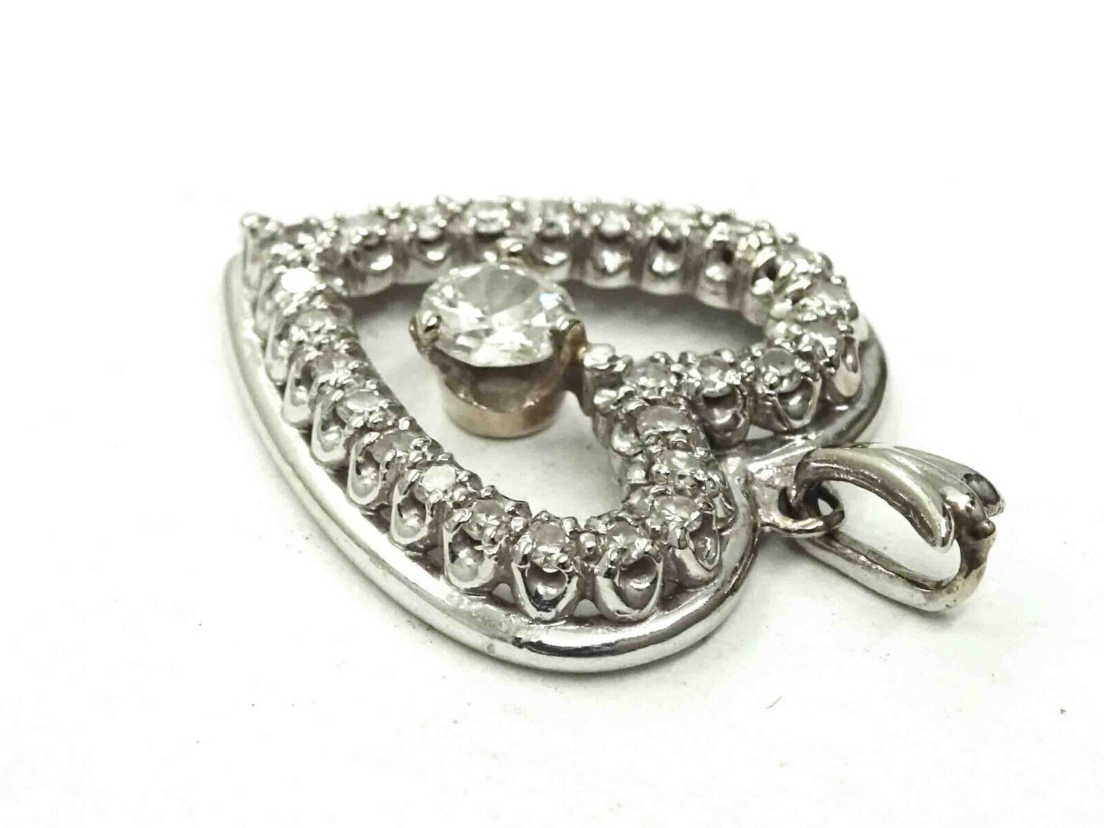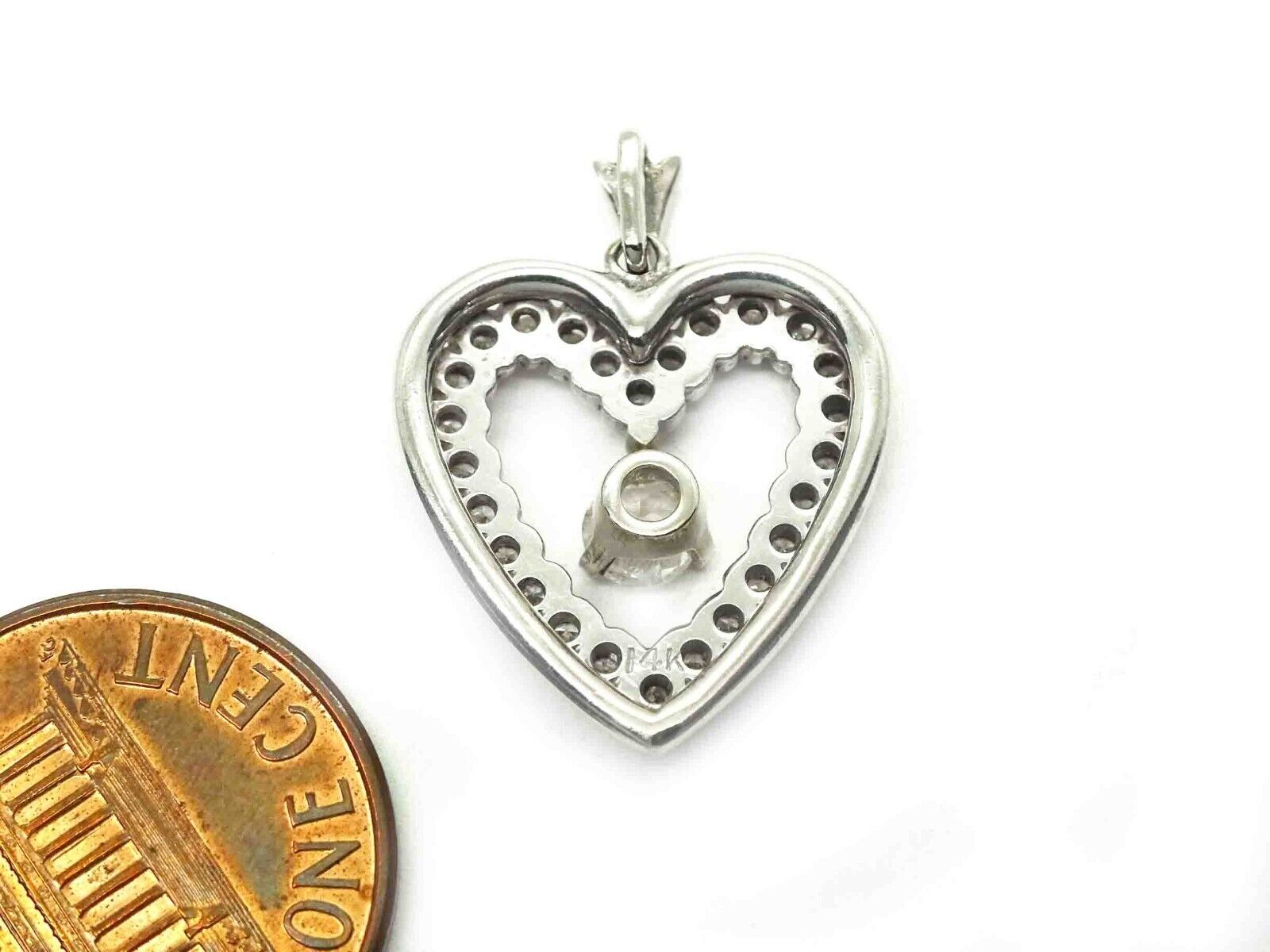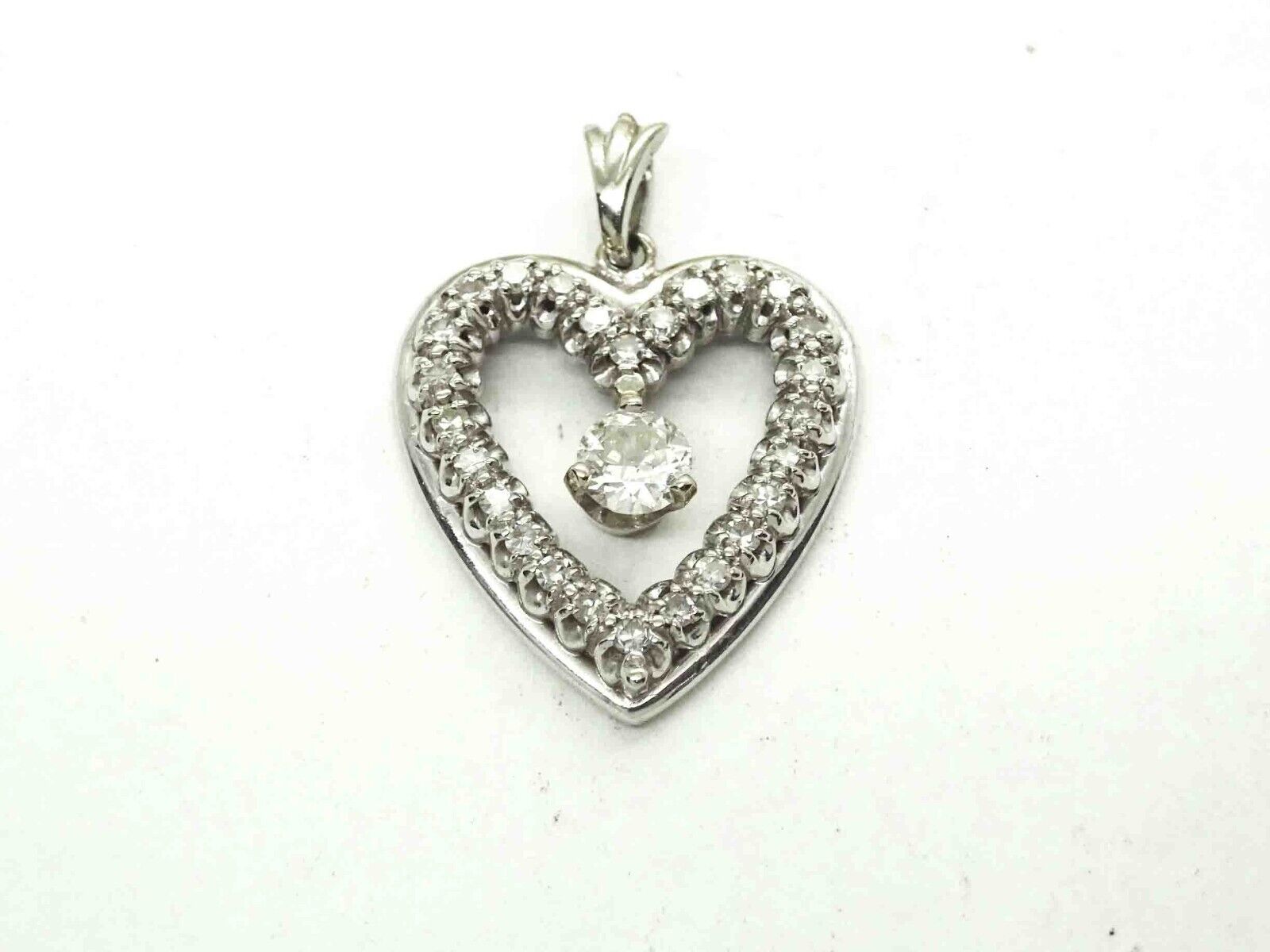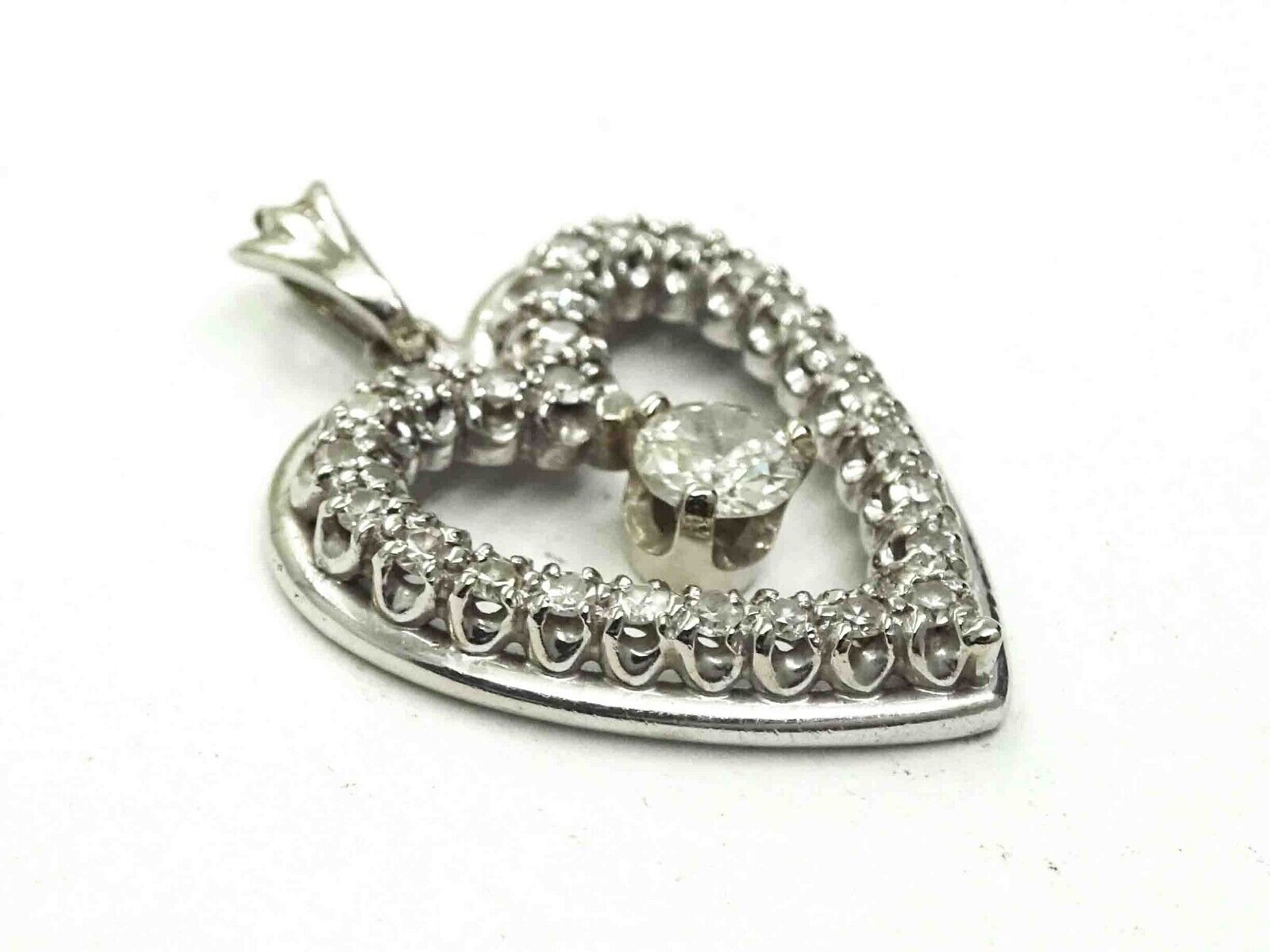 0.85ct tw Natural Diamond Open Heart Pendant 14k White Gold 2.9 Grams