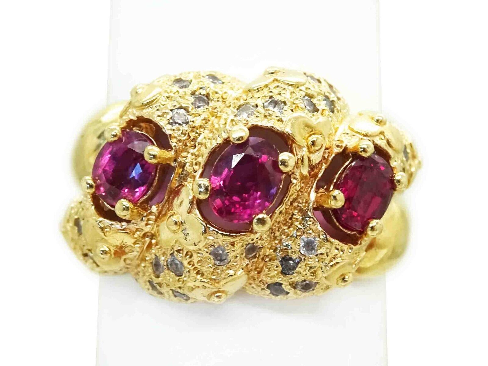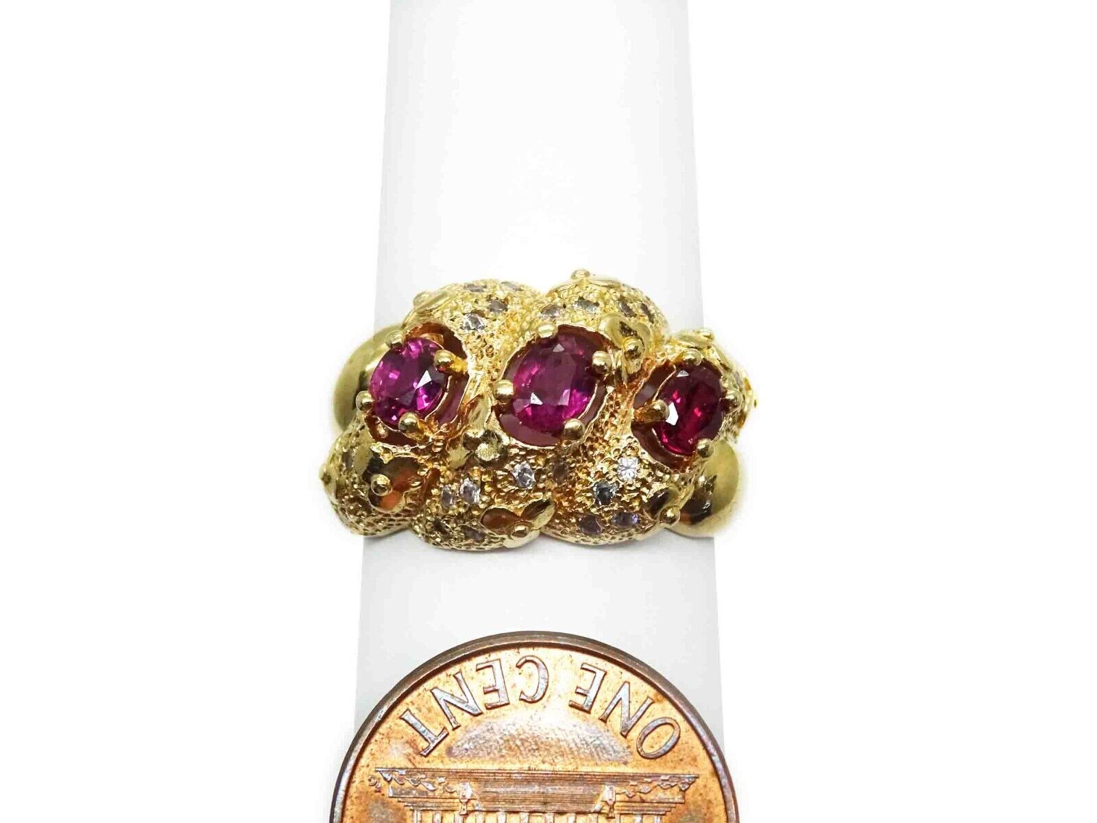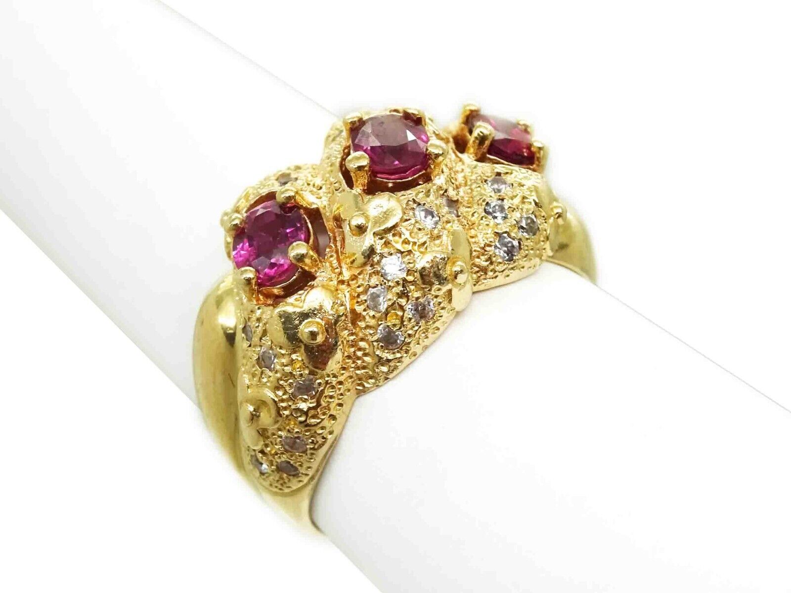 0.90ct tw Natural Ruby & Diamond Shrimp Flower Cocktail Ring 14k Gold Size 8.5