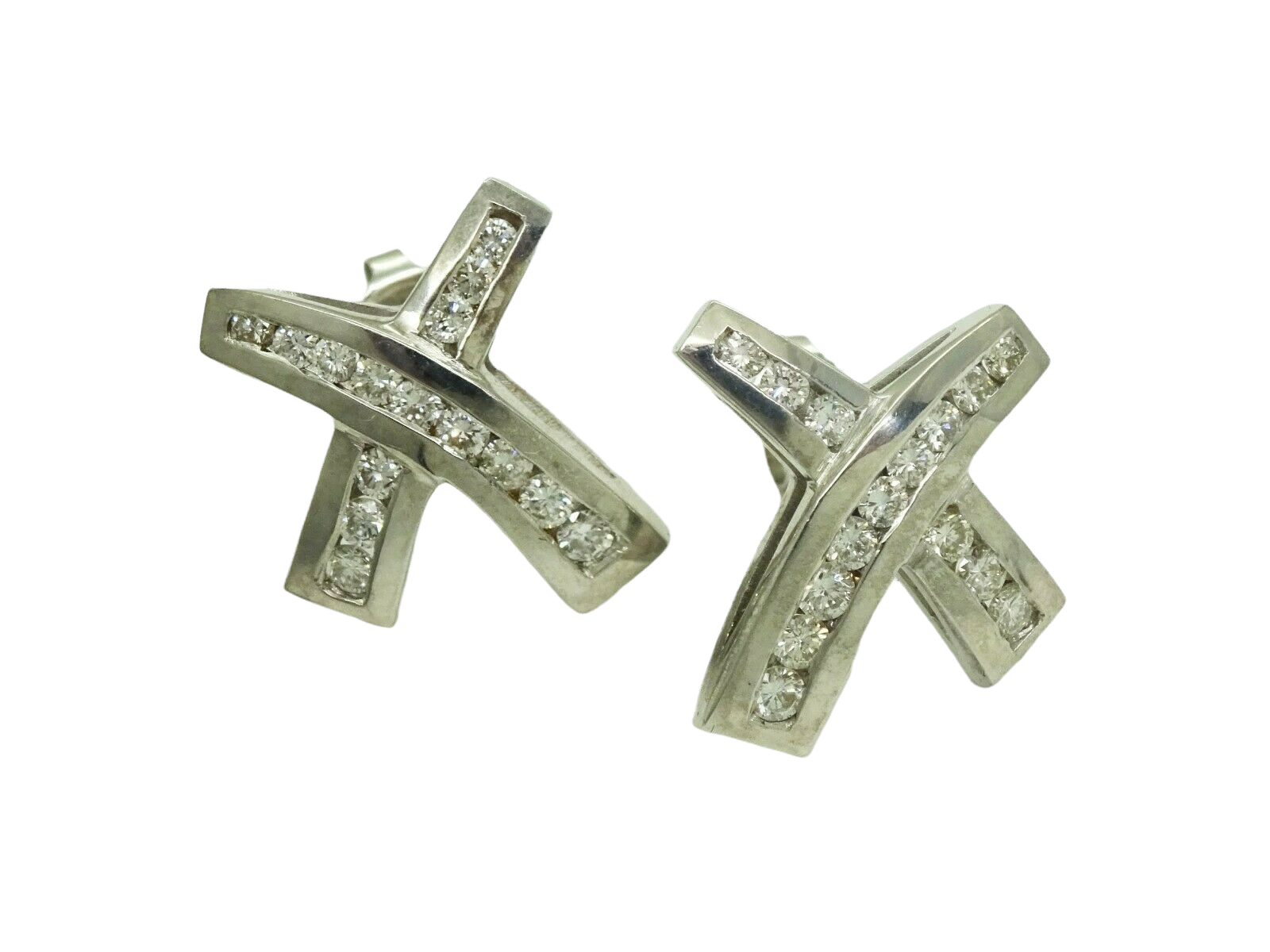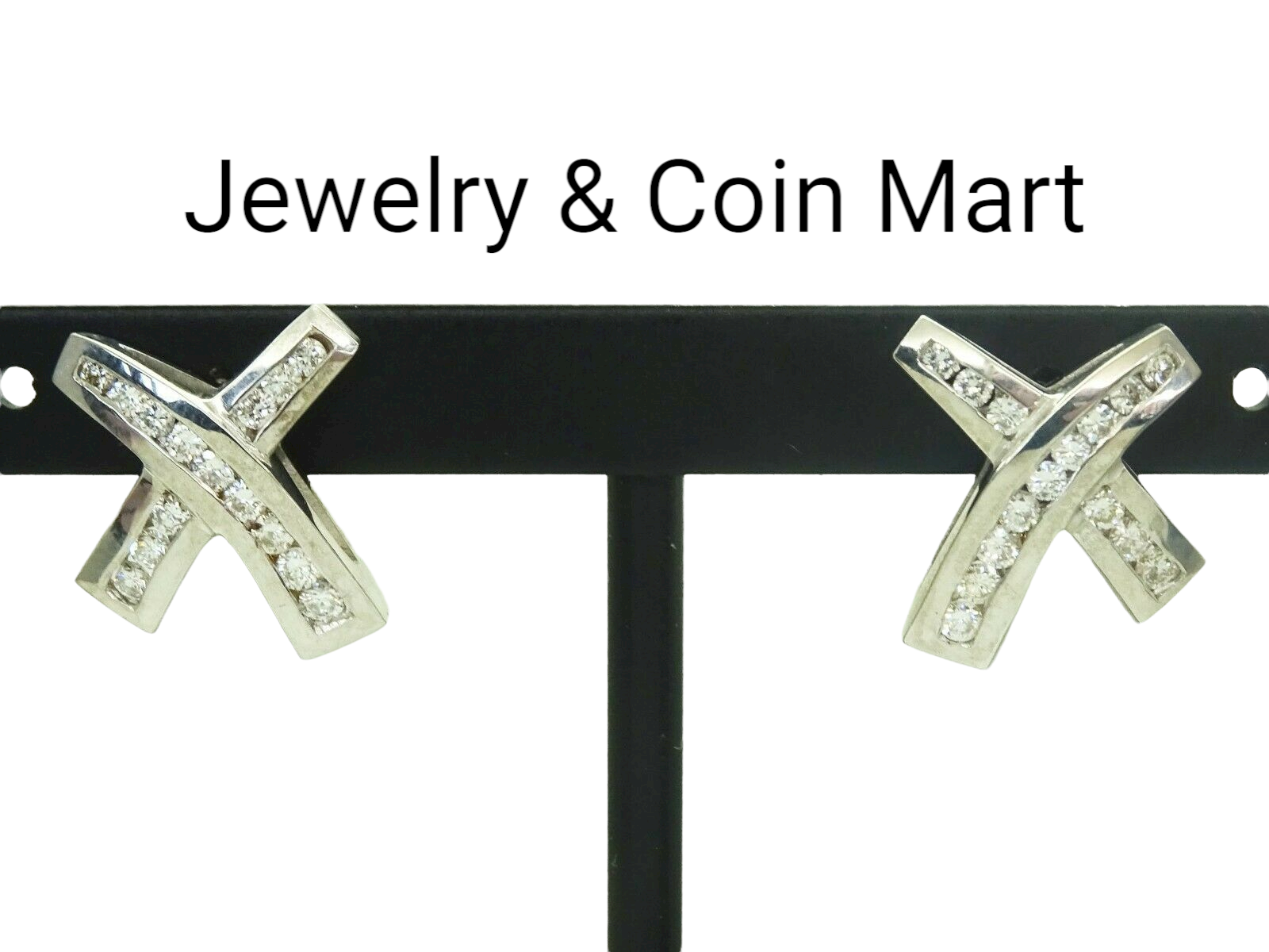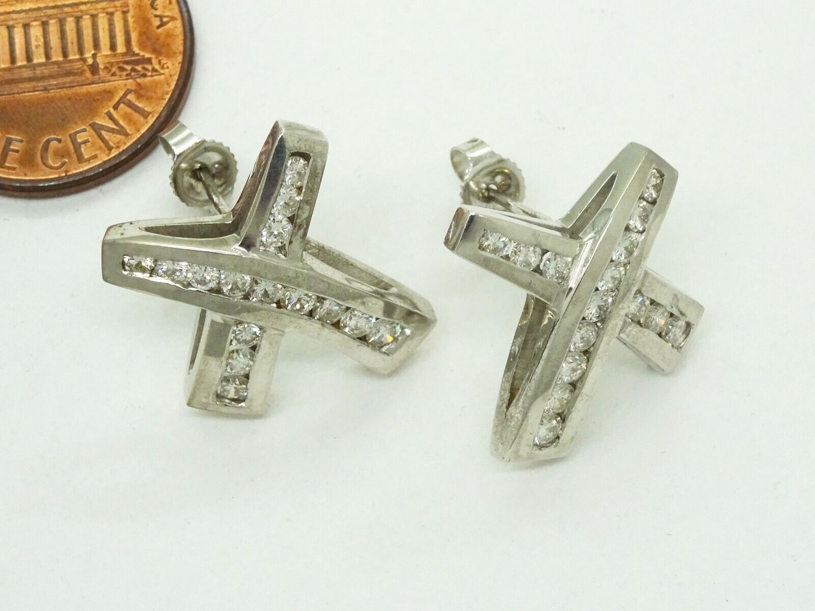 1.00ct tw Earth Mined Diamond X Ribbon Style Earrings 14k White Gold