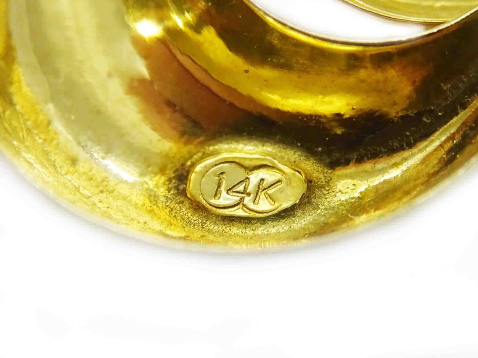 Pair of swirl ribbon design drop earrings in 14k yellow gold.