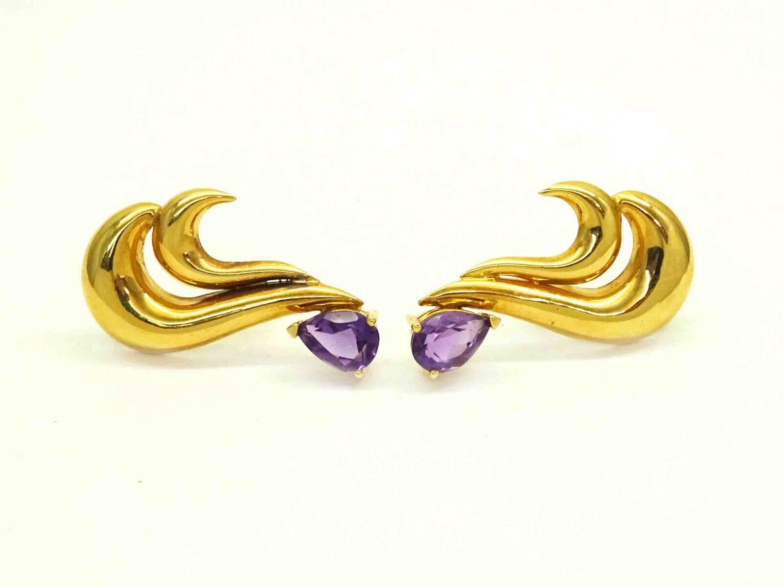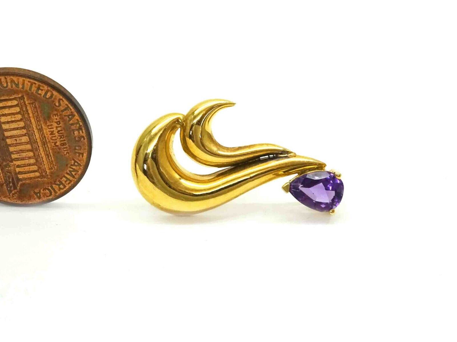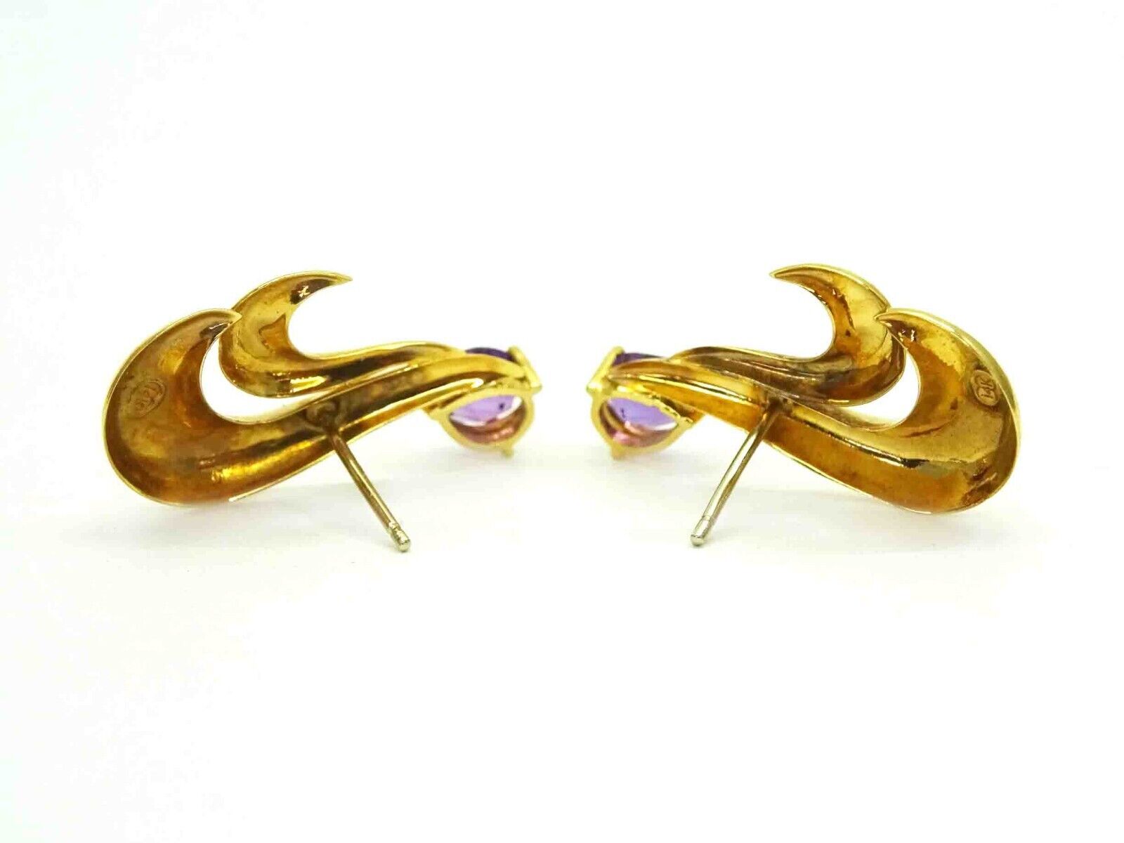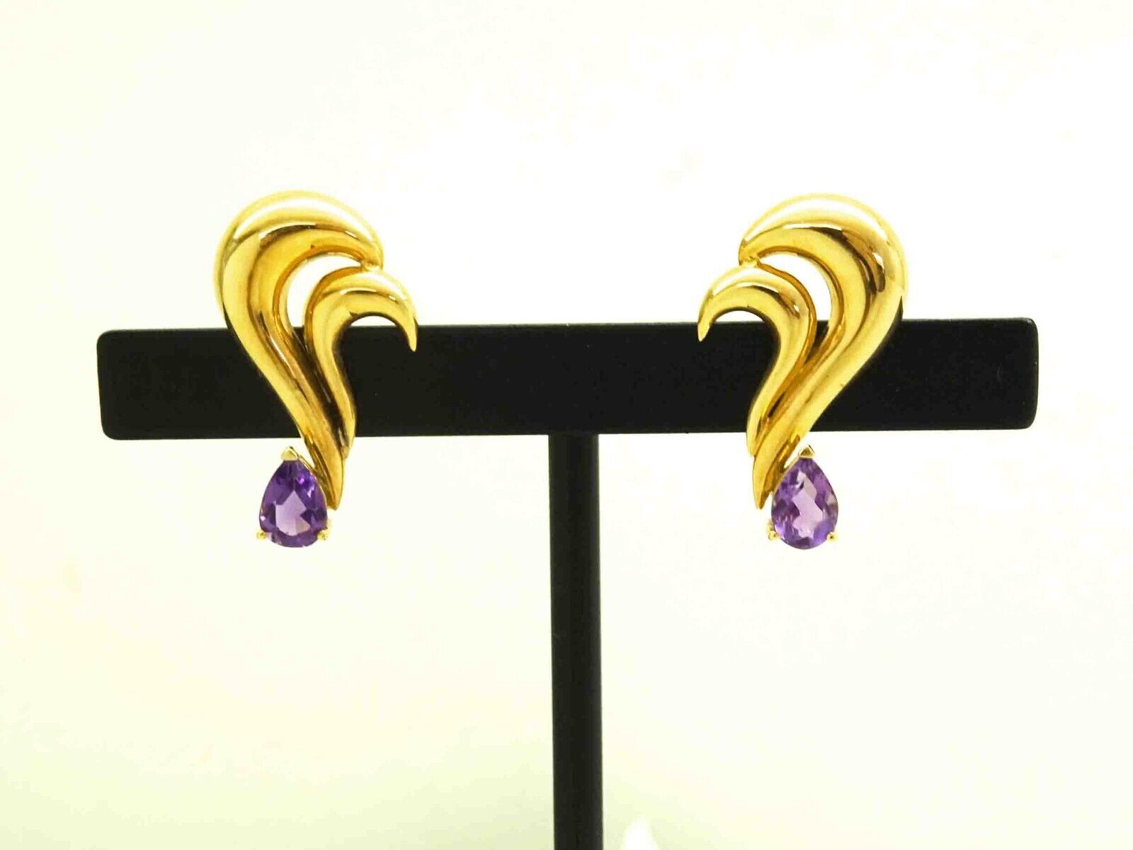1.00ct tw Pear Natural Amethyst Swirl Ribbon Design Drop Earrings 14k Gold