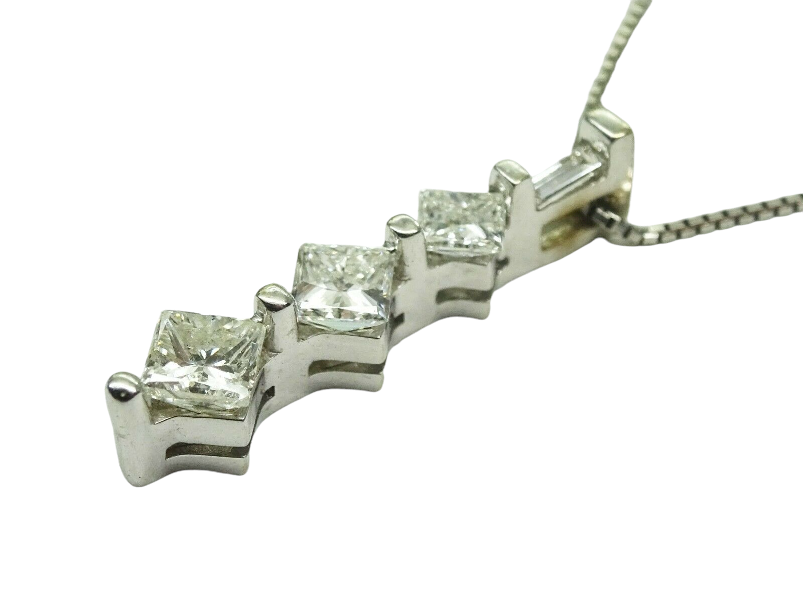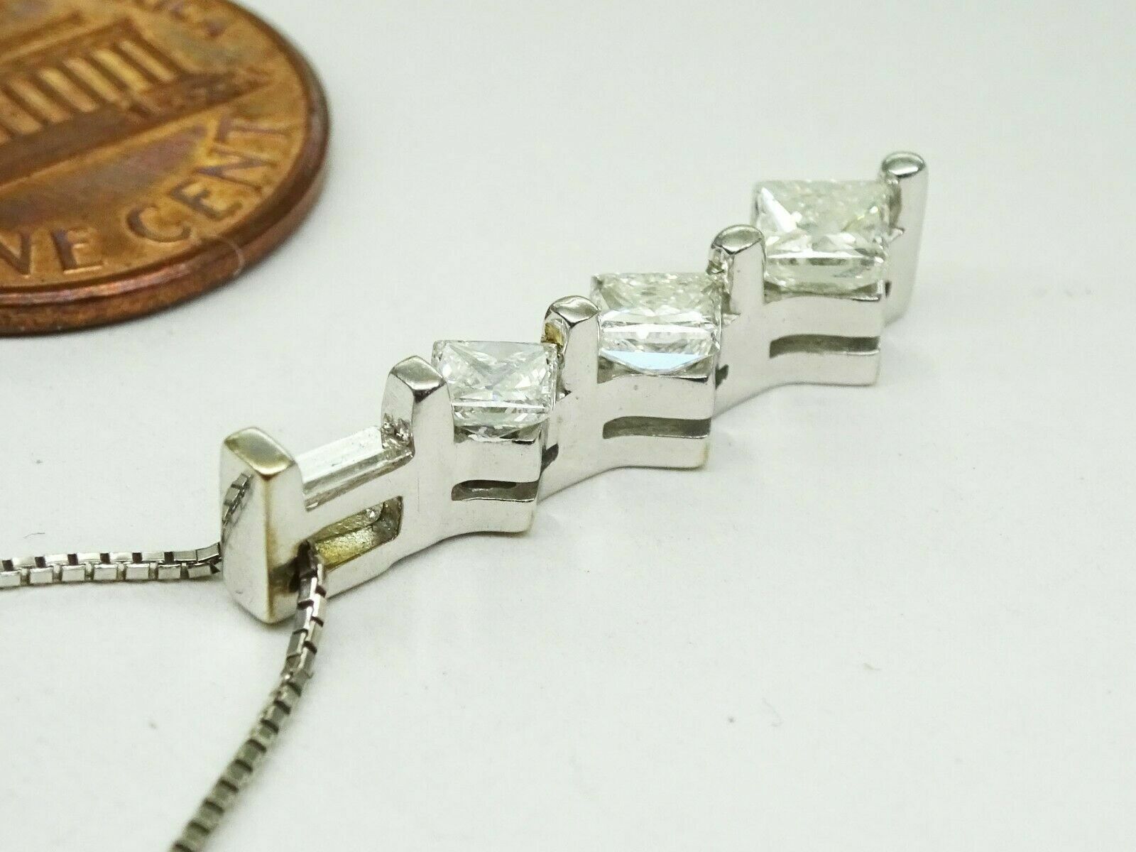 1.00ct tw Princess Diamond Drop Pendant Box Chain Necklace 14k White Gold