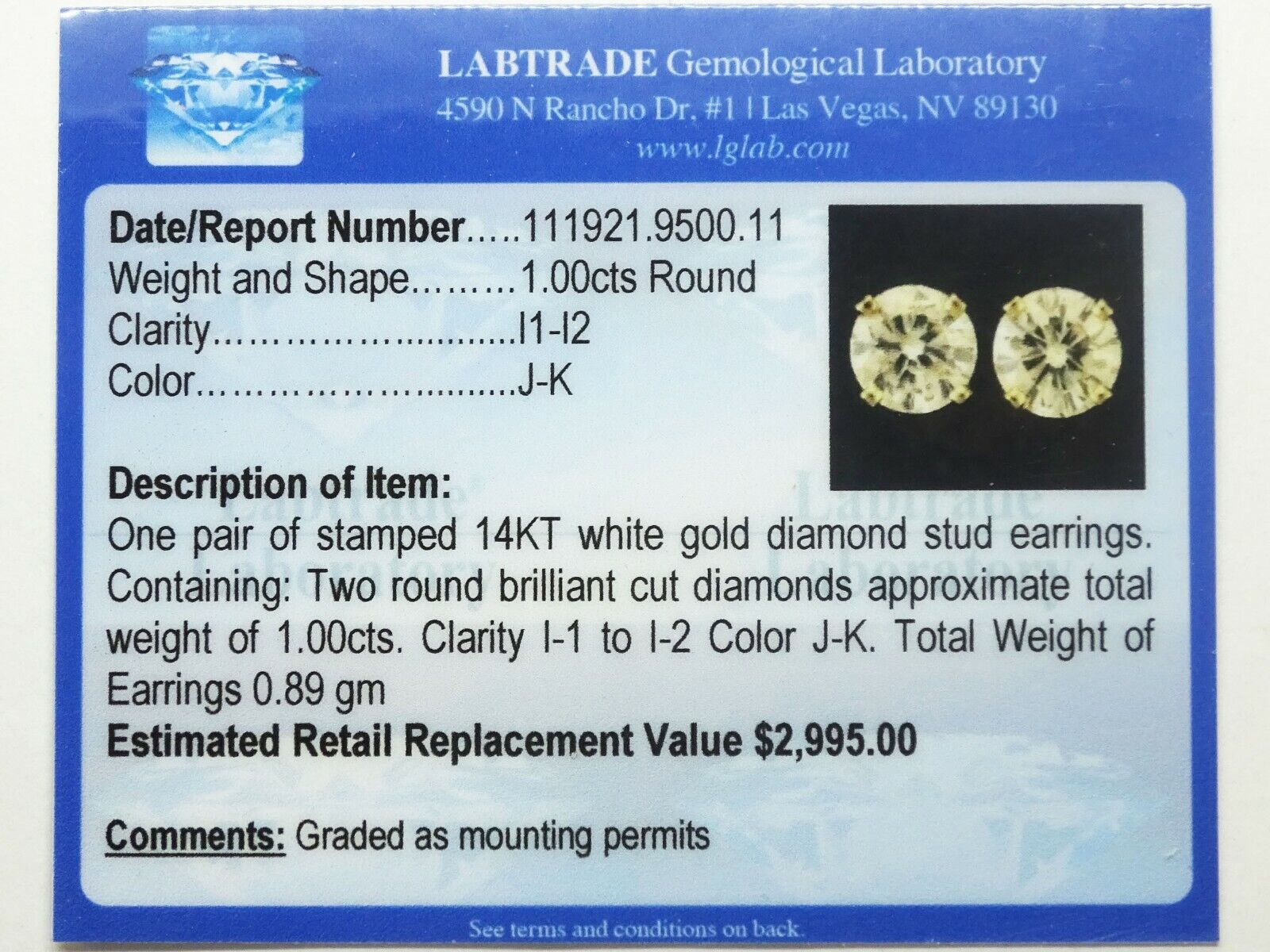 1.00ct tw Round Diamond Stud Earrings 14k White Gold