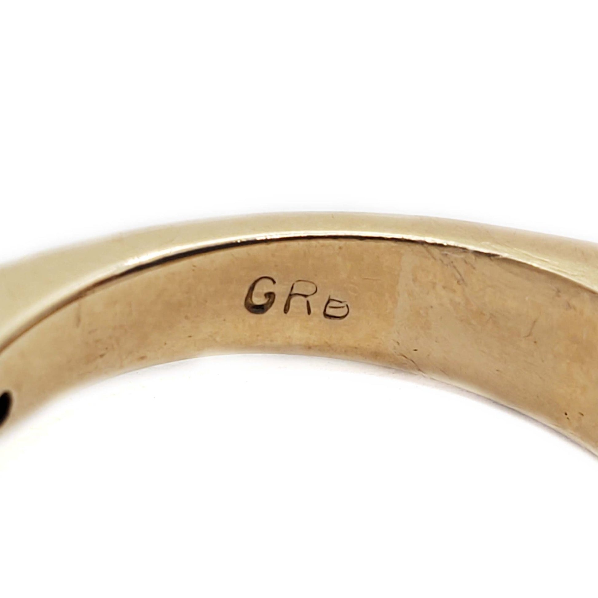 The wedding band is set with ten diamonds estimated at 0.2 ctw, with an average clarity of SI1-SI2 and color of H-I.