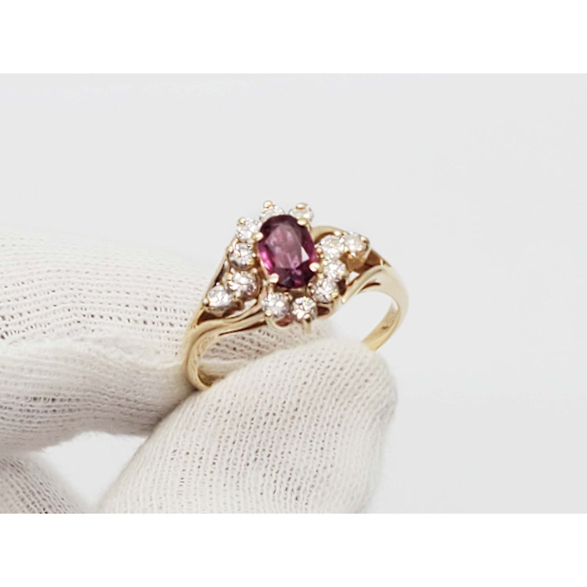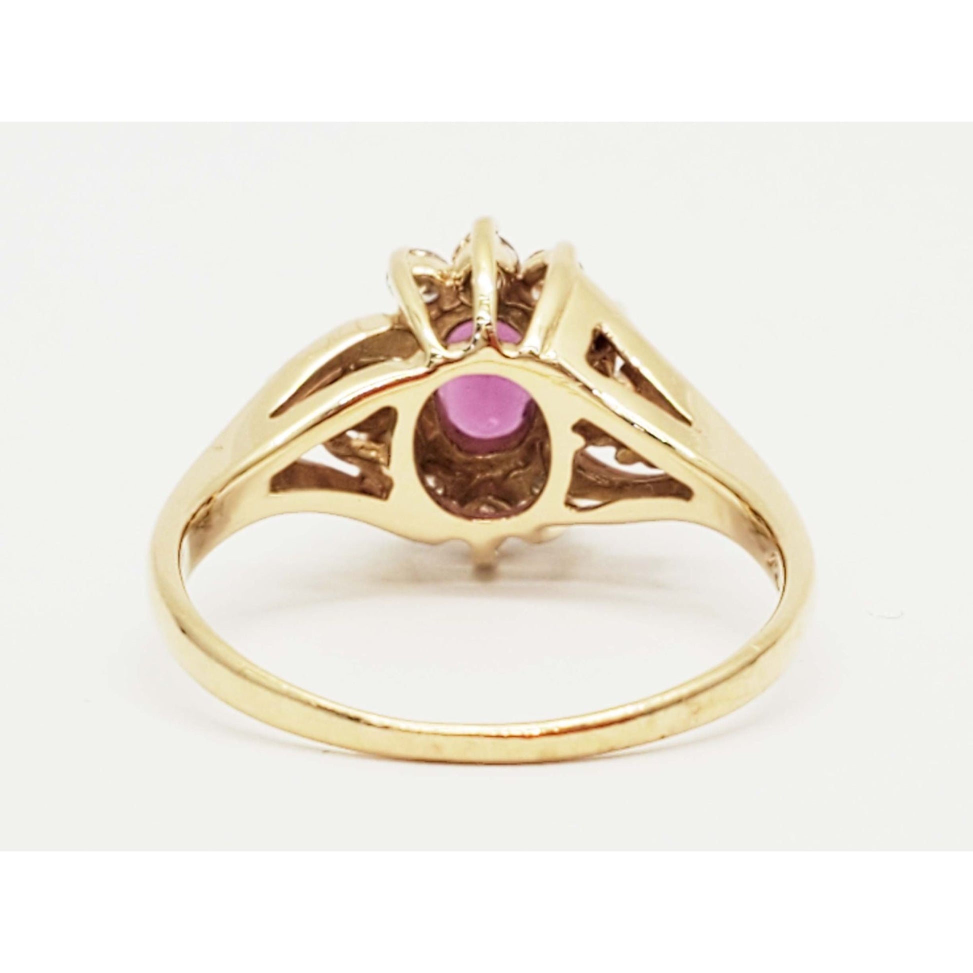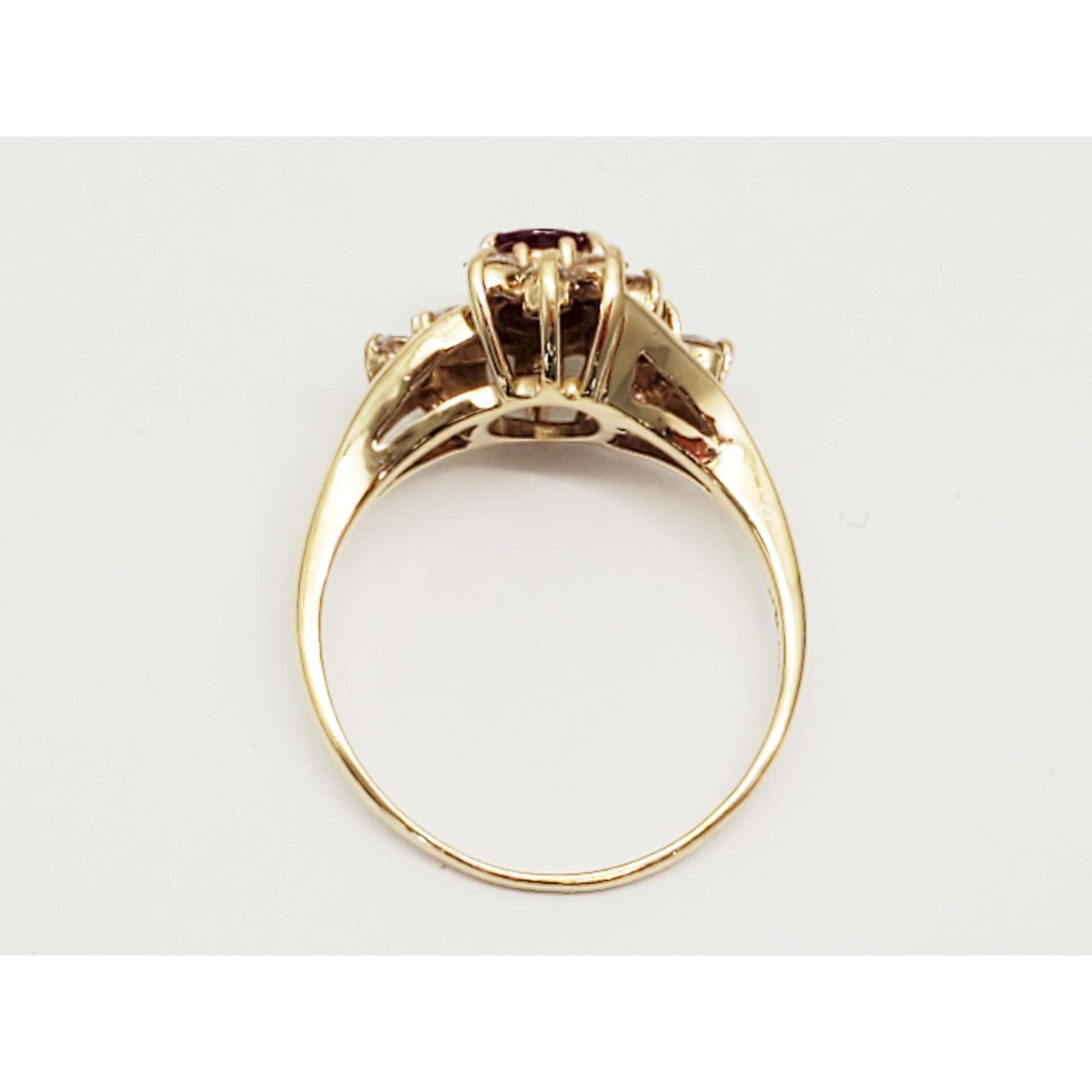 Ladies ruby and diamond cocktail filigree ring in 14k yellow gold.