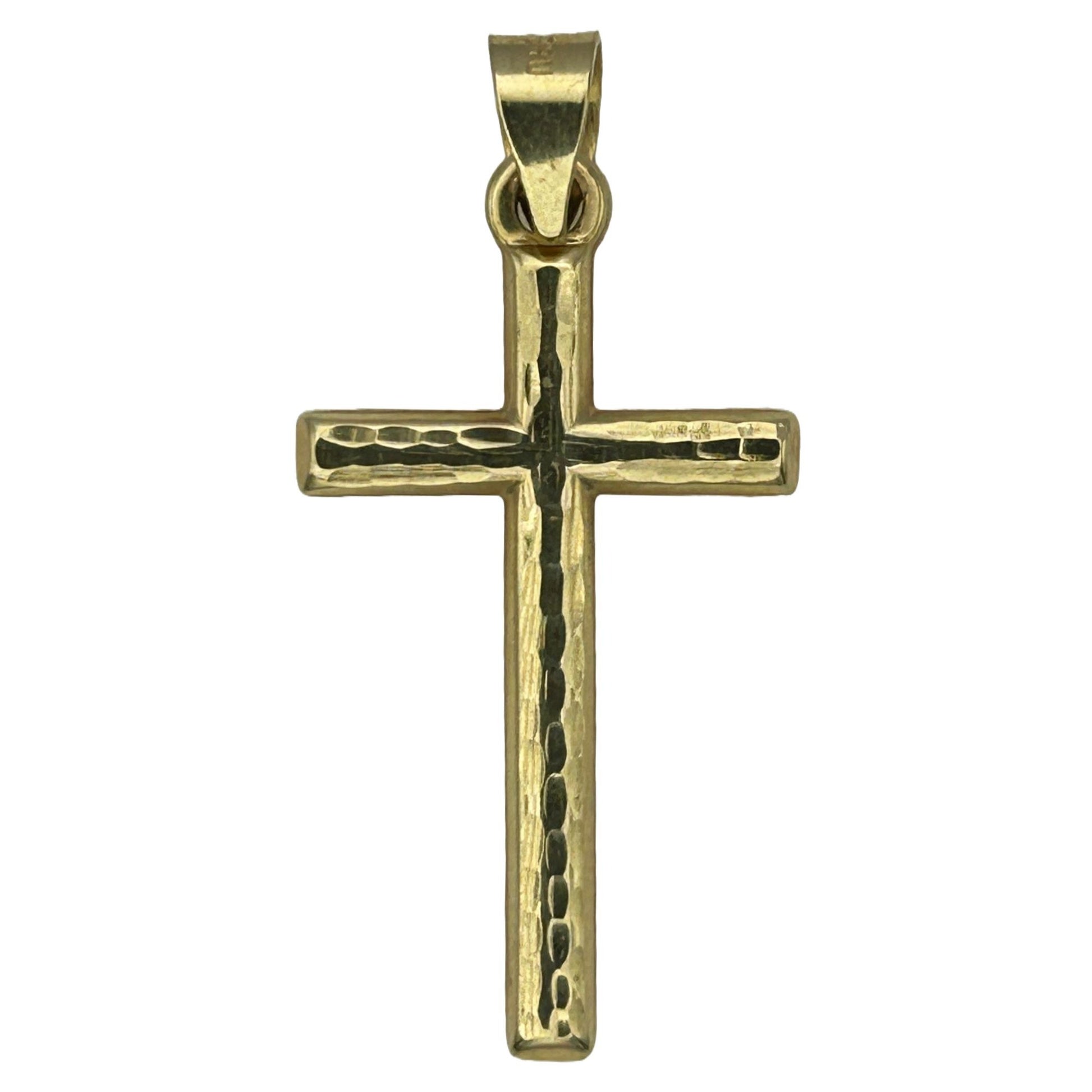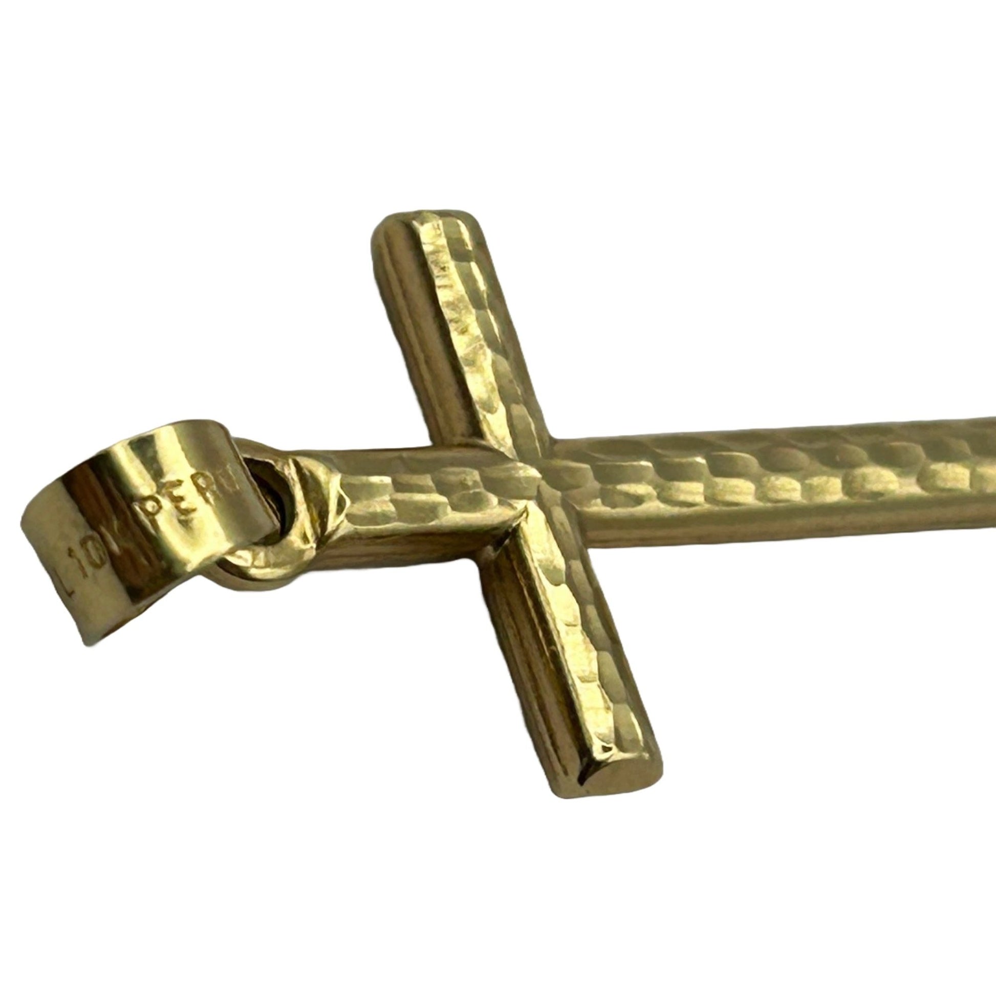1.25" Religious Cross Textured Necklace Pendant 10k Yellow Gold 1 Gram