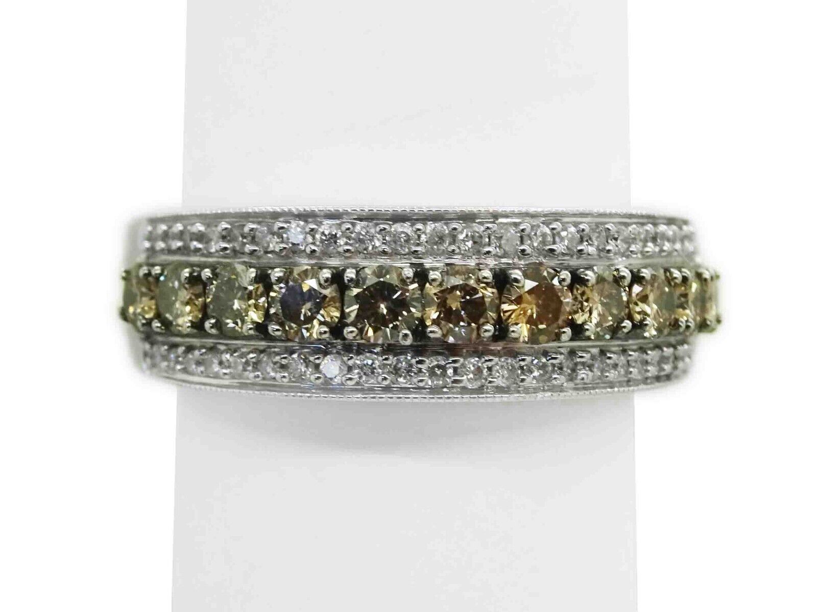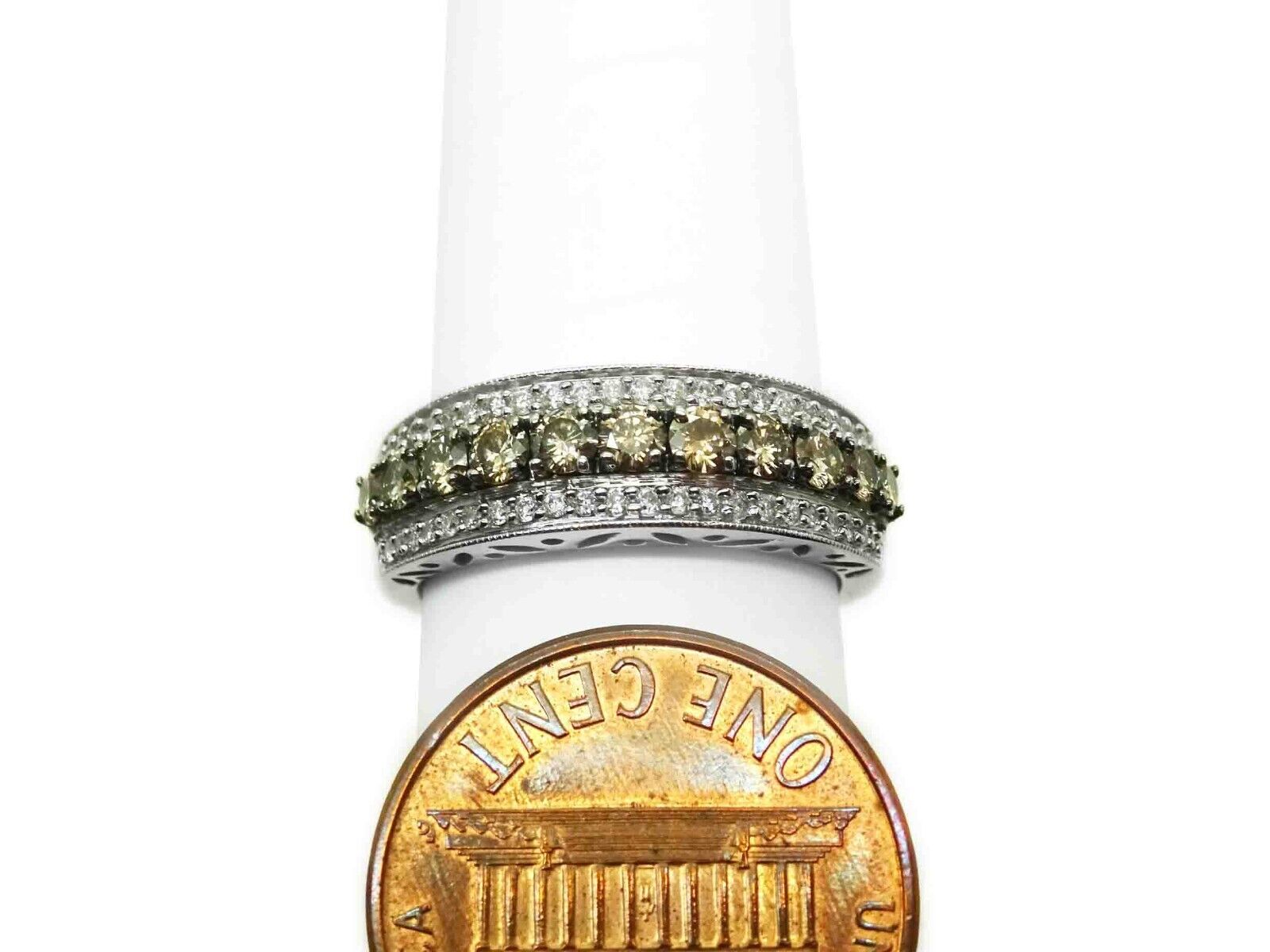 1.65ctw Chocolate & Vanilla Diamond Filigree Band Ring 14k White Gold Size 6.75