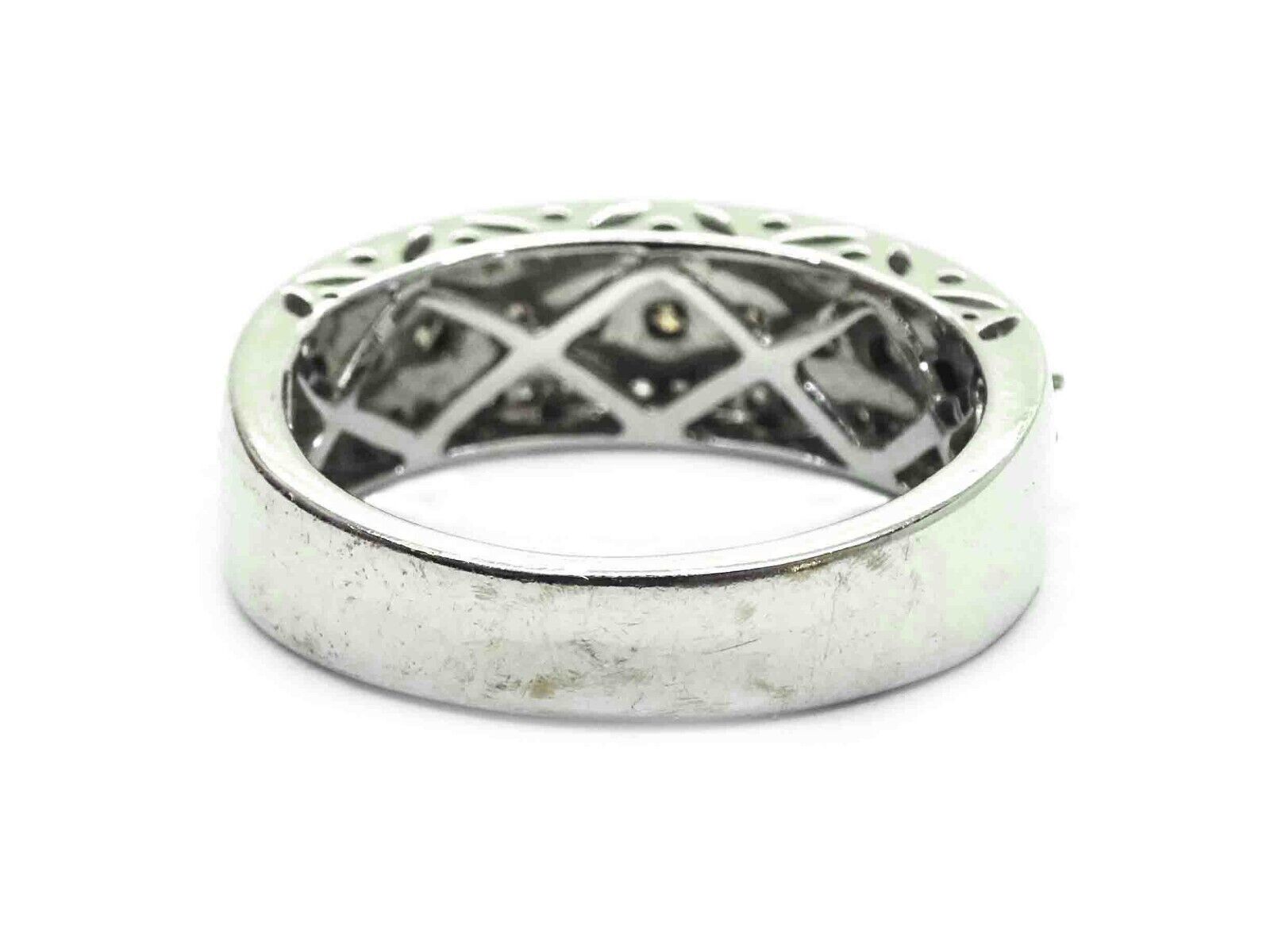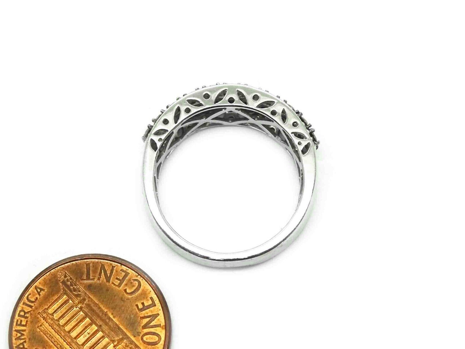 Lovely chocolate & vanilla diamond filigree band ring in 14k white gold.