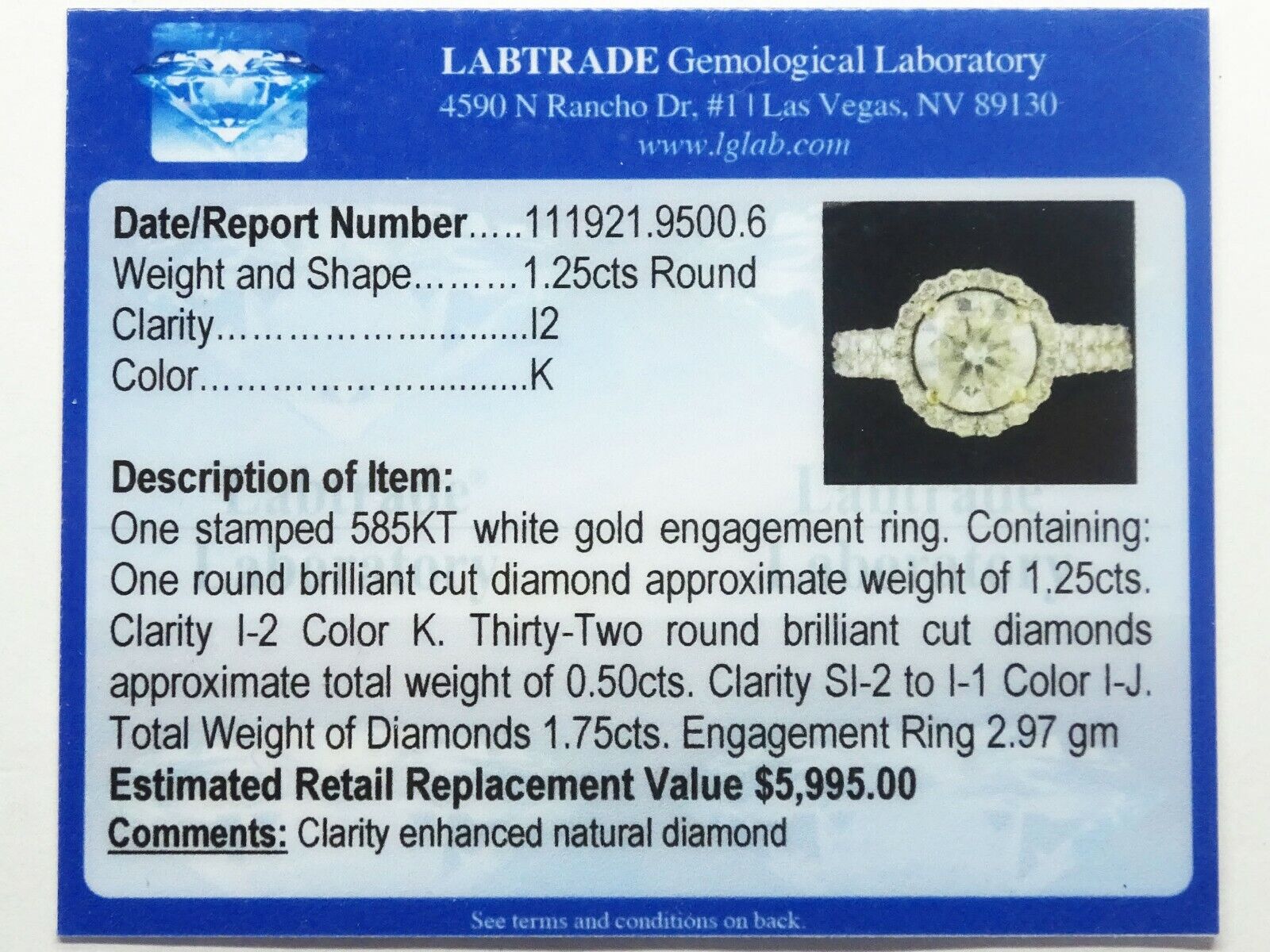 1.75ct tw Round Natural Diamond Halo Engagement Ring 14k White Gold Size 8.75