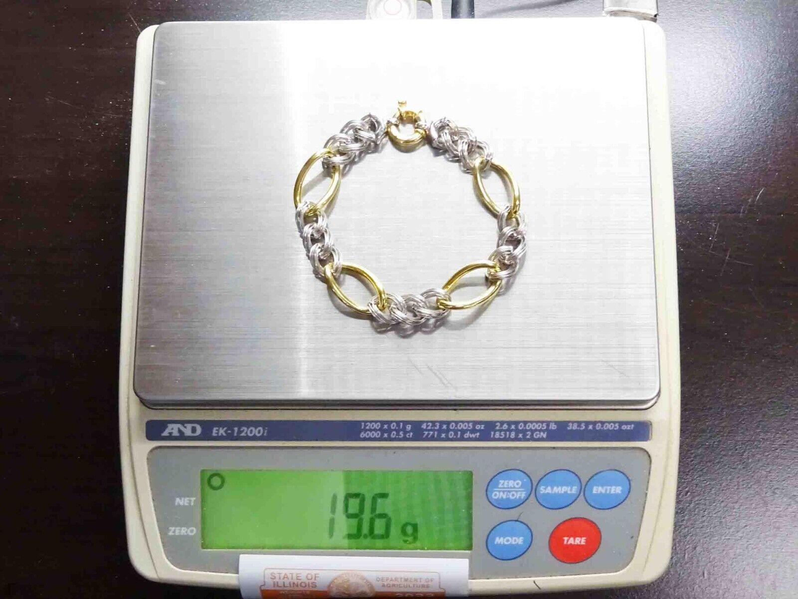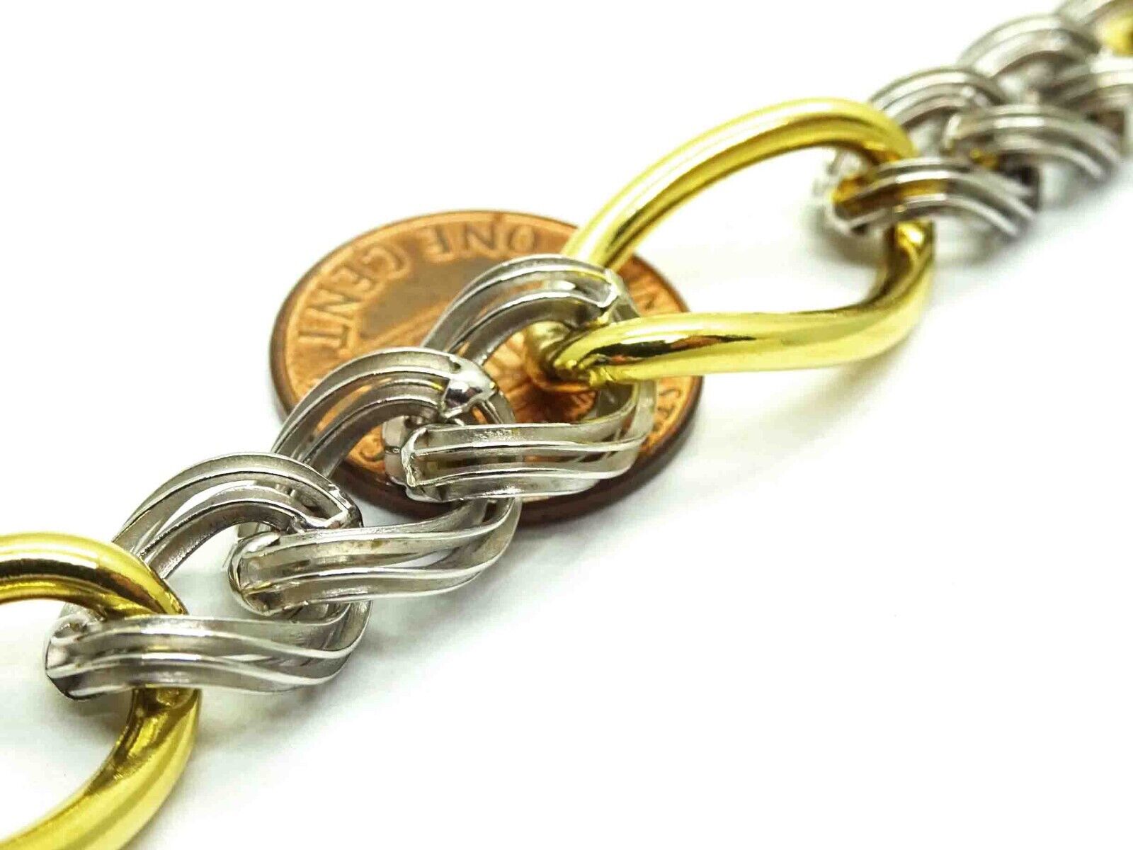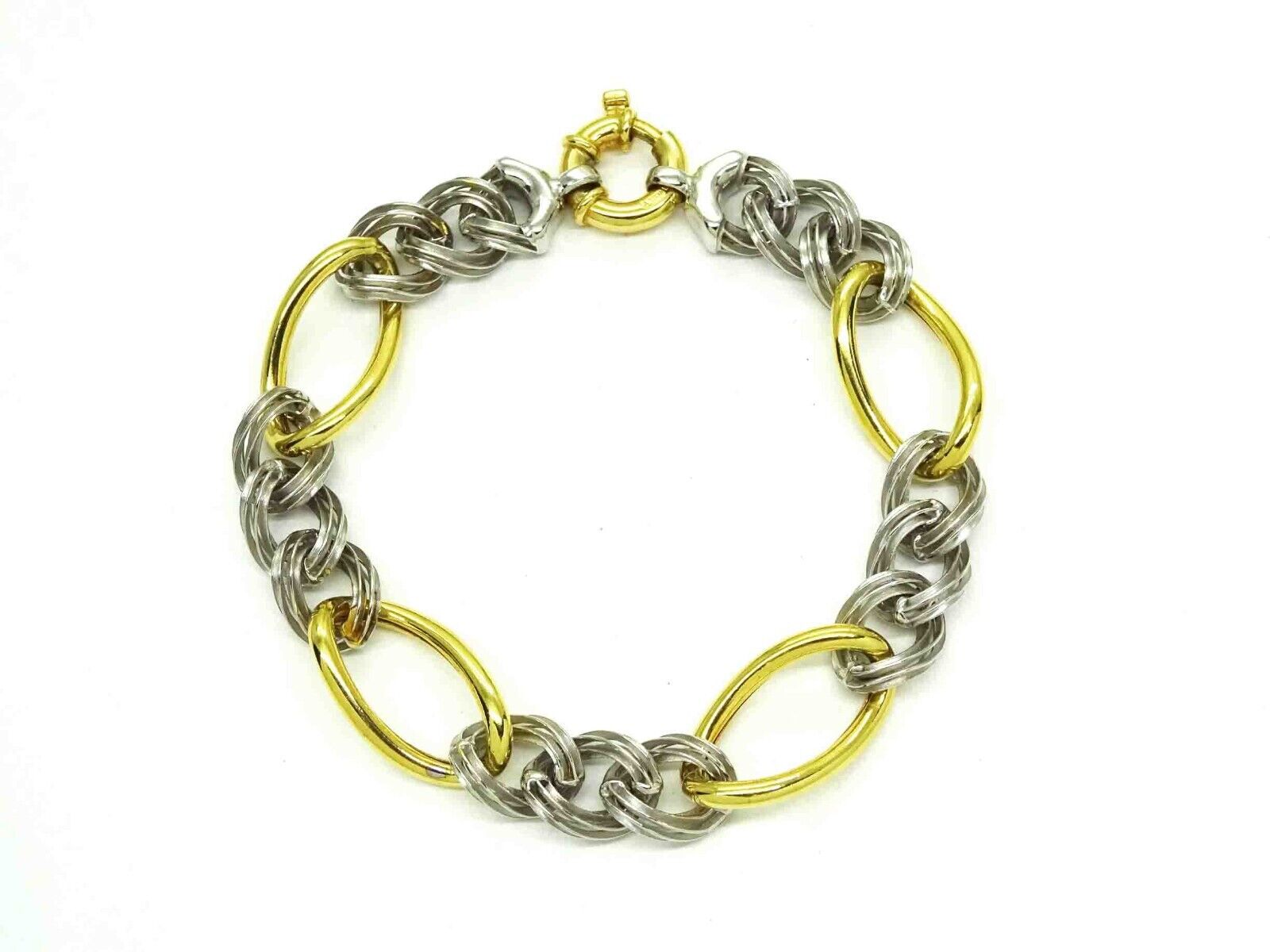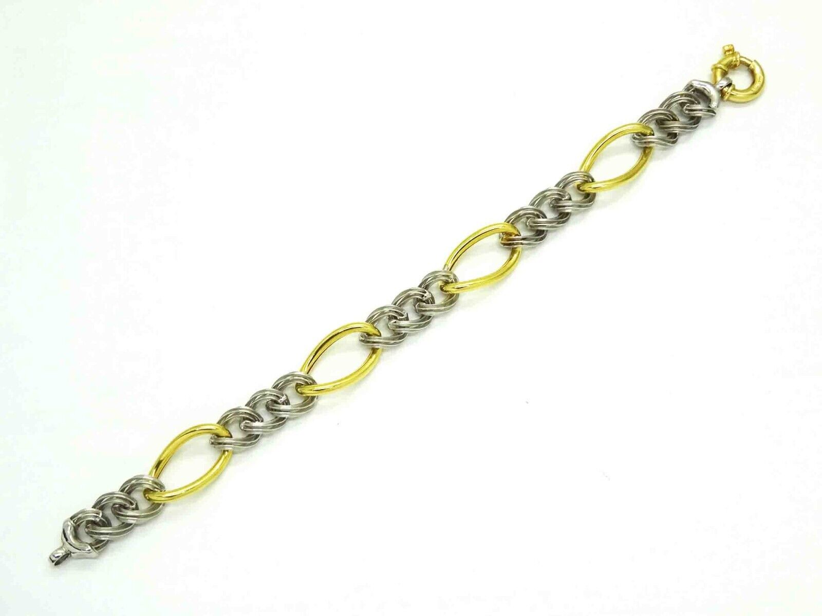 Men's Italian wide two-tone yellow/white gold 14k figaro style link bracelet.