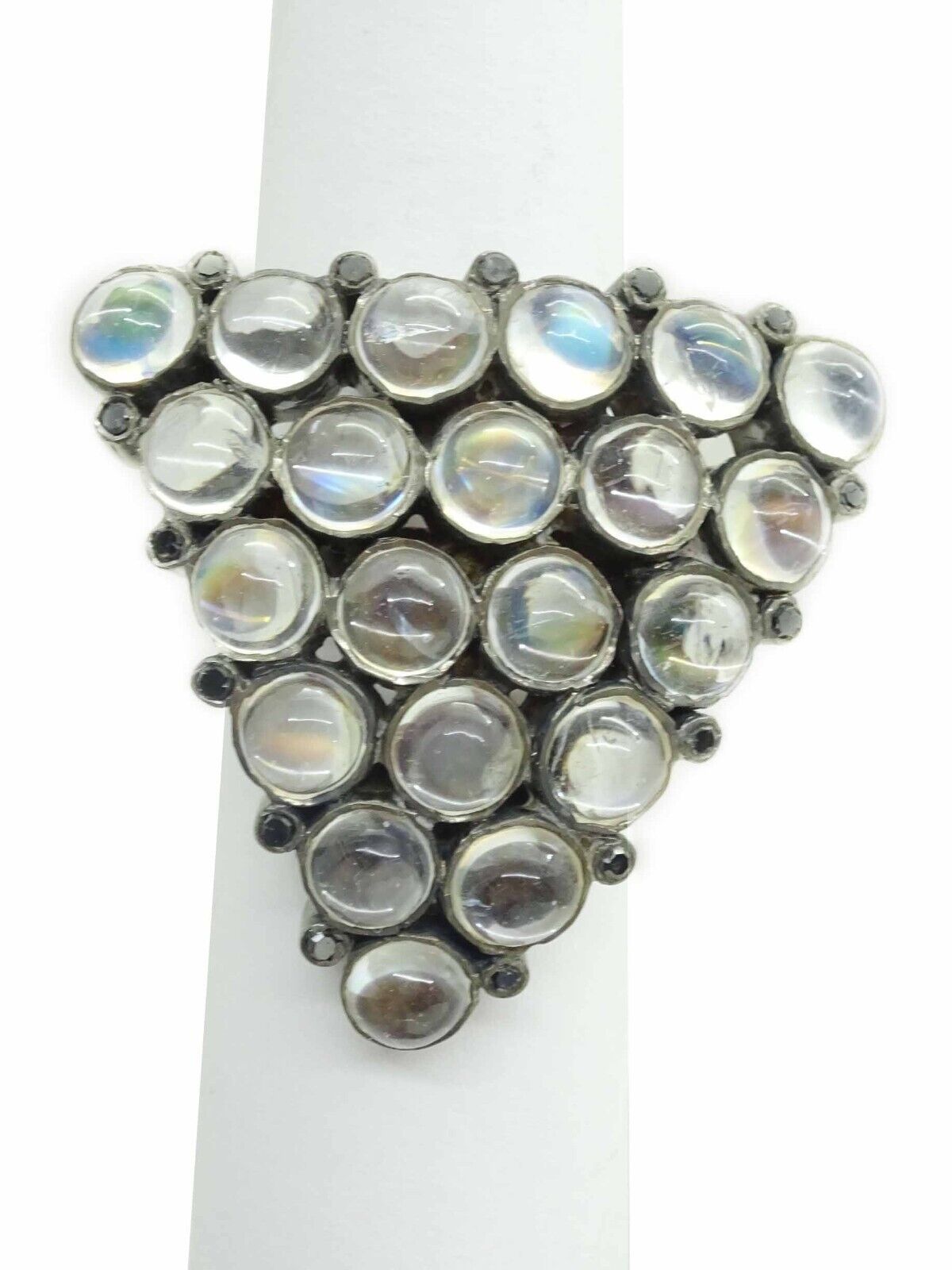 10.50ct tw Moonstone & Black Diamond Cocktail Ring Sterling Silver Size 6