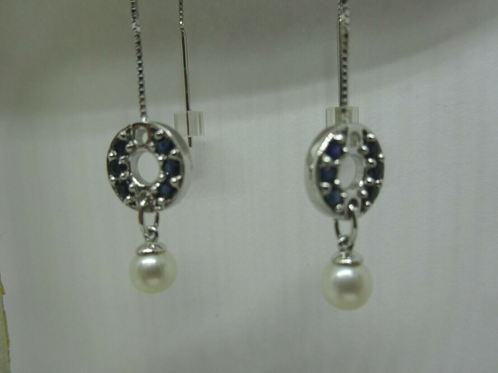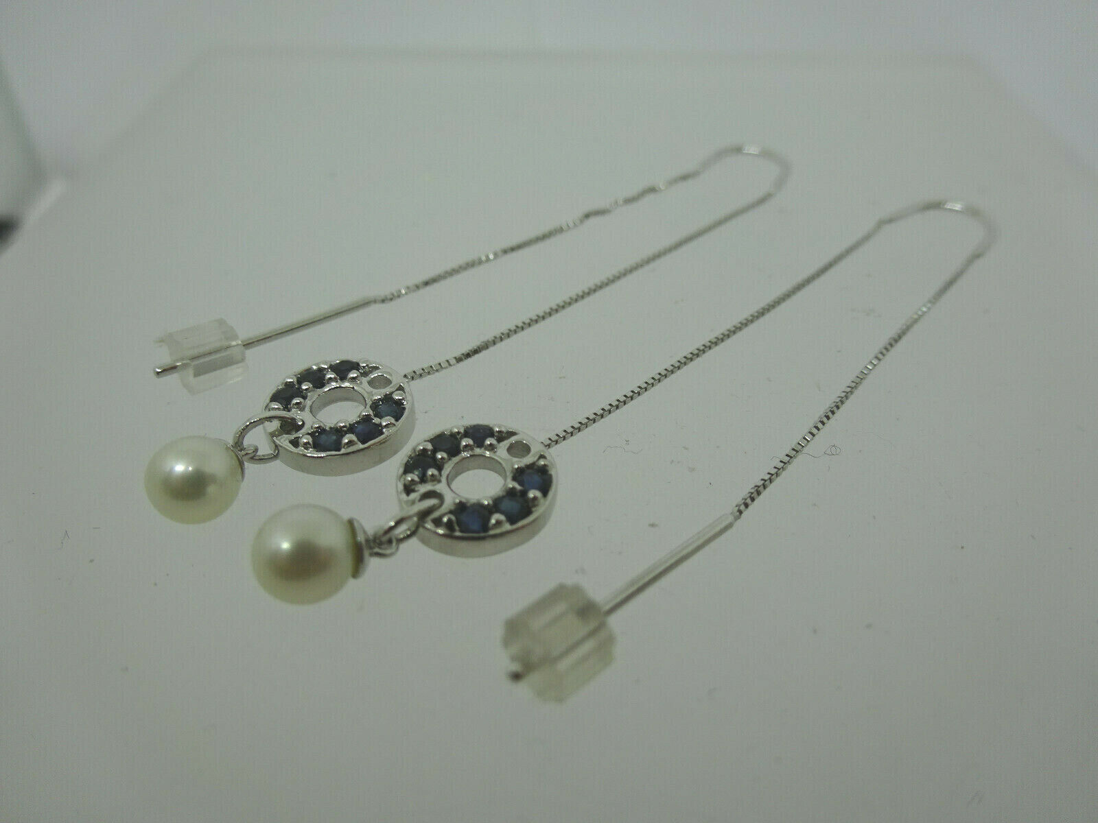 Natural Black Onyx & Pearl Threader Dangle Earrings 10k White Gold