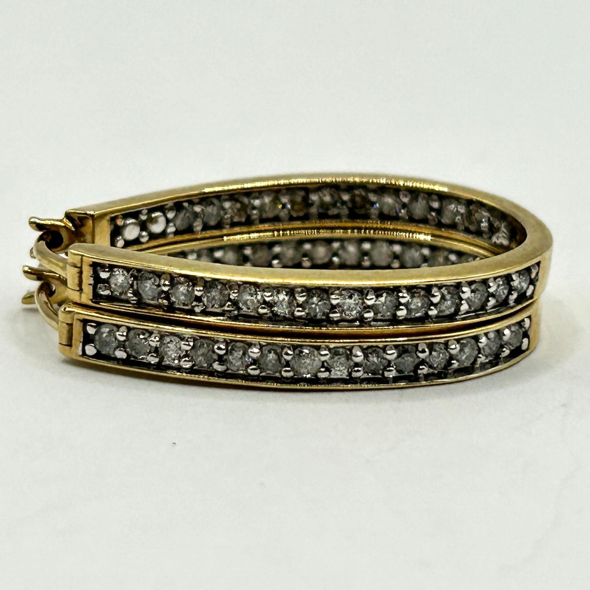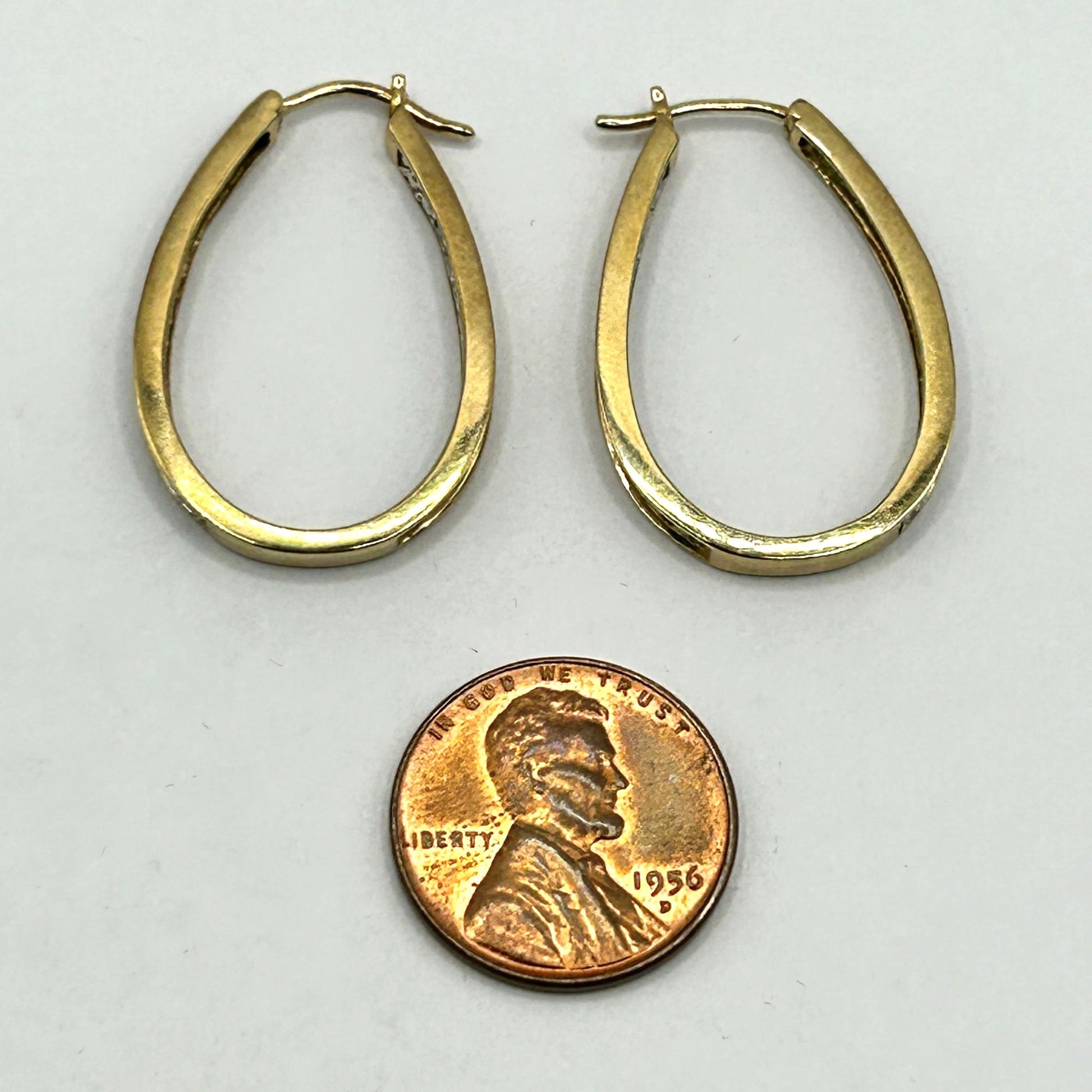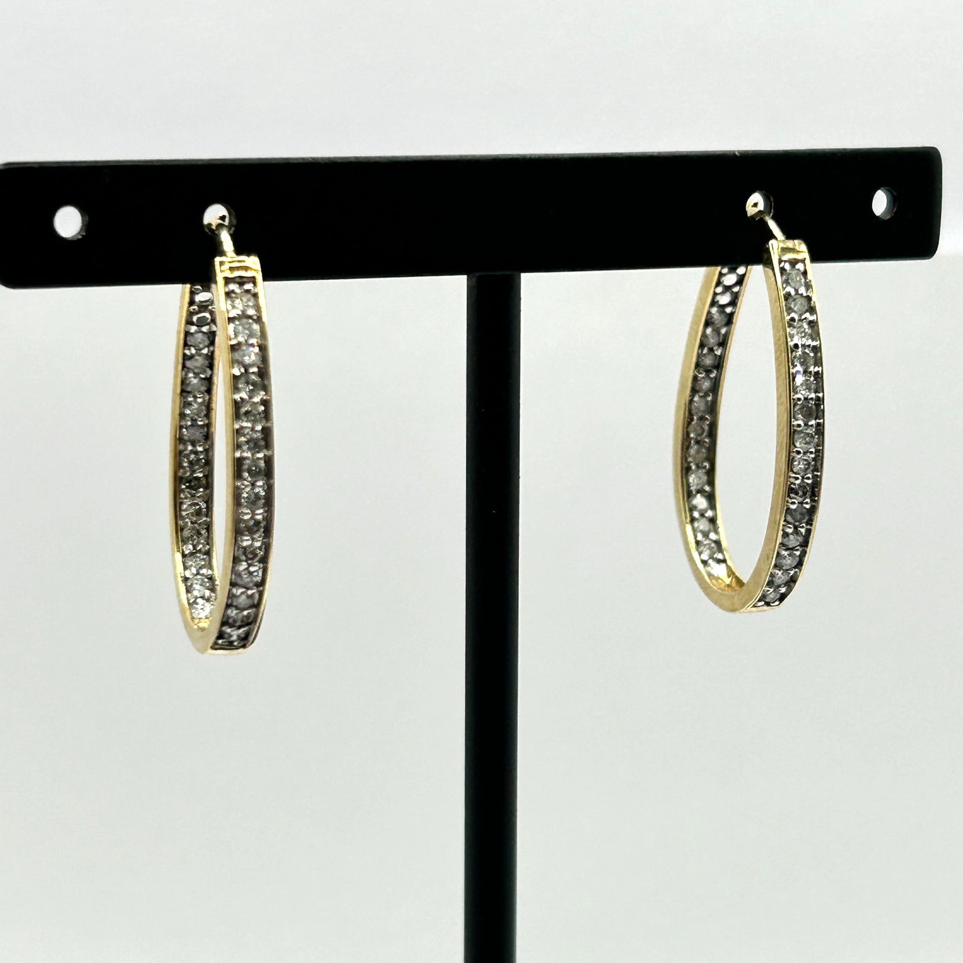 10k Yellow Gold & Natural Diamond Inside Out Oval Hoop Earrings