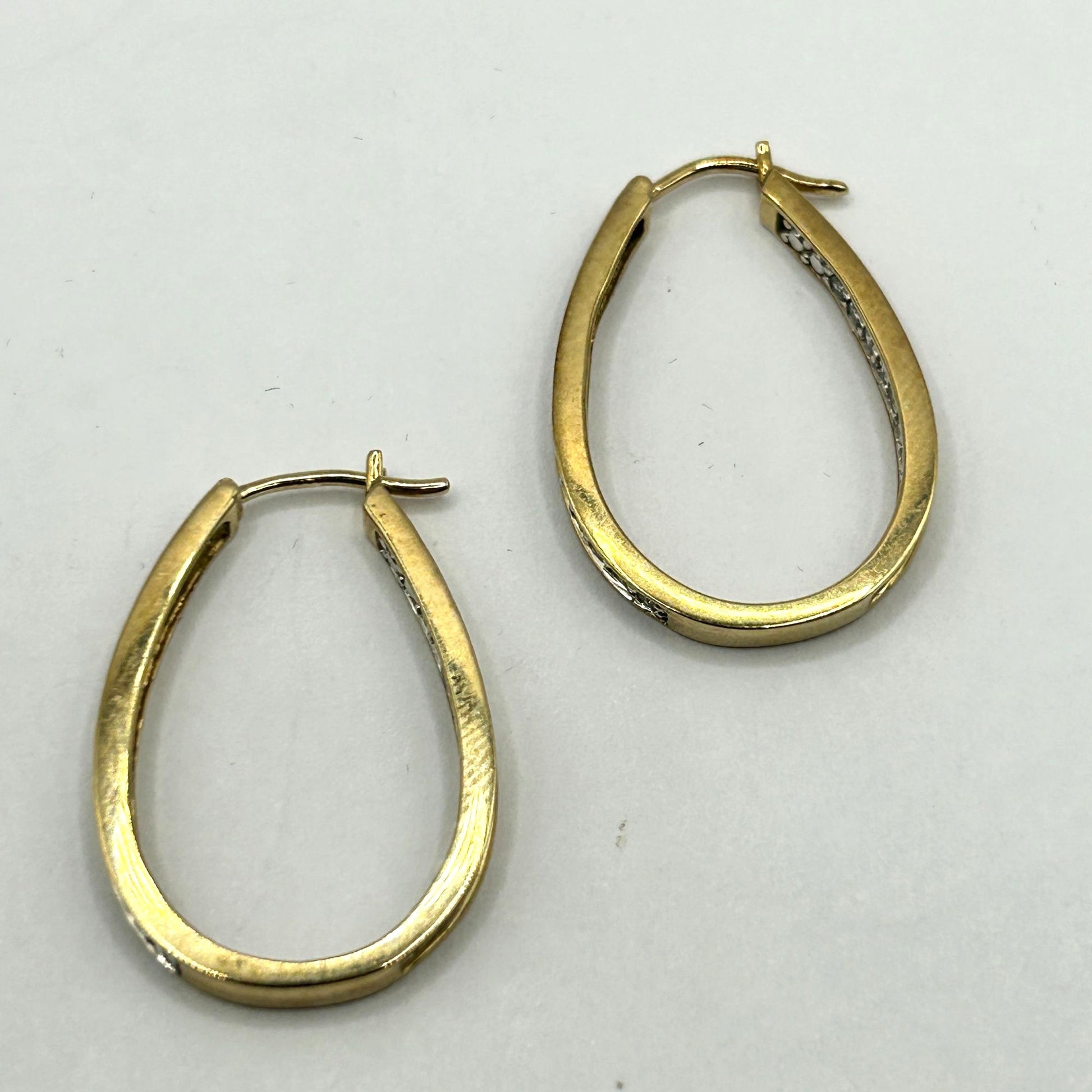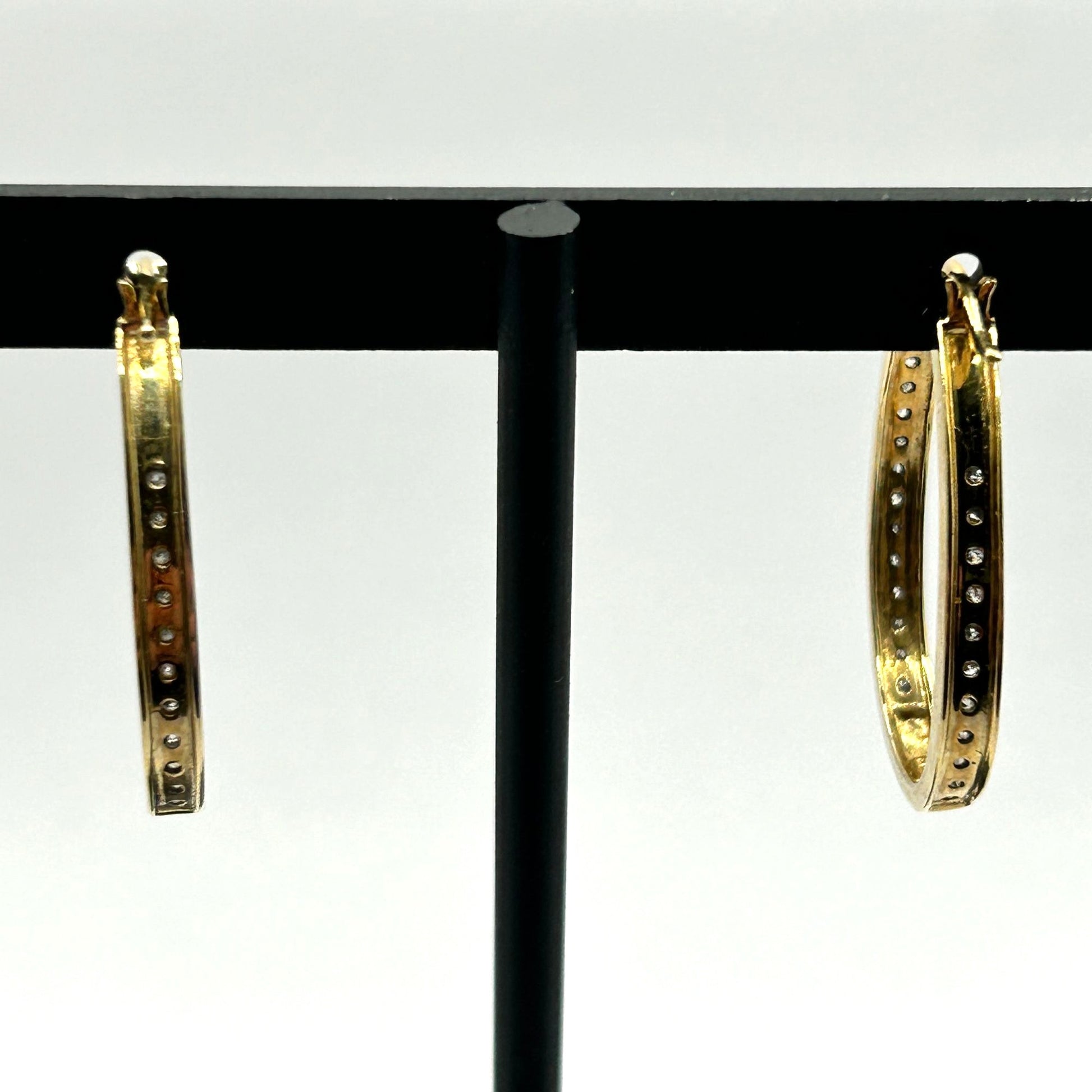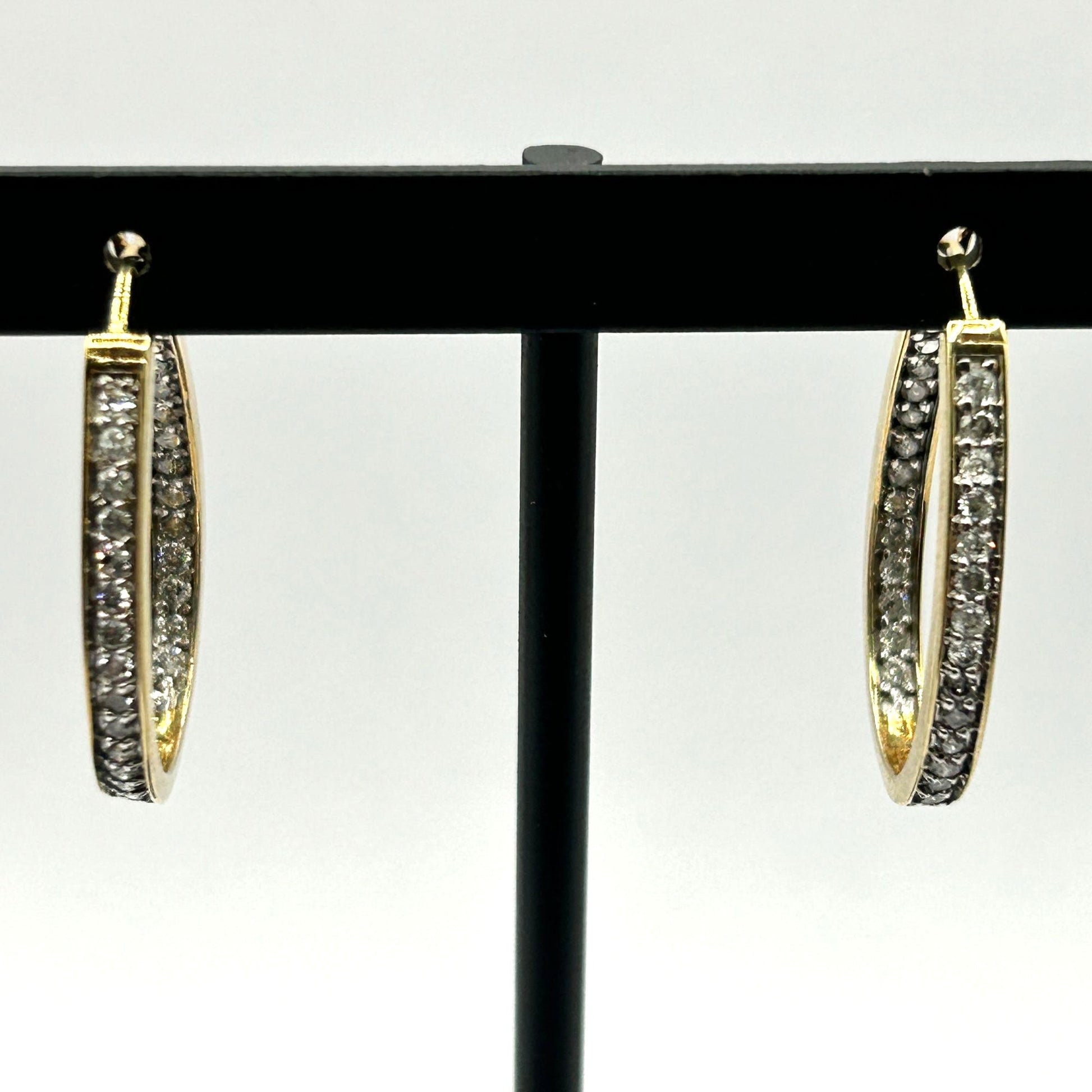 10k Yellow Gold & Natural Diamond Inside Out Oval Hoop Earrings