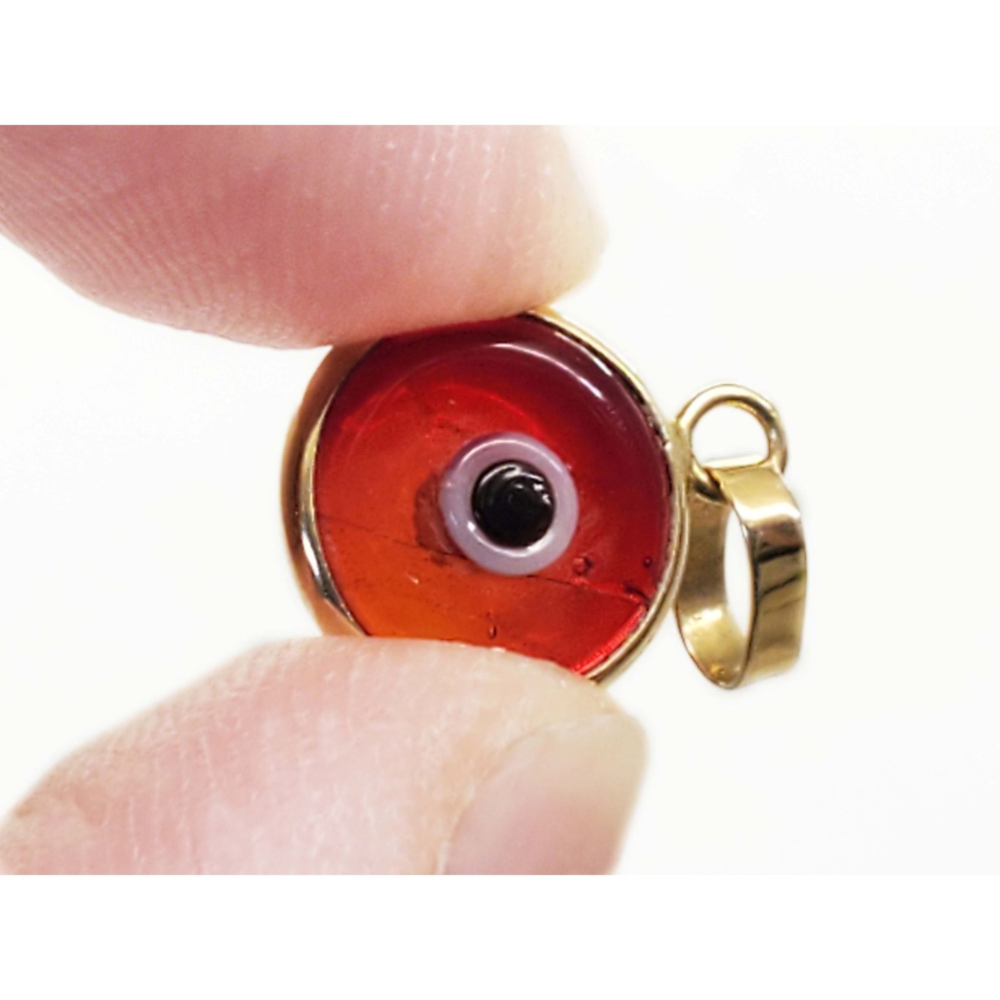 11mm Red Evil Eye Good Luck Charm 18k Gold