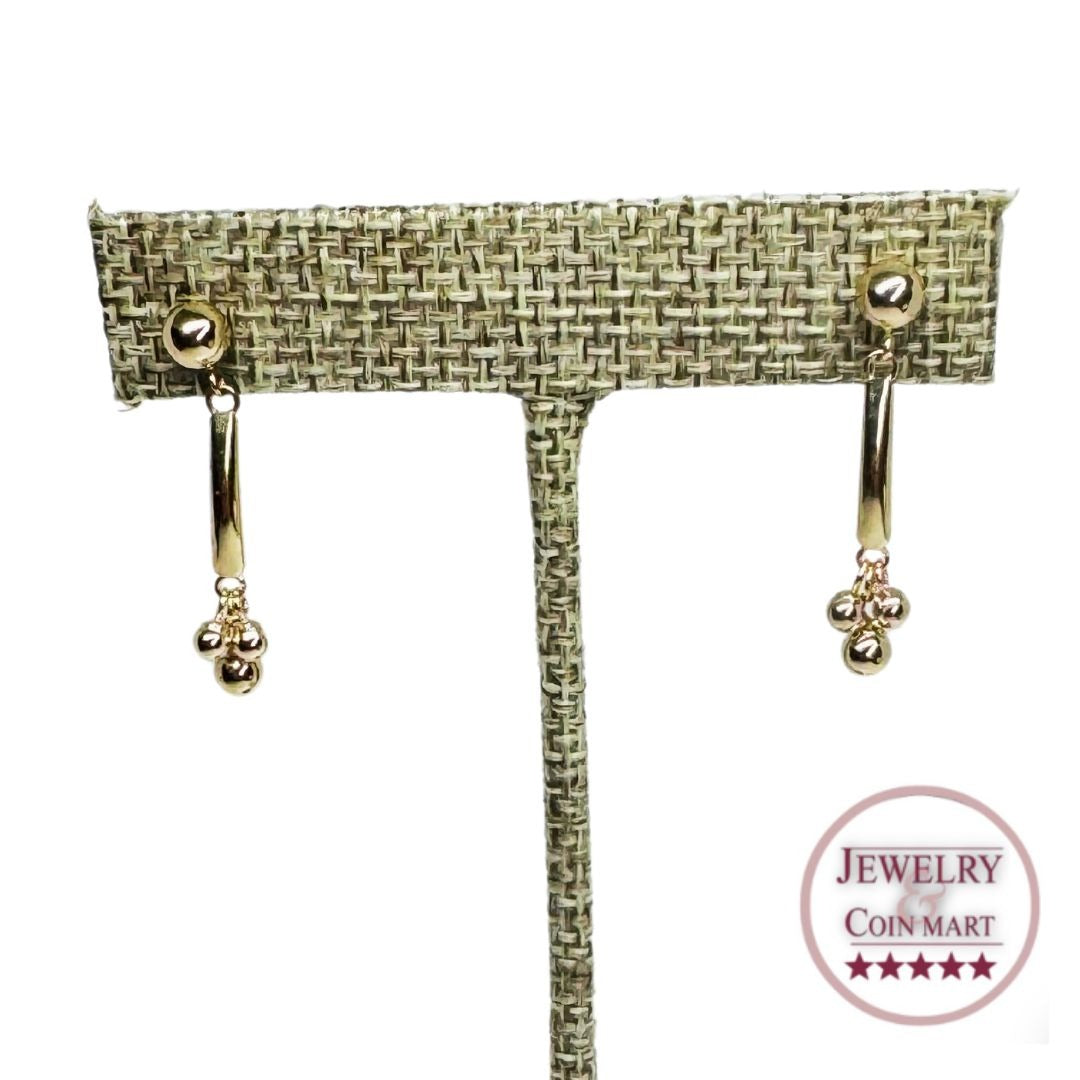 14K Gold Ball Dangle Drop Earrings Statement