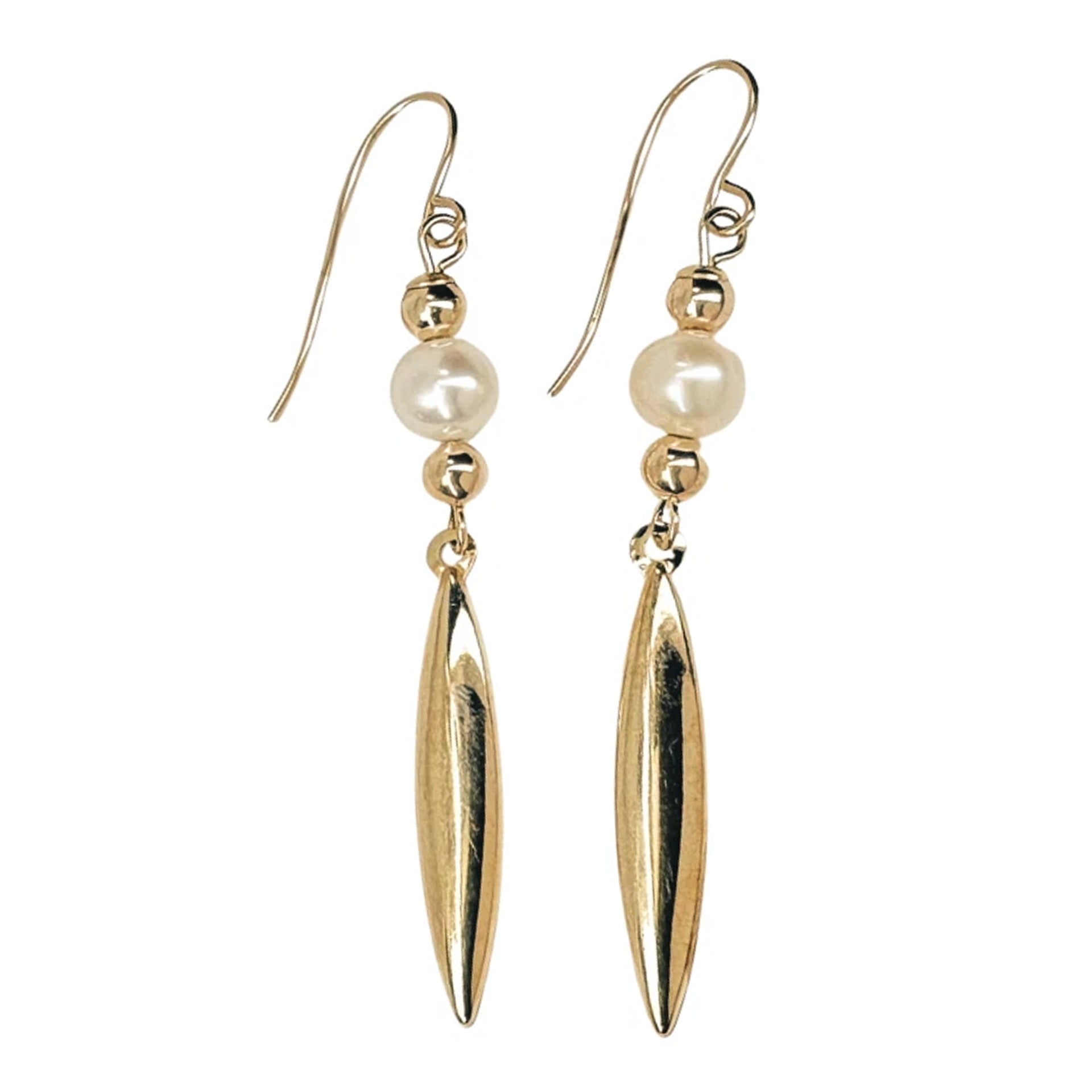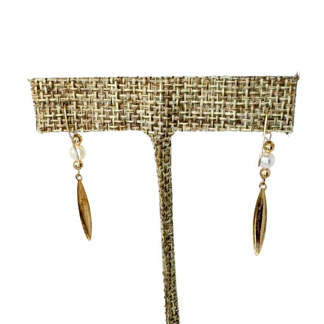 14K Gold Bud Pearl Dangle Ear Wire Earrings