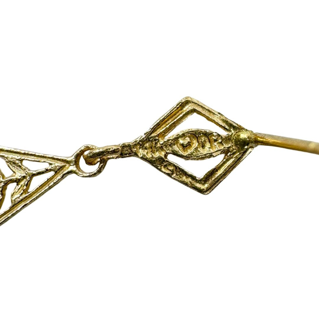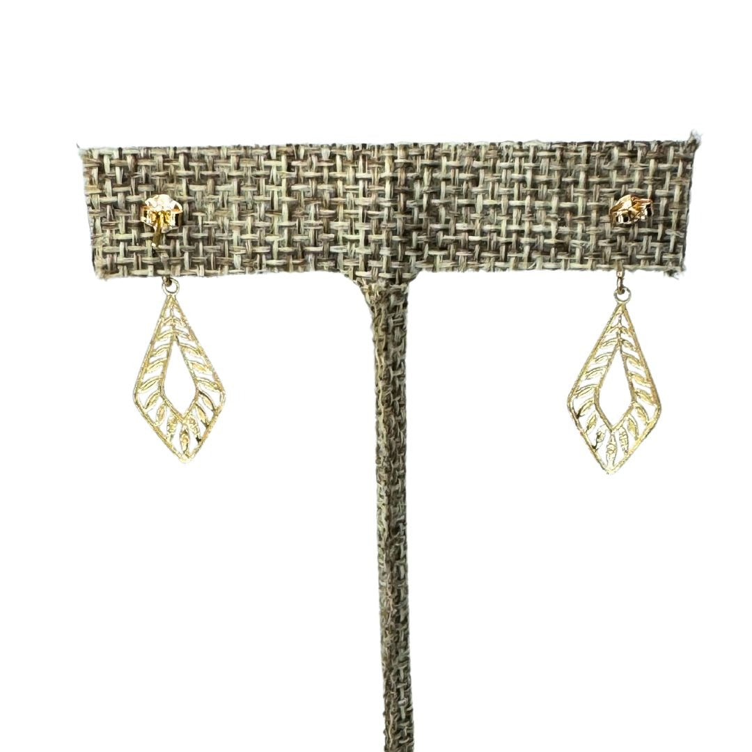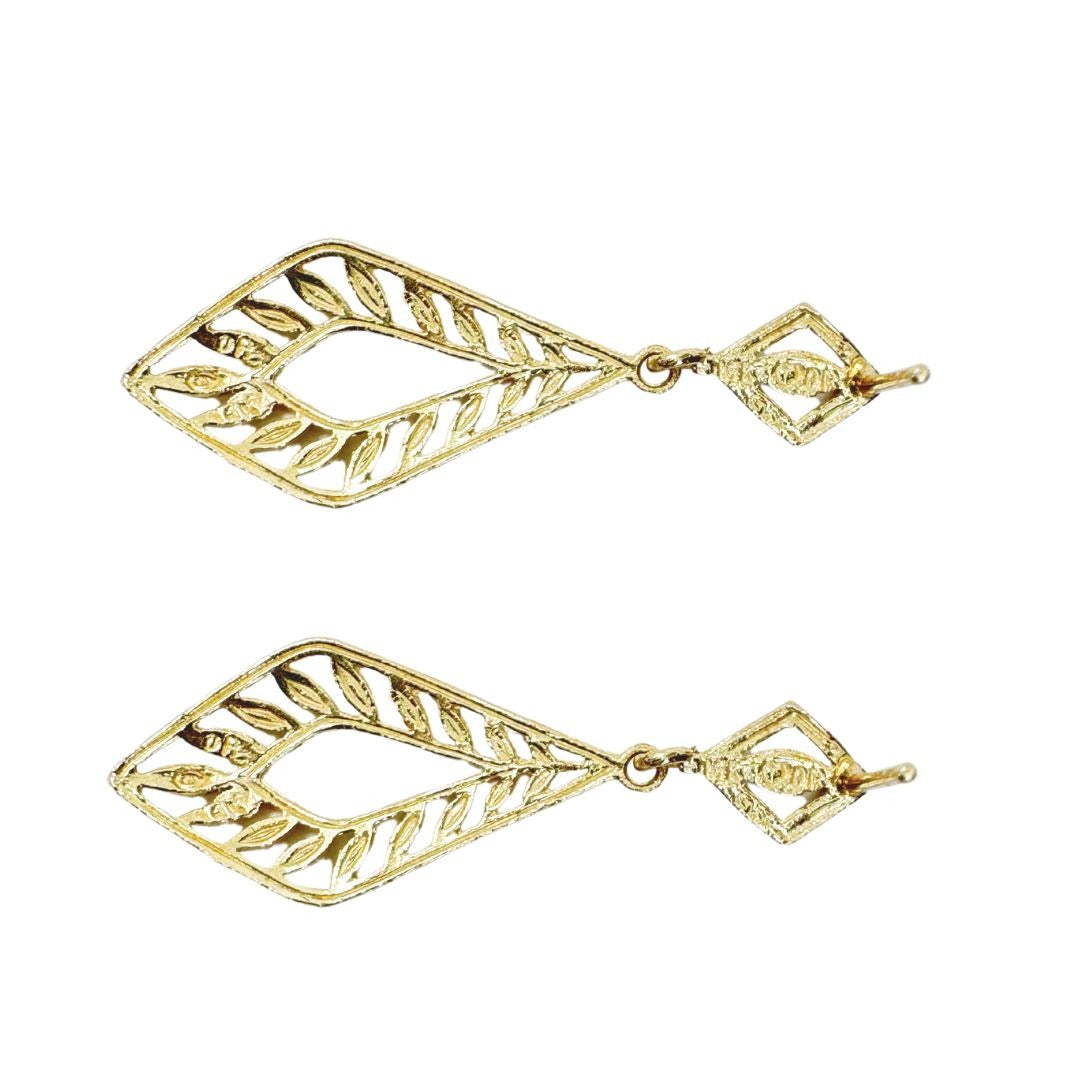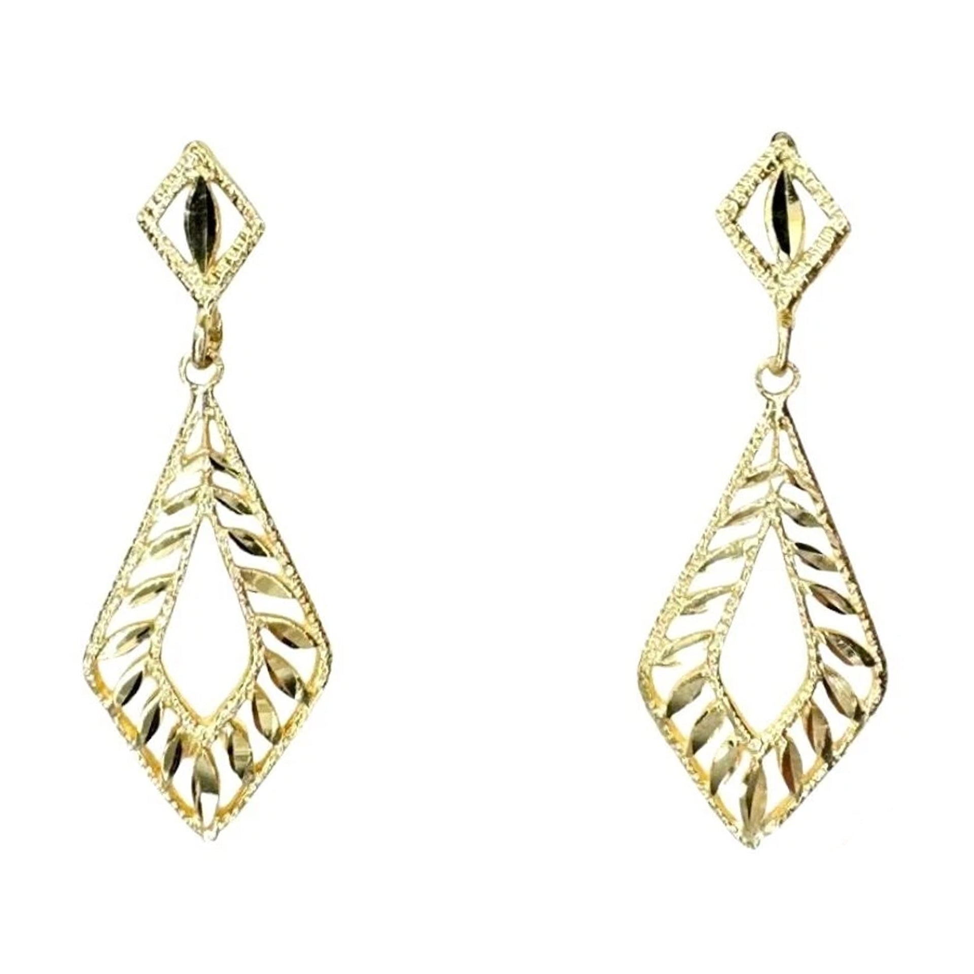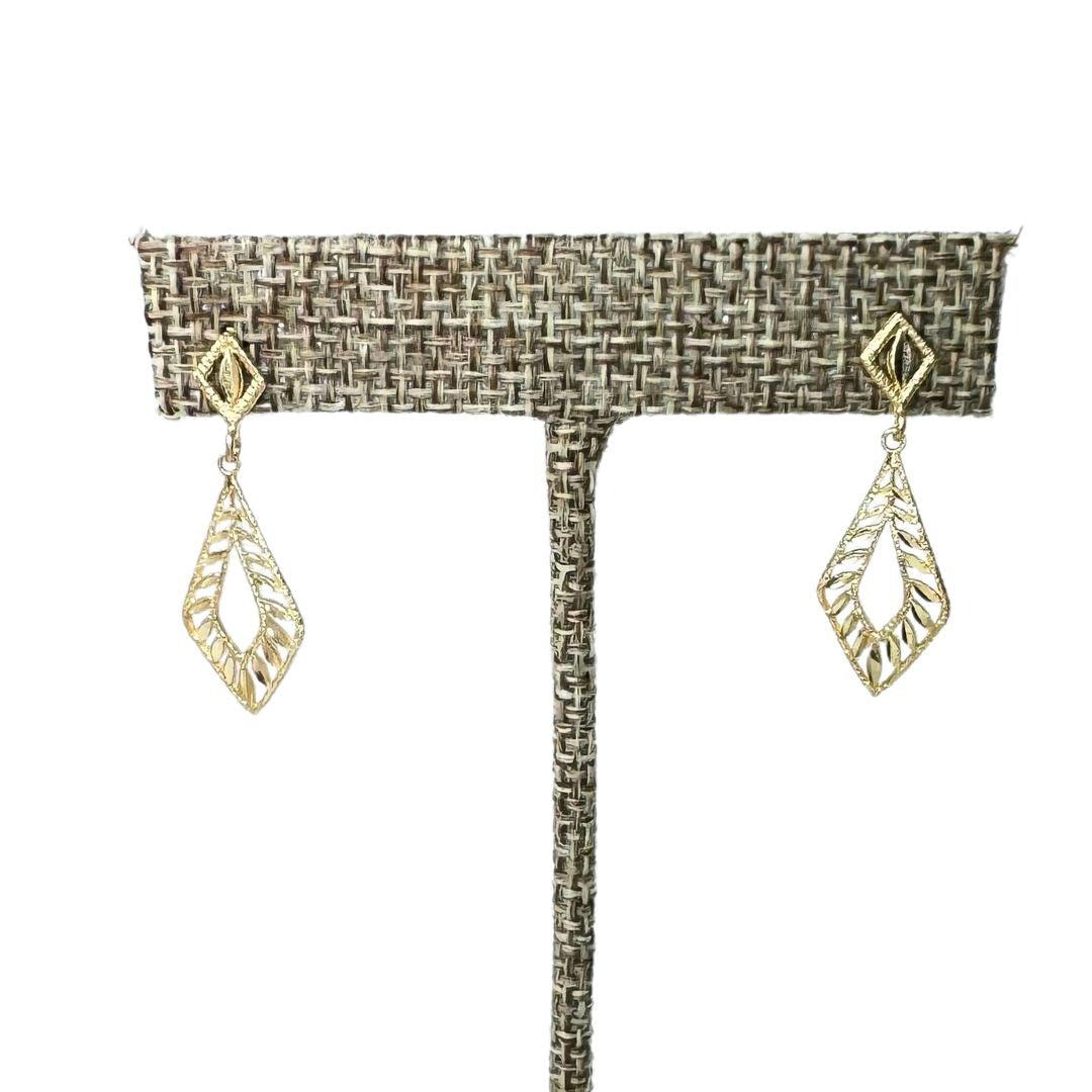 14K Gold Filigree Diamond Cut Dangle Drop Earrings