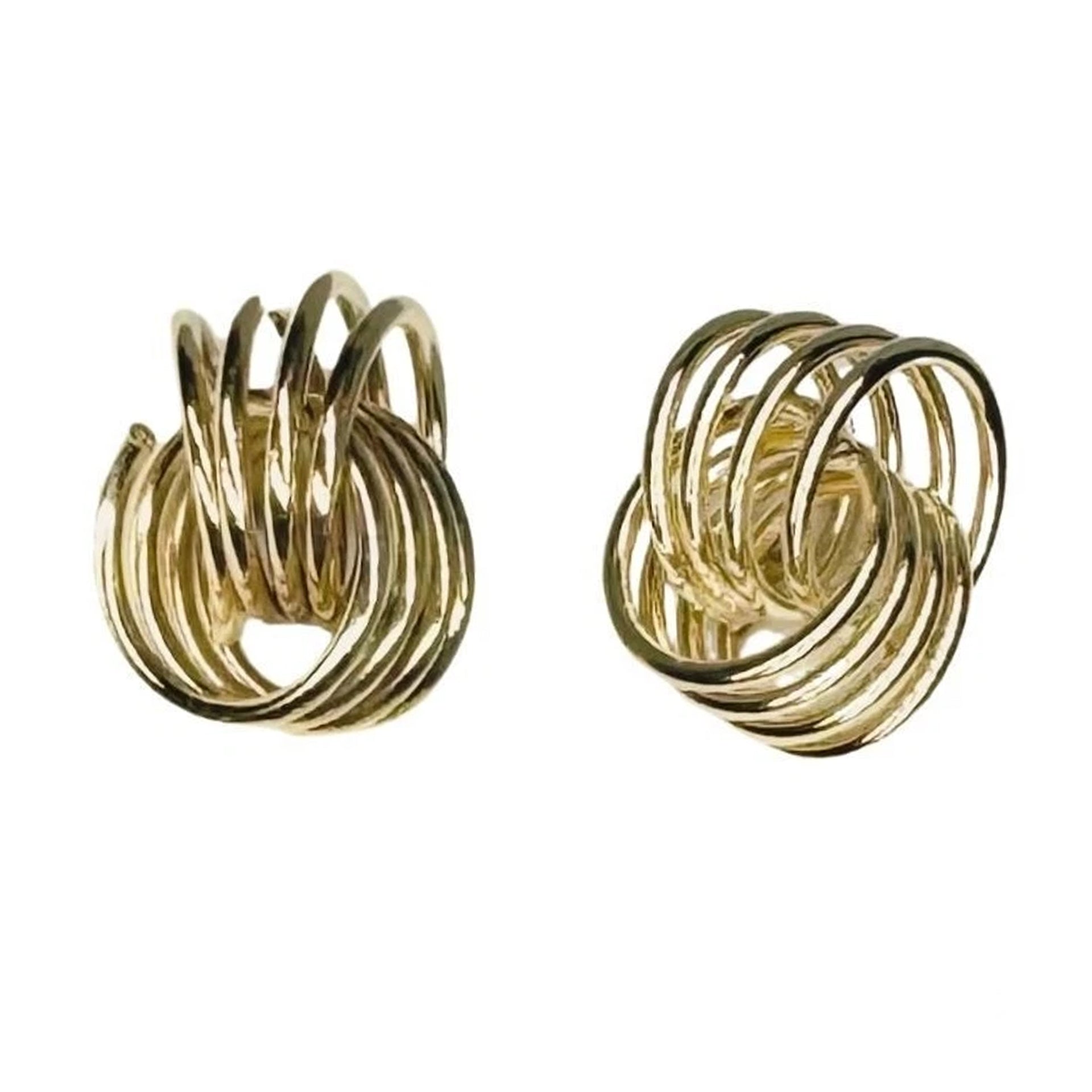 14k Gold Twisted Knot Spiral Circle Stud Earrings