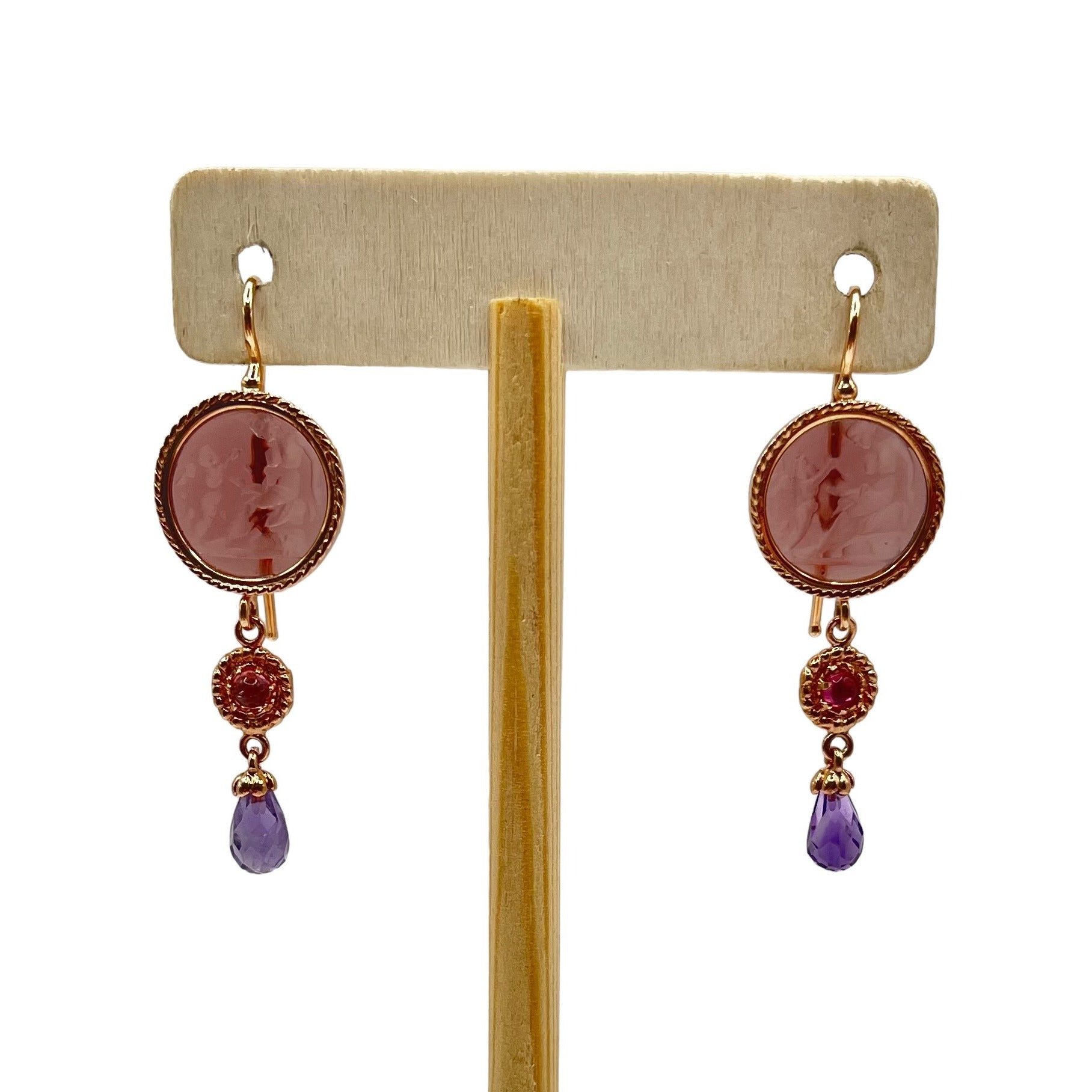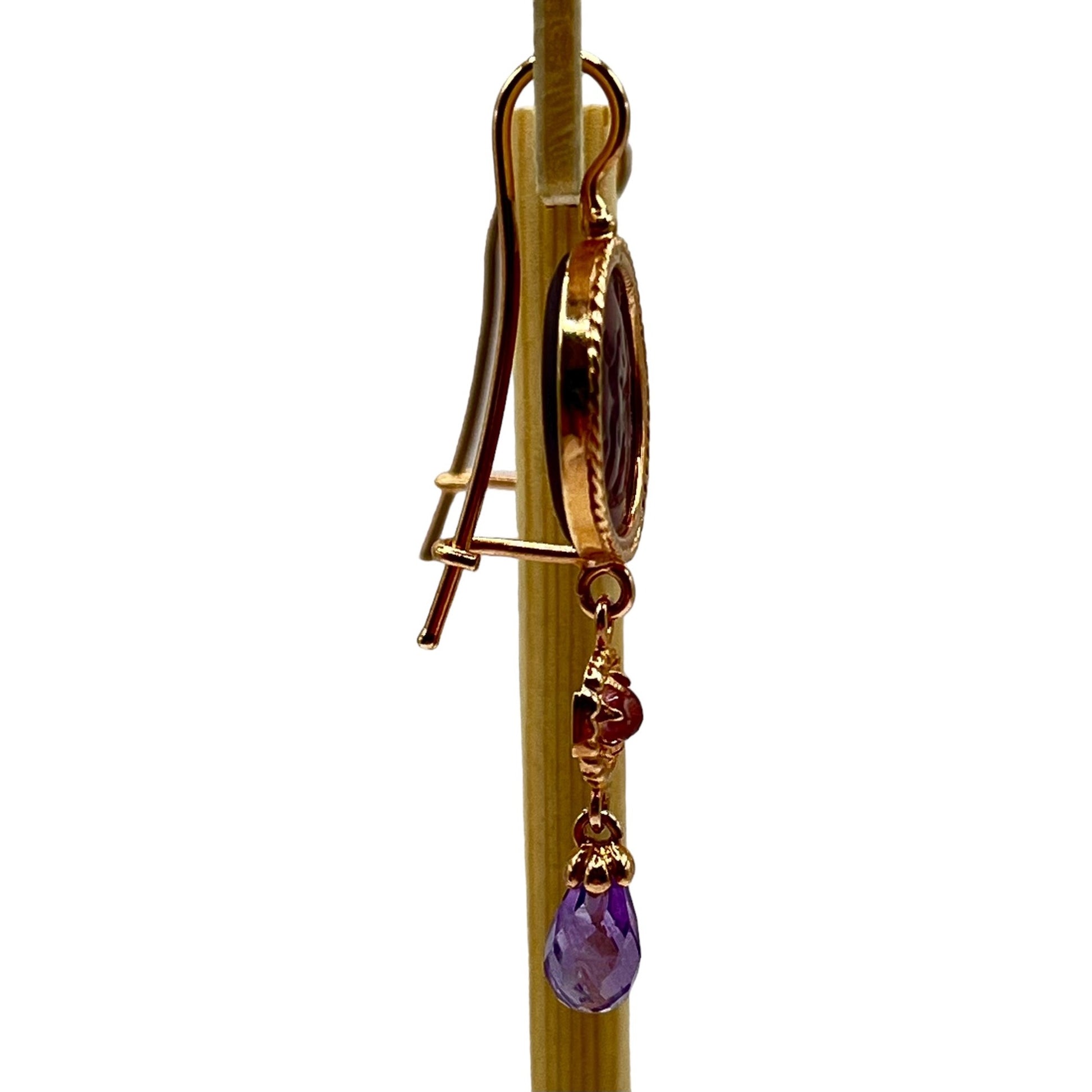 14k Rose Gold Tagliamonte Venetian Cameo Intaglio Dangle Drop Earrings Amethyst