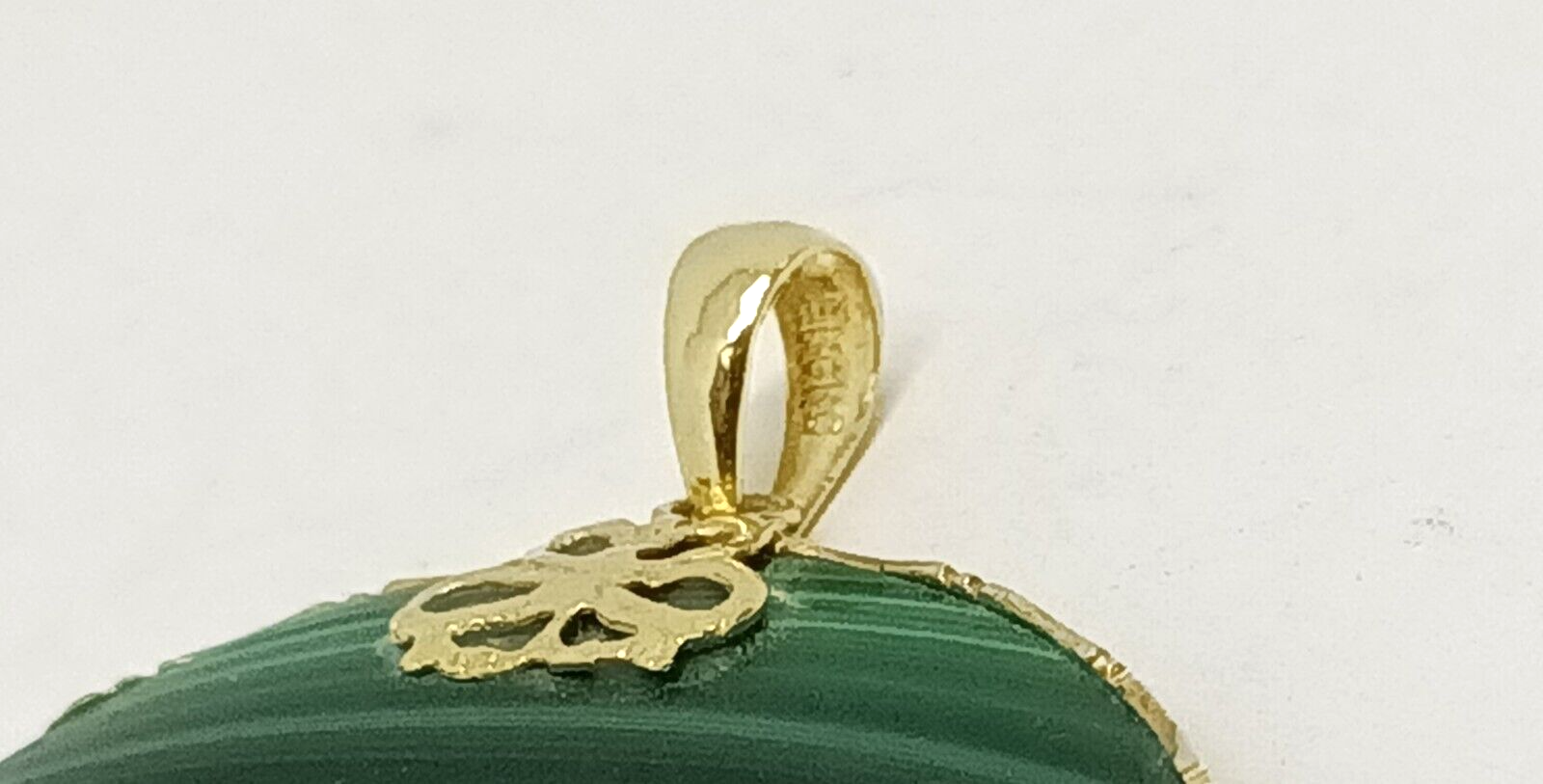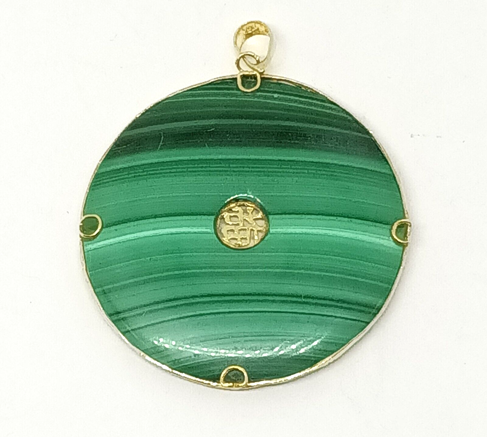 Beautiful 14k yellow gold malachite good fortune butterfly disc/donut pendant.