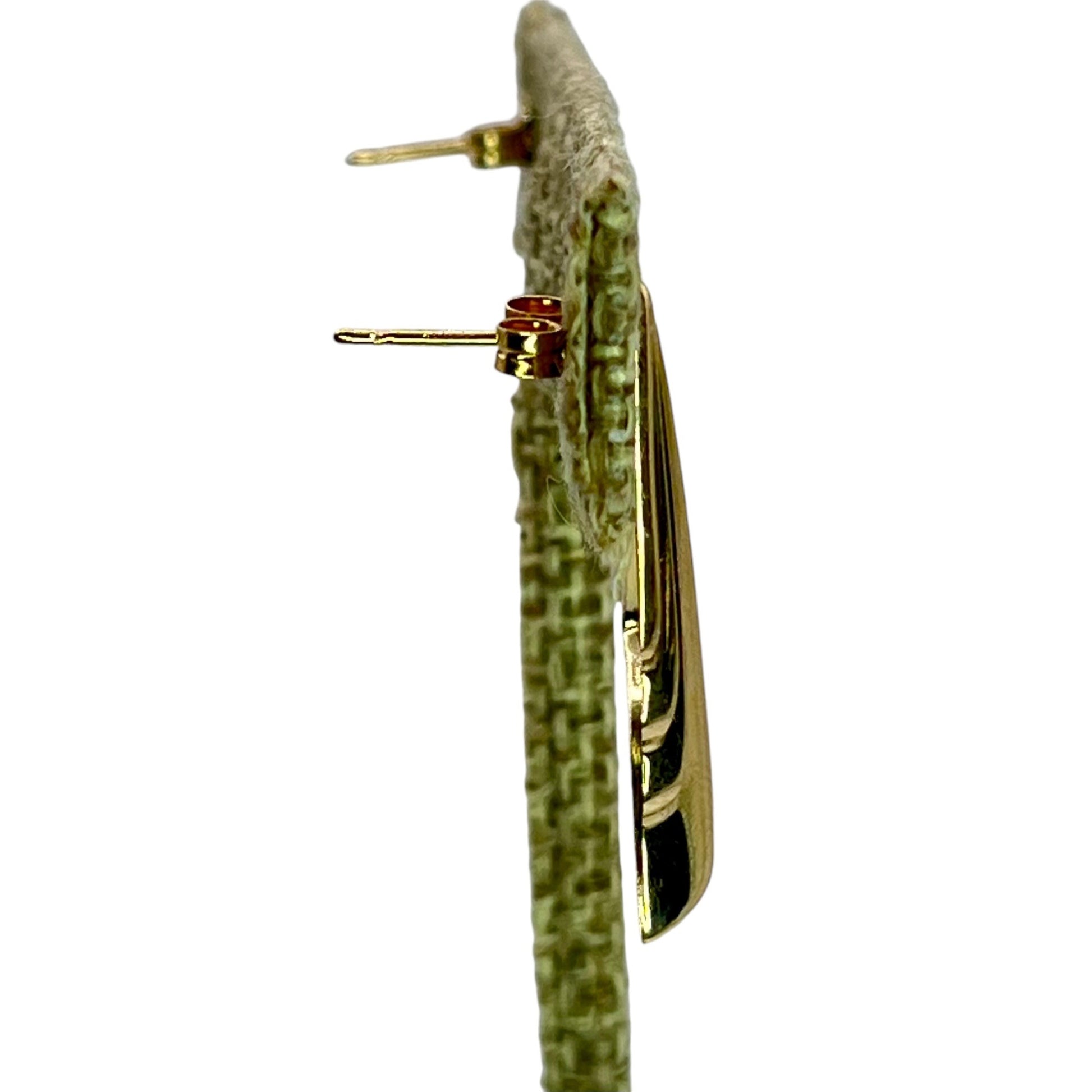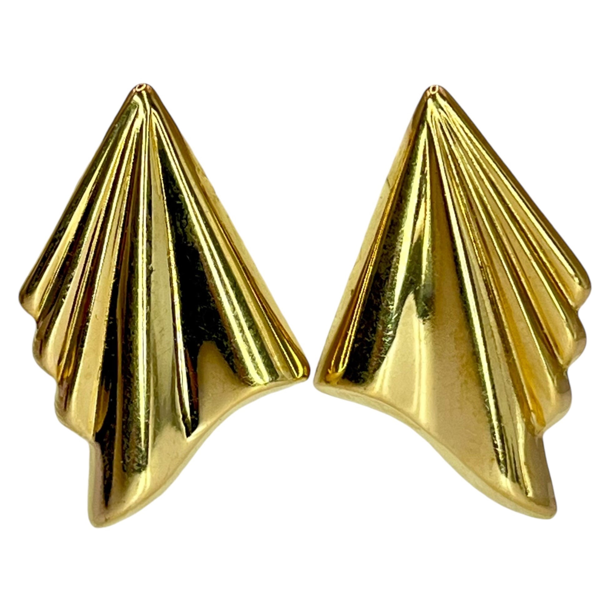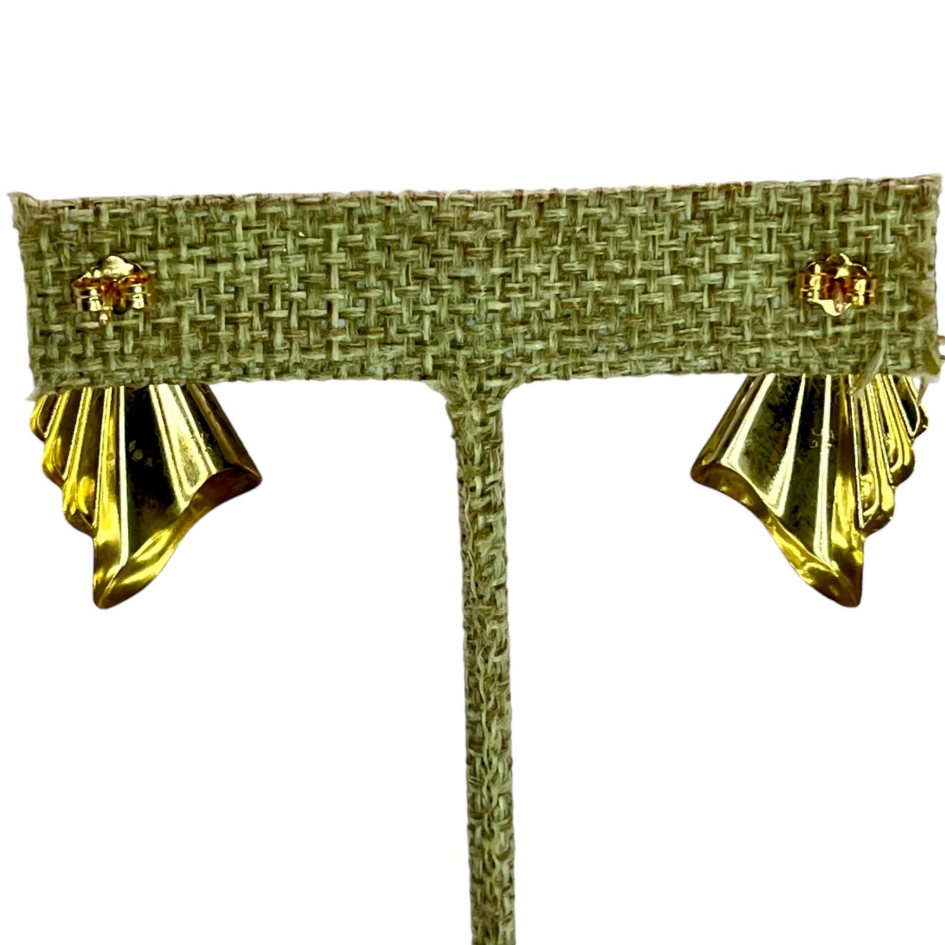 14K Yellow Gold Modernist Earrings Geometric Lightweight Stud Drop Statement