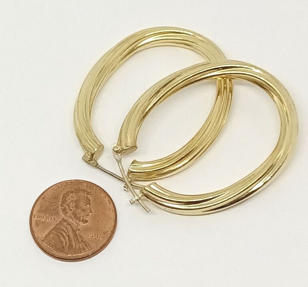 14k Yellow Gold Shrimp Hoop Earrings 10.7grams, 1.5'' Long, 1.25'' Wide