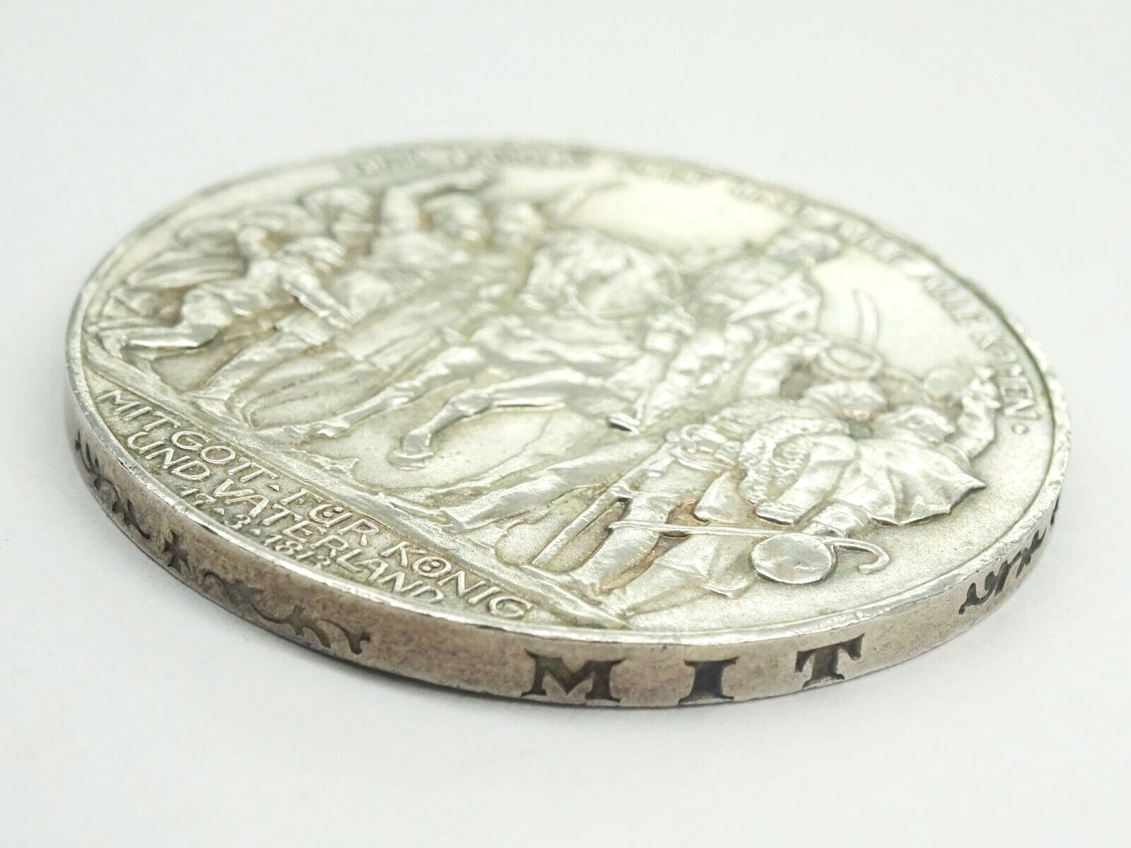 Reverse features a figure on horseback, surrounded by cheering people. Lettering reads "Der konig rief und alle alle kamen", "Mit gott fur konig und vaterland 17-3-1813".