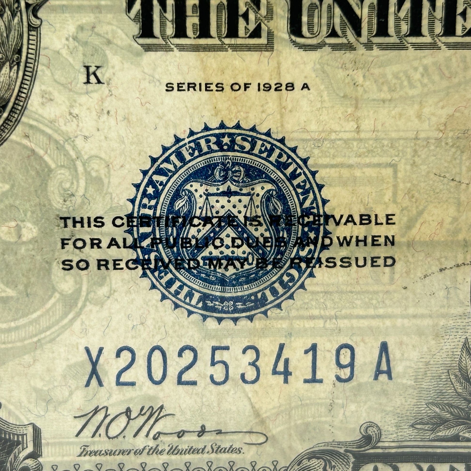 Marked: Series of 1928 A - K1621 - 2252