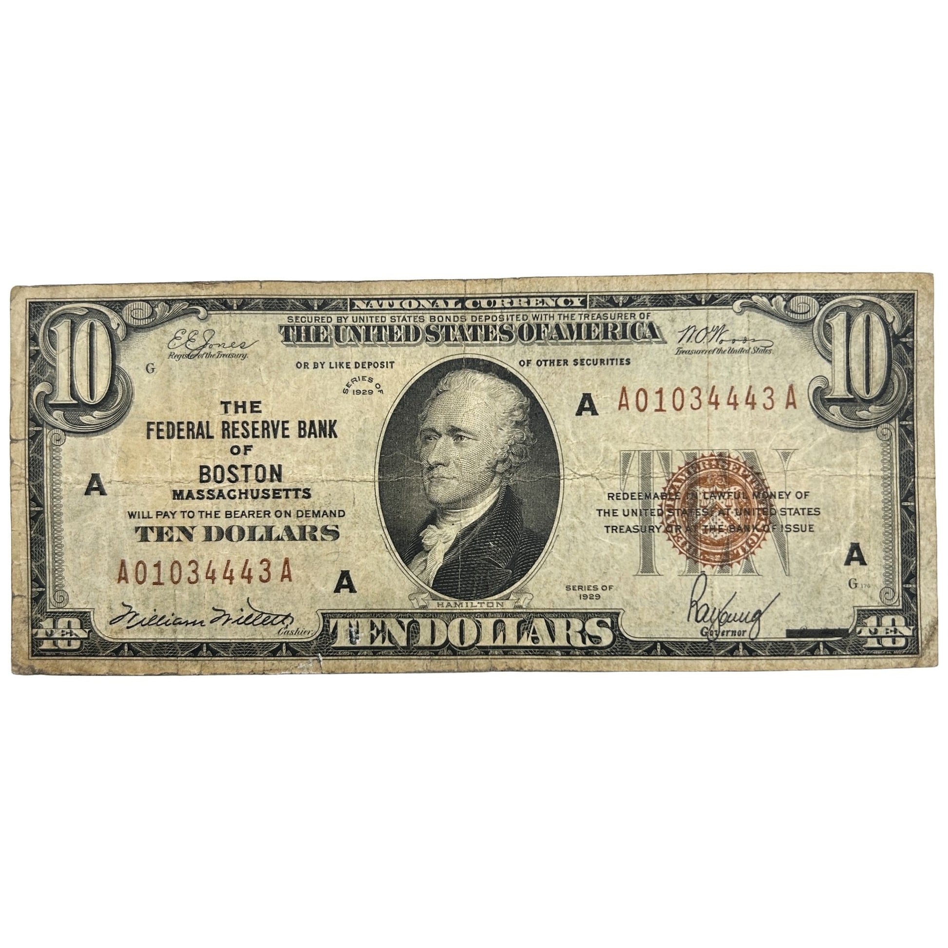 1929 $10 National Currency - Federal Reserve Bank of Boston Massachusetts