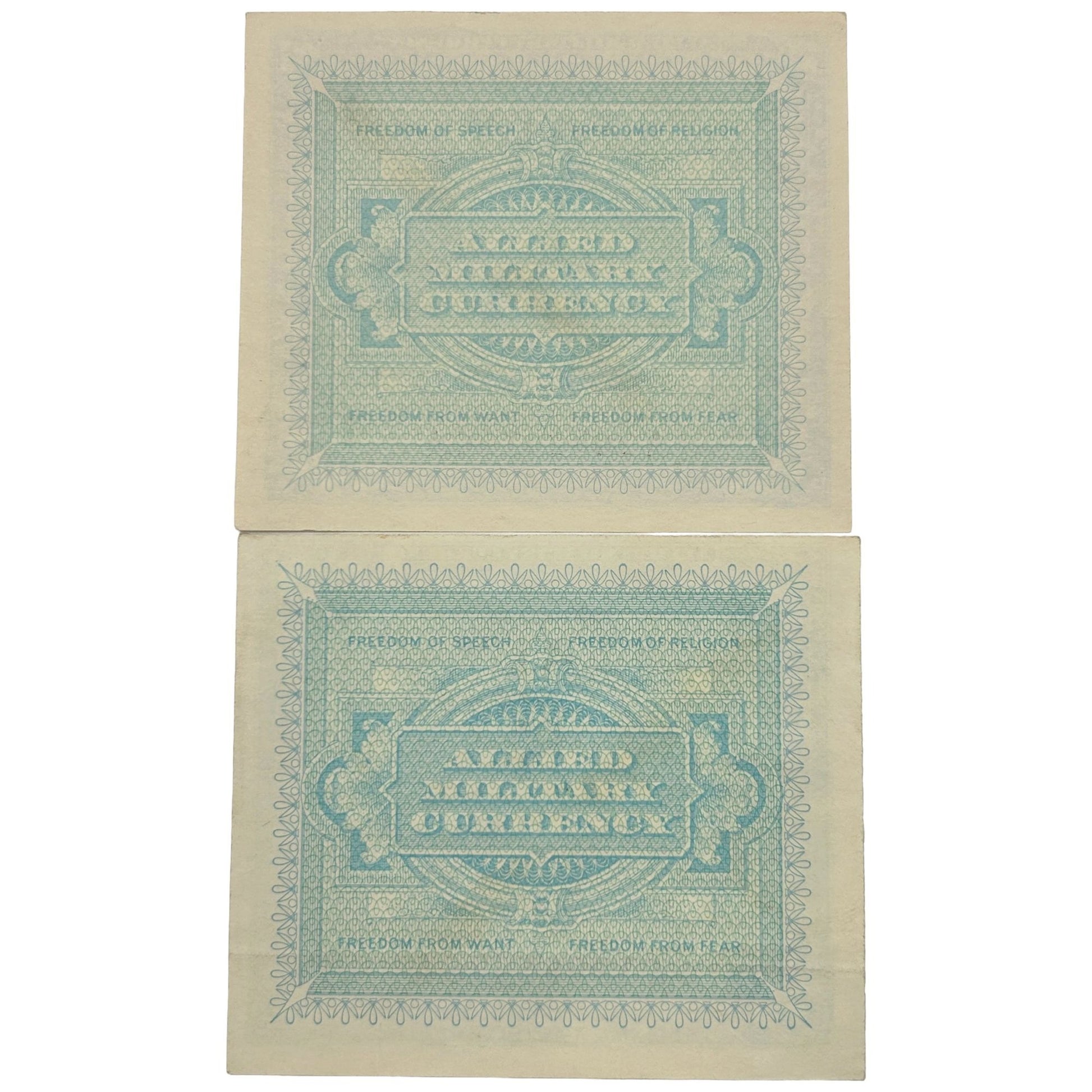 1943 Italian One Lire + 5 Lire Notes - Allied Military Currency WWII Occupation