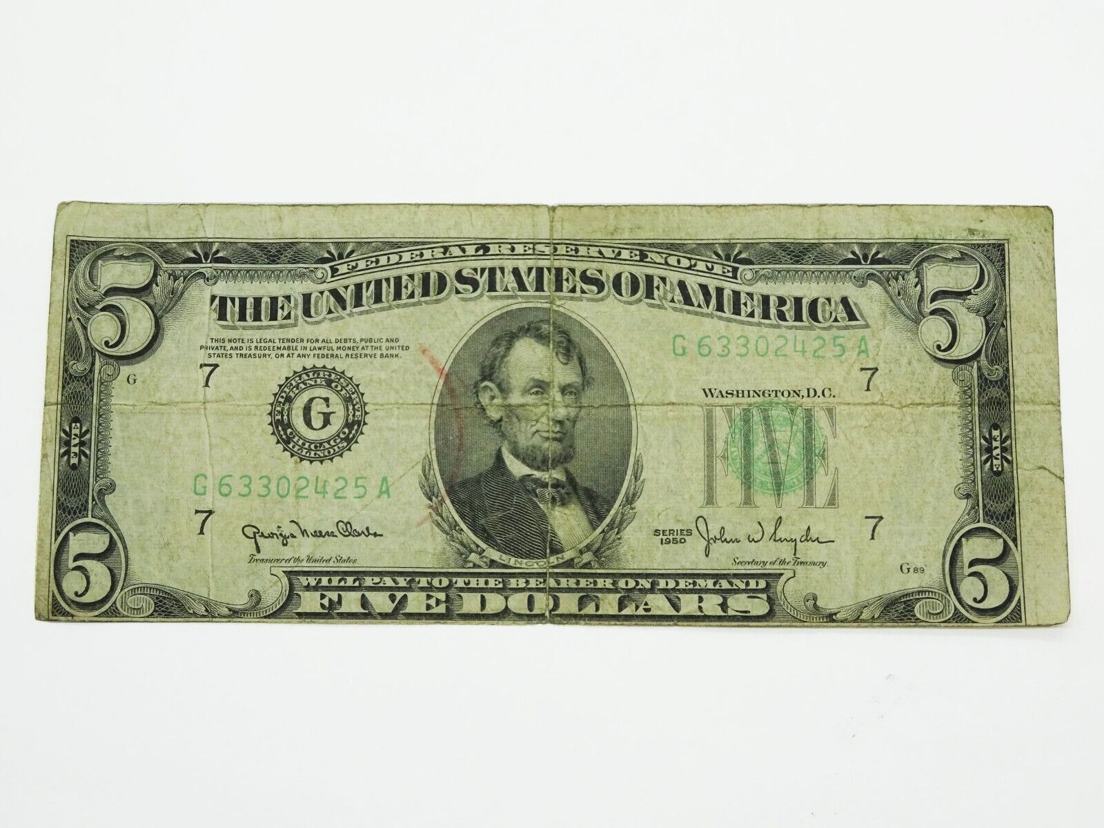 1950 Series Error Cut $5 Five Dollar Federal Reserve Note G63302425A