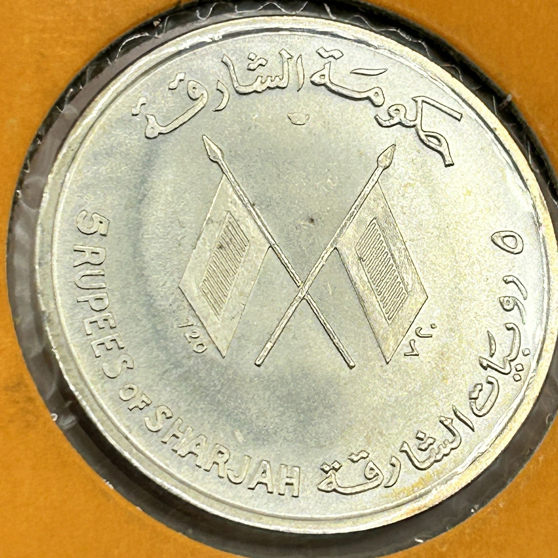1964 Sharjah 5 Five Rupees, JFK, John F. Kennedy Memorial - Silver