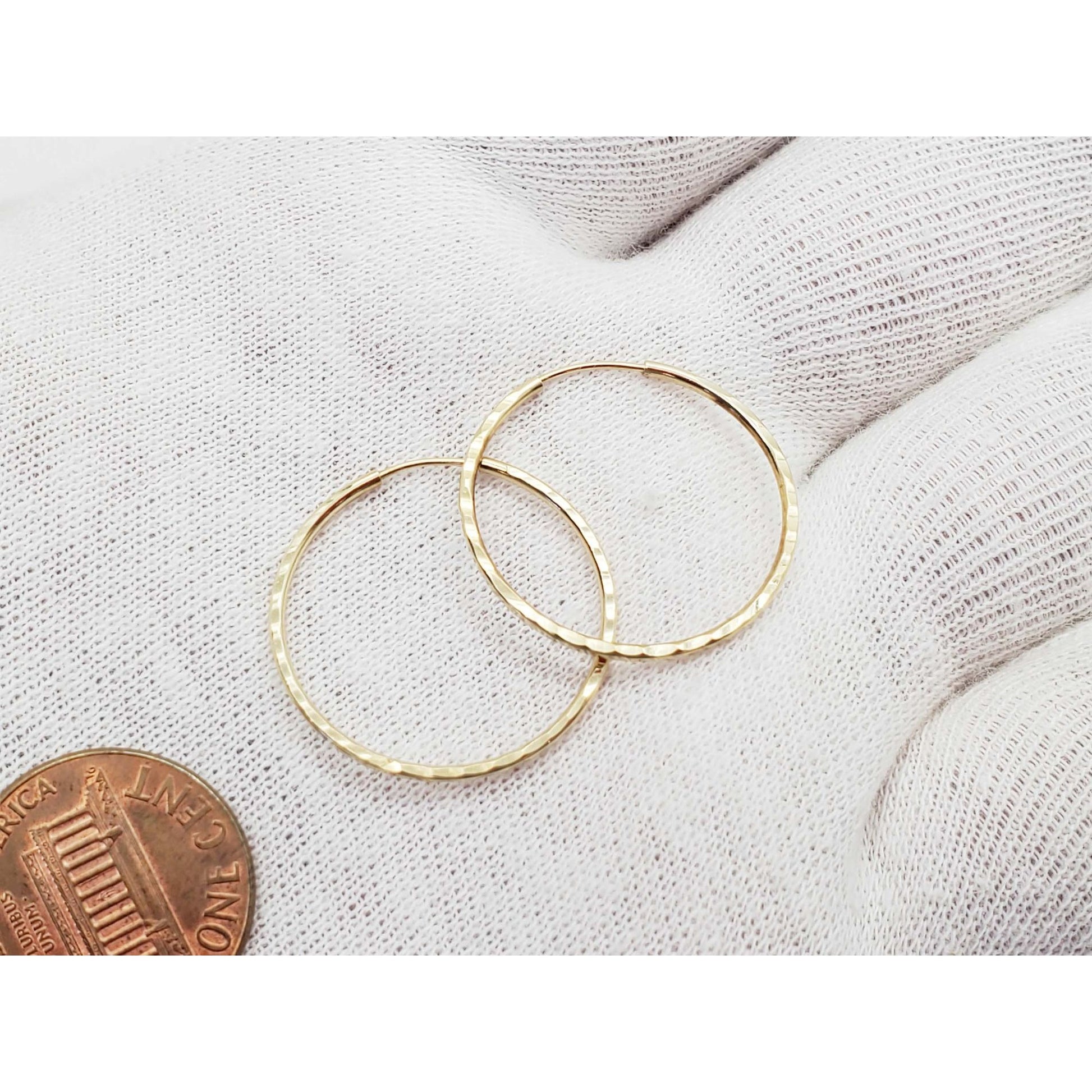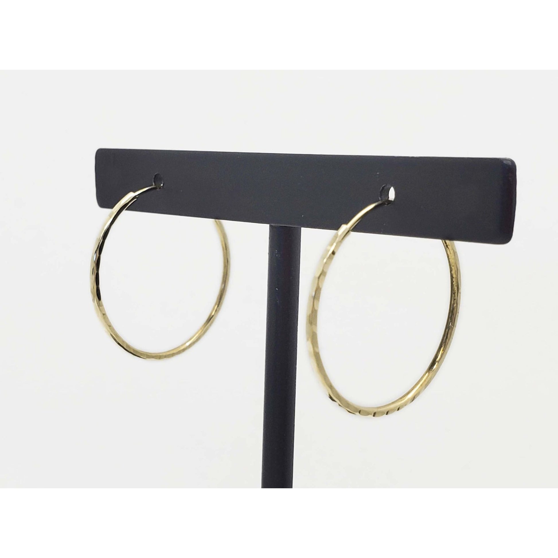 1mm Wide Dia-Cut Hoop Earrings 14k Gold 24mm Diameter