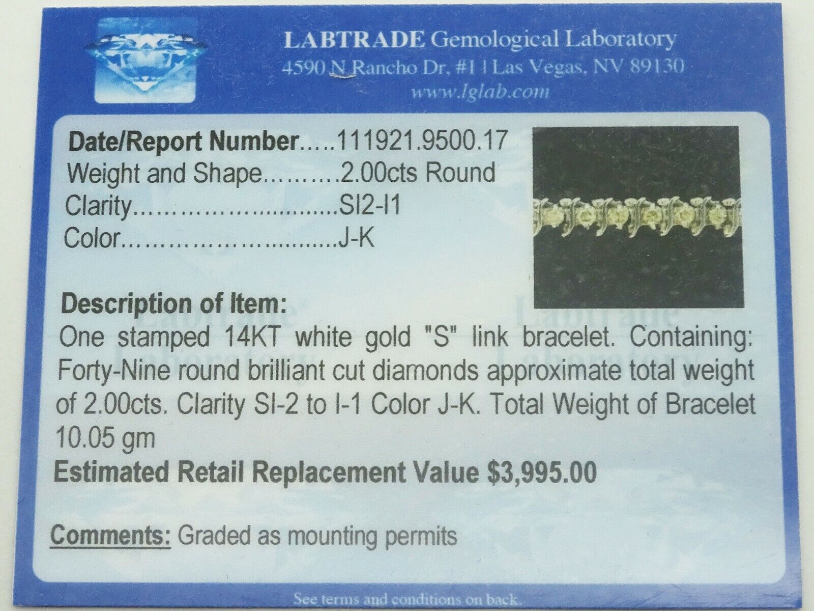2.00ct tw Earth Mined Diamond "S" Link Tennis Bracelet 14k White Gold