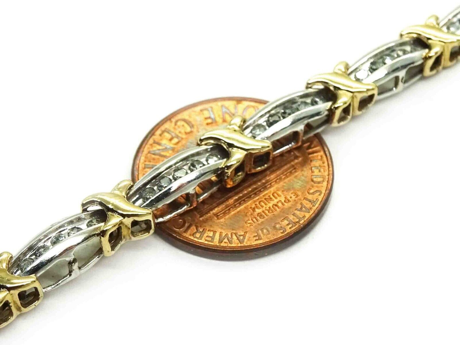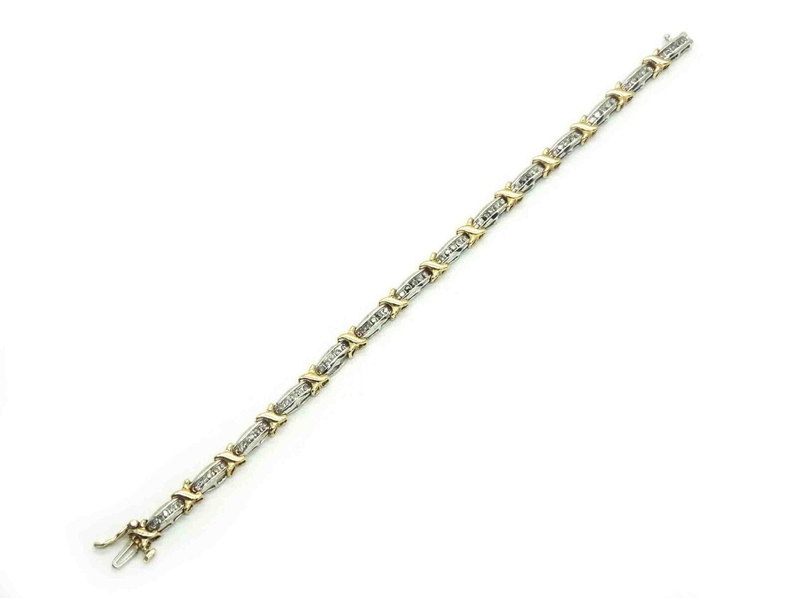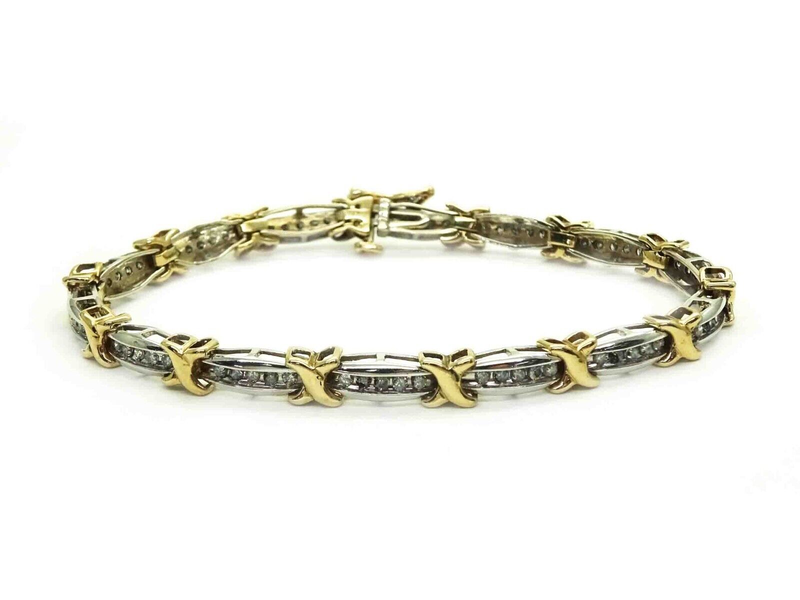 2.10ct tw Natural Diamond X Kiss Station Tennis Bracelet Two-Tone 10k Gold
